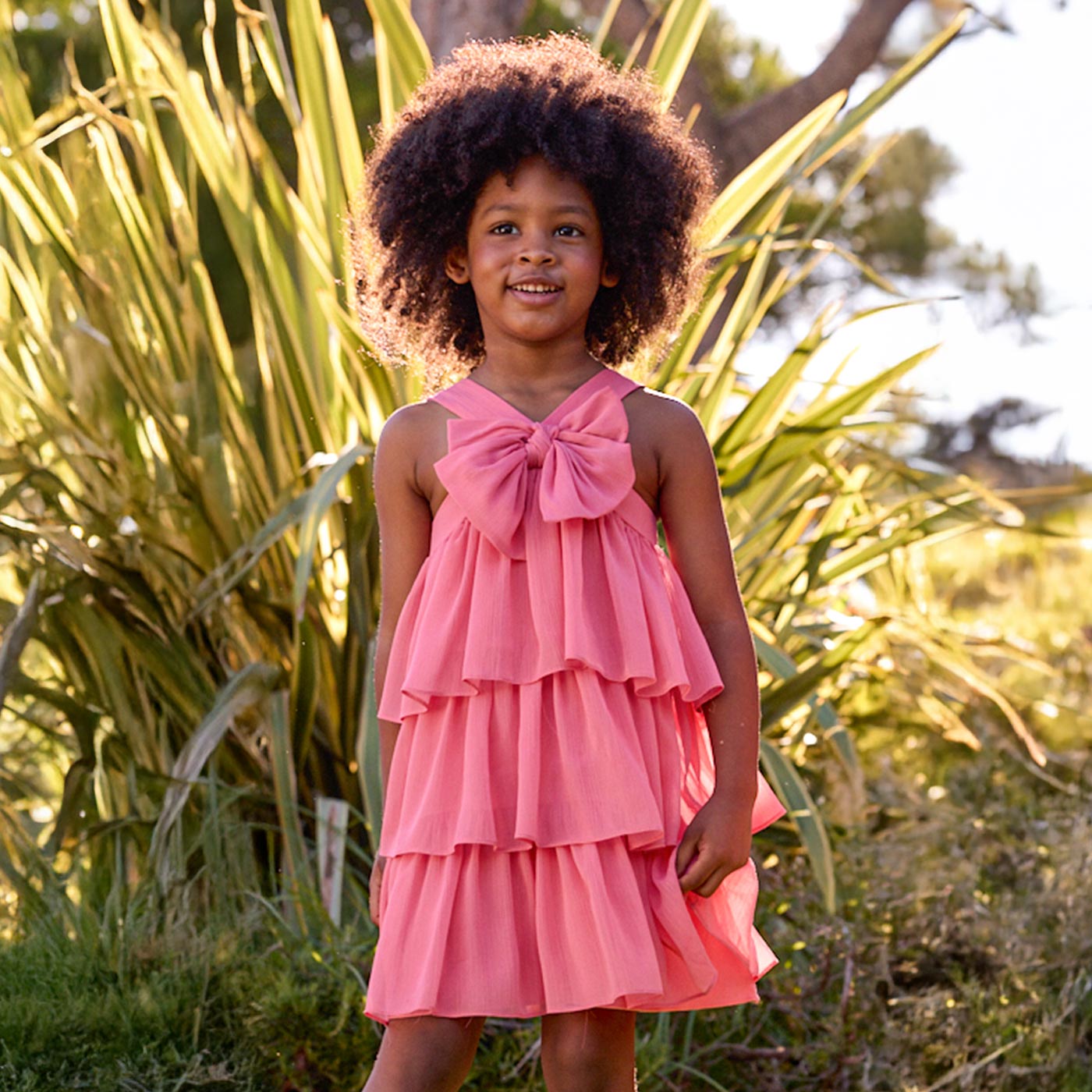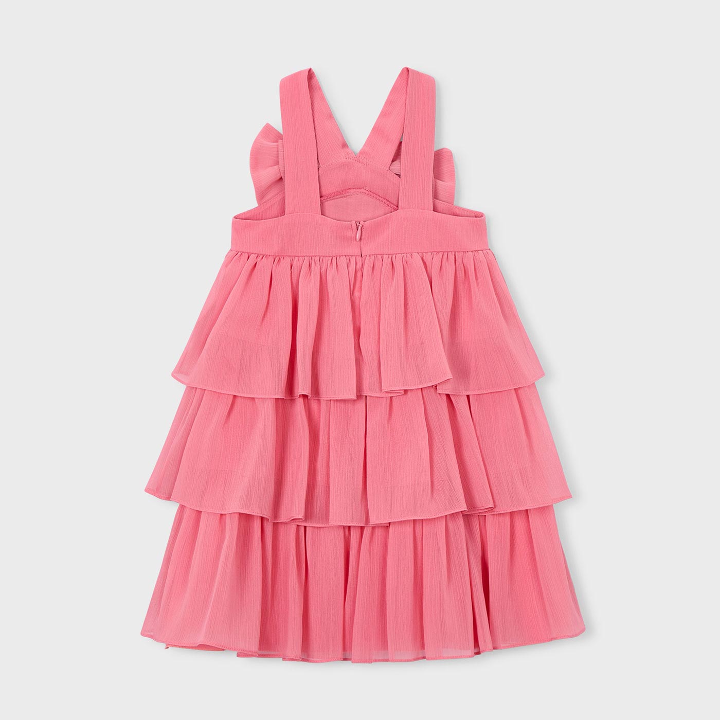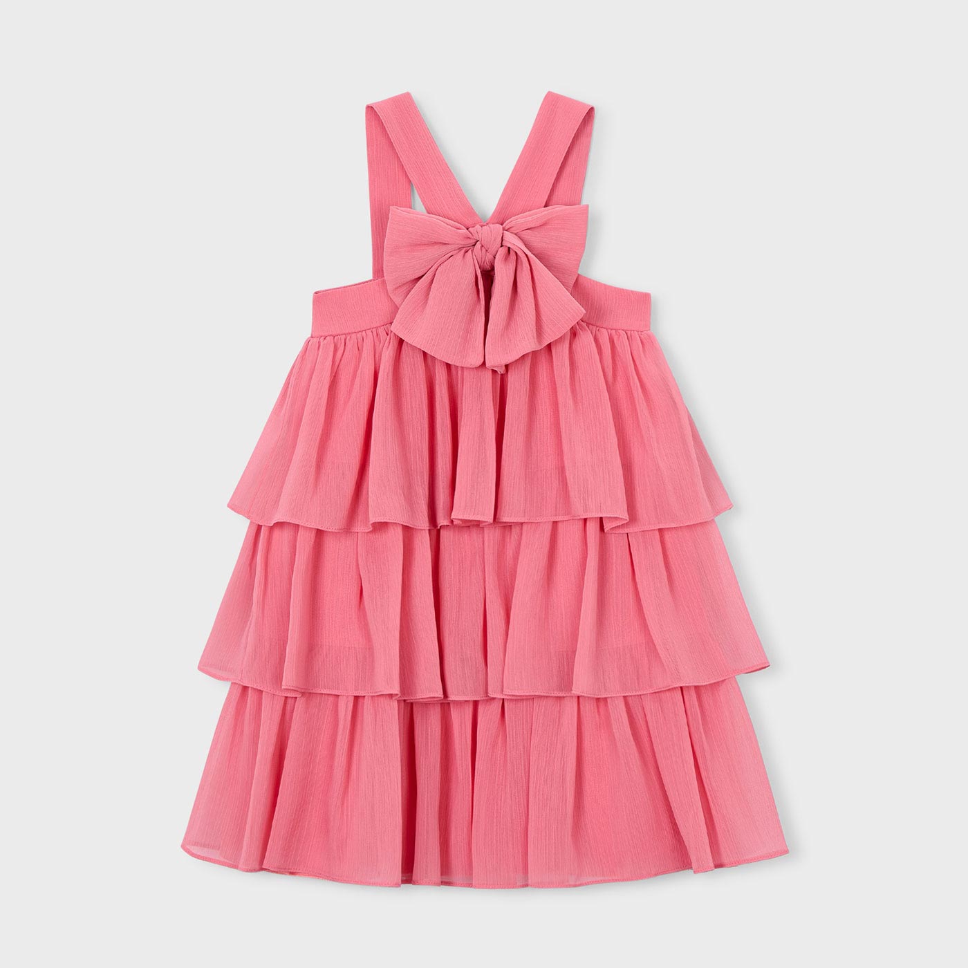 Το παιδικό φόρεμα γκοφρέ Mayoral σε φούξια απόχρωση είναι η ιδανική επιλογή για κορίτσια που αγαπούν τις εντυπωσιακές, κομψές εμφανίσεις. Σχεδιασμένο με προσοχή στη λεπτομέρεια, συνδυάζει τη μοντέρνα αισθητική με την άνεση που χρειάζονται τα παιδιά σε κάθε τους στιγμή.Κατασκευασμένο από ανάλαφρο γκοφρέ ύφασμα, το φόρεμα διαθέτει πολυεπίπεδη φούστα με βολάν, που χαρίζει κίνηση και αέρινη αίσθηση. Το εντυπωσιακό μεγάλο φιόγκο στο μπροστινό μέρος προσθέτει ρομαντικό χαρακτήρα, ενώ οι φαρδιές τιράντες εξασφαλίζουν σωστή εφαρμογή και άνεση. Το φούξια χρώμα το καθιστά ιδανικό για ξεχωριστές περιστάσεις, αλλά και για κομψές καλοκαιρινές εμφανίσεις.