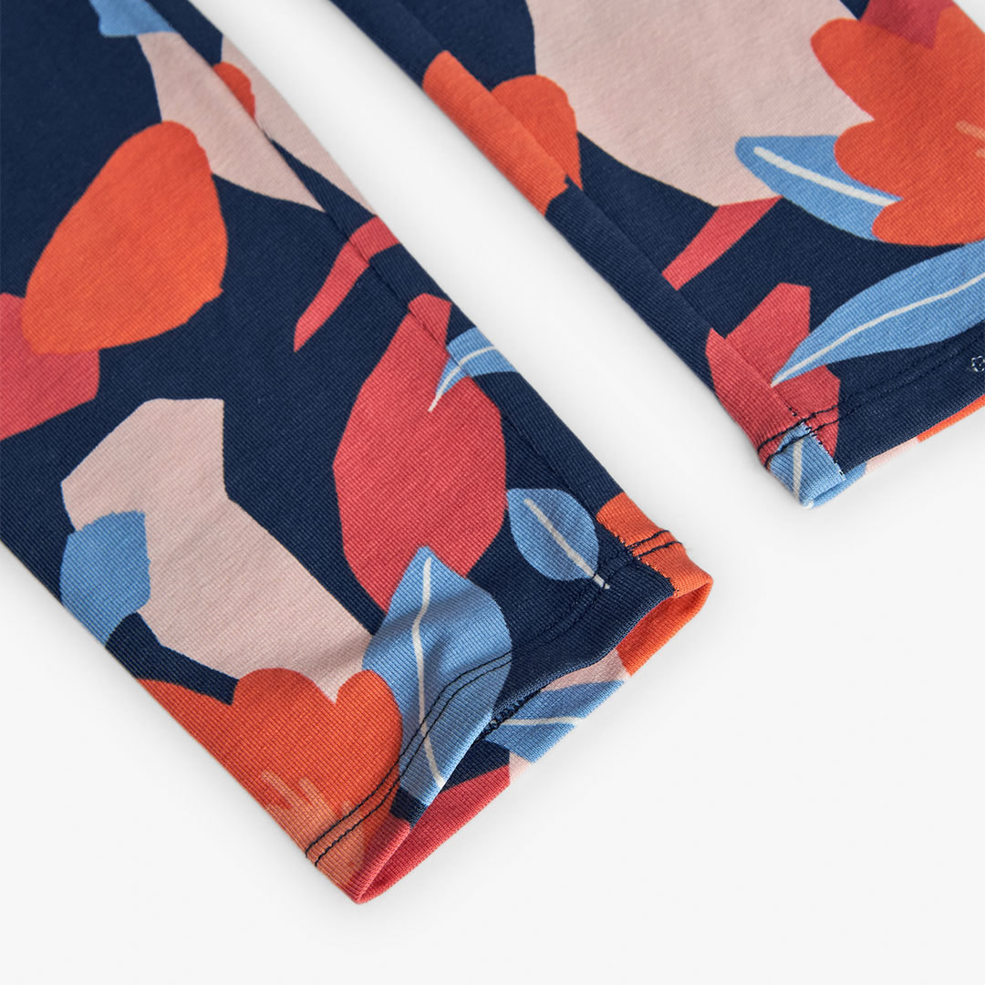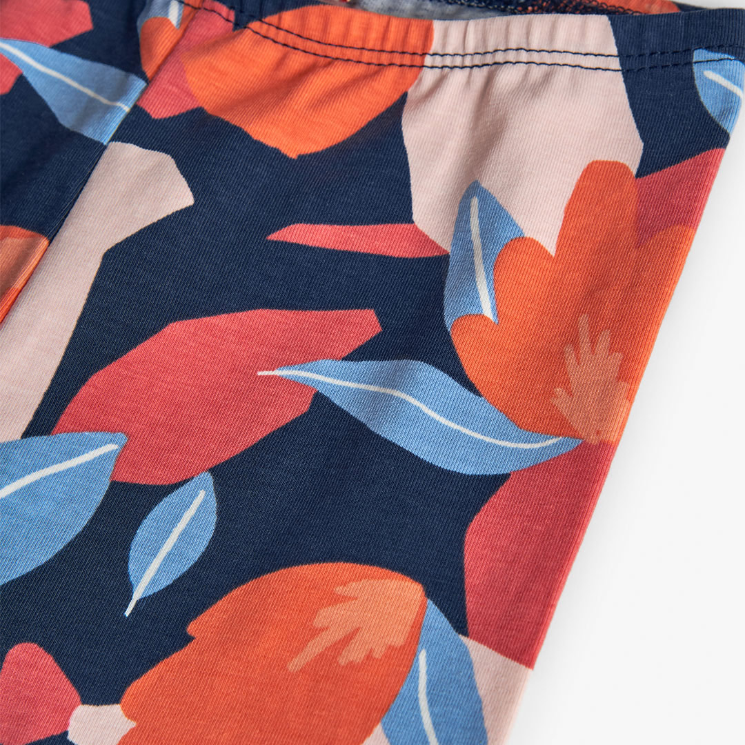 Ο συνδυασμός των έντονων χρωμάτων και των παιχνιδιάρικων λουλουδιών δημιουργεί μια χαρούμενη εμφάνιση που ξεχωρίζει. Το ελαστικό λάστιχο στη μέση εξασφαλίζει τέλεια εφαρμογή χωρίς να πιέζει, ενώ το στενό κόψιμο ακολουθεί τις τάσεις της μόδας για κορίτσια όλων των ηλικιών.