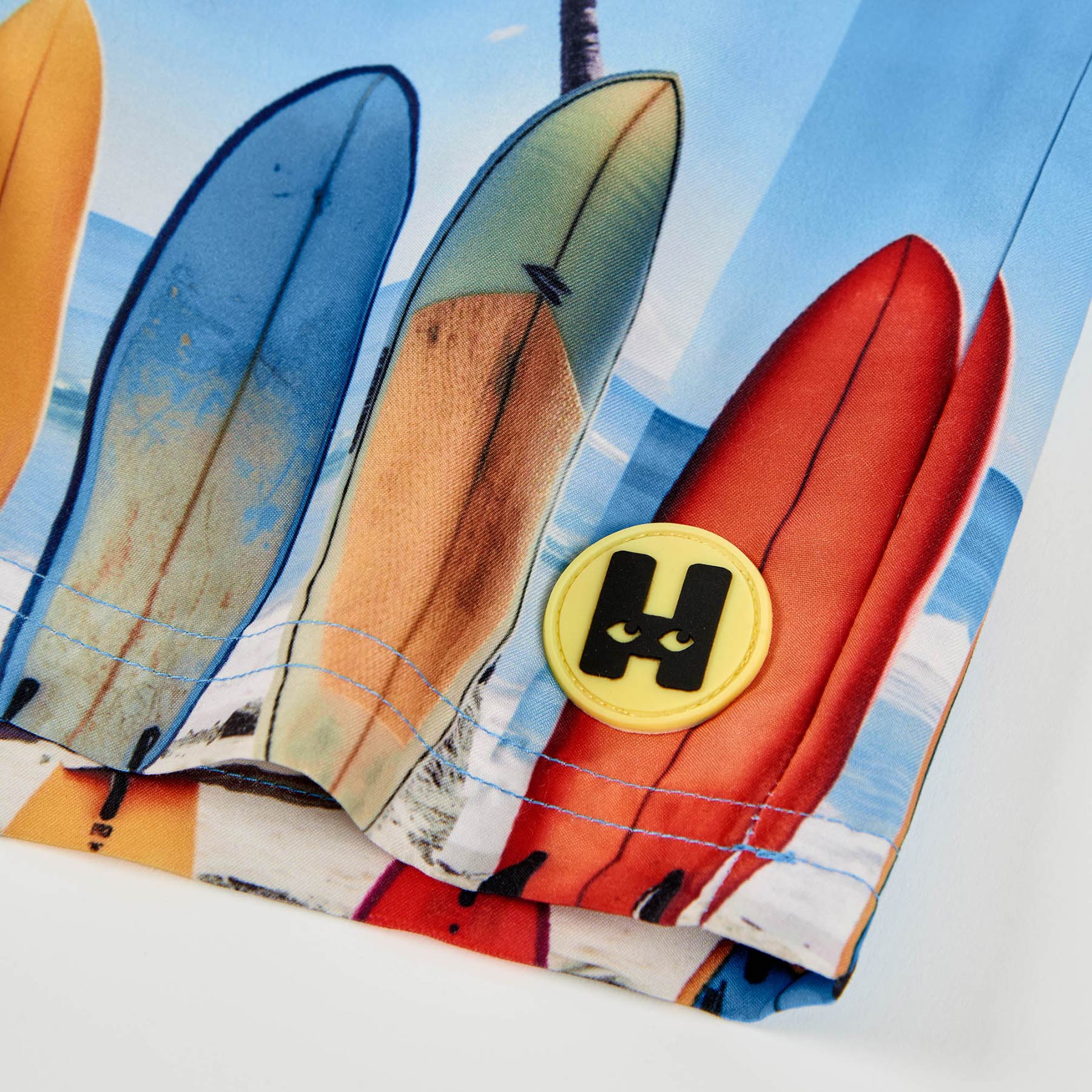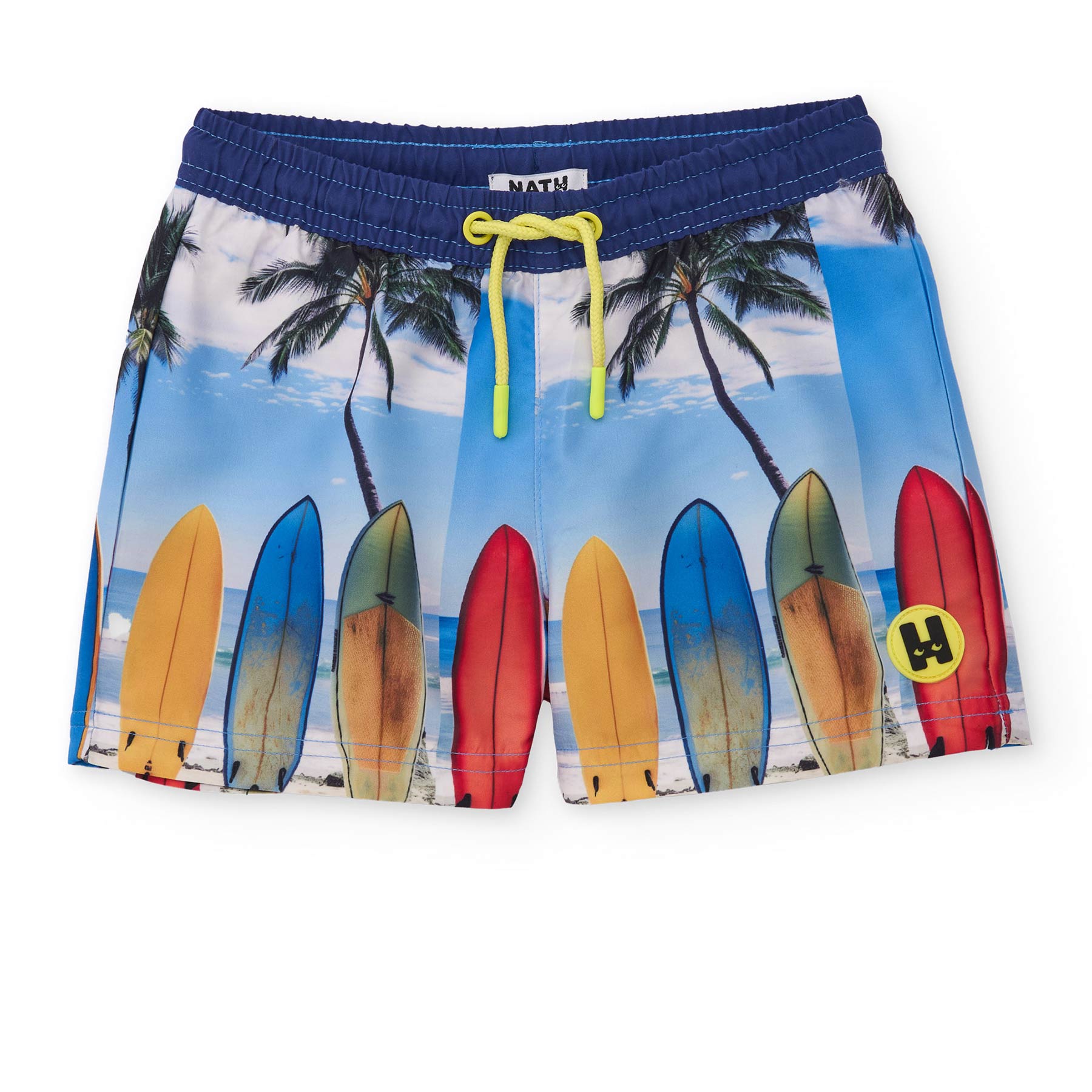 Ανακαλύψτε το απόλυτο καλοκαιρινό κομμάτι για μικρούς surfers! Το παιδικό μαγιό Nathkids σε σιέλ απόχρωση με εντυπωσιακό σχέδιο από σανίδες surf και φόντο τροπικής παραλίας χαρίζει μοναδικό beach style σε κάθε εμφάνιση.