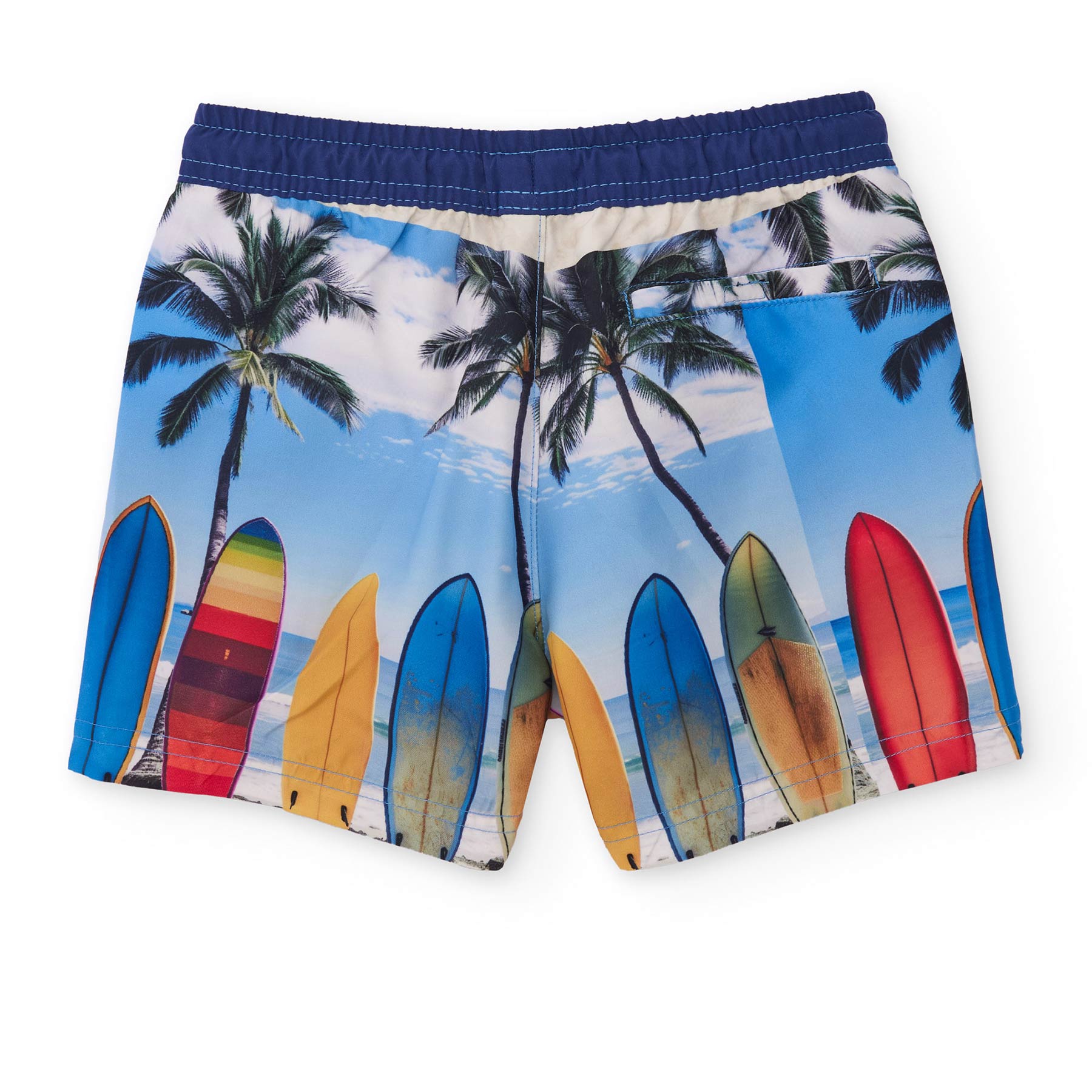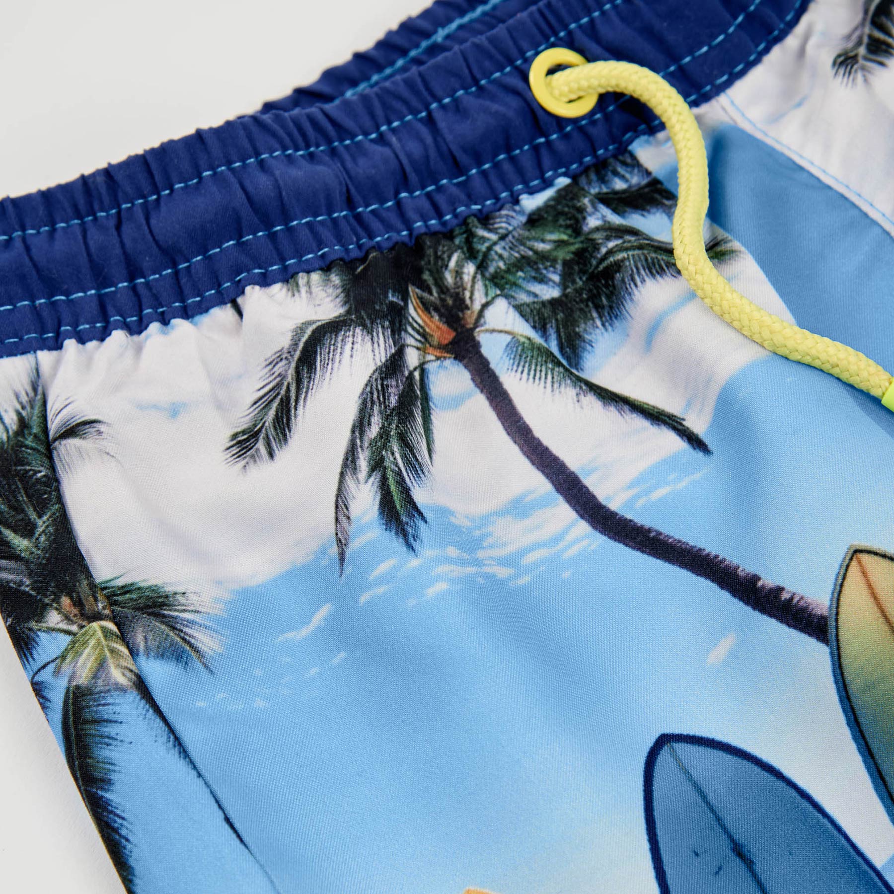 Το ελαφρύ, ανθεκτικό και γρήγορου στεγνώματος ύφασμα εξασφαλίζει άνεση μέσα και έξω από το νερό, ενώ η ελαστική μέση με ρυθμιζόμενο κορδόνι προσφέρει σταθερή εφαρμογή και ευκολία στην κίνηση. Το ζωηρό καλοκαιρινό print με φοίνικες και πολύχρωμες σανίδες δημιουργεί fun διάθεση που λατρεύουν τα παιδιά.
