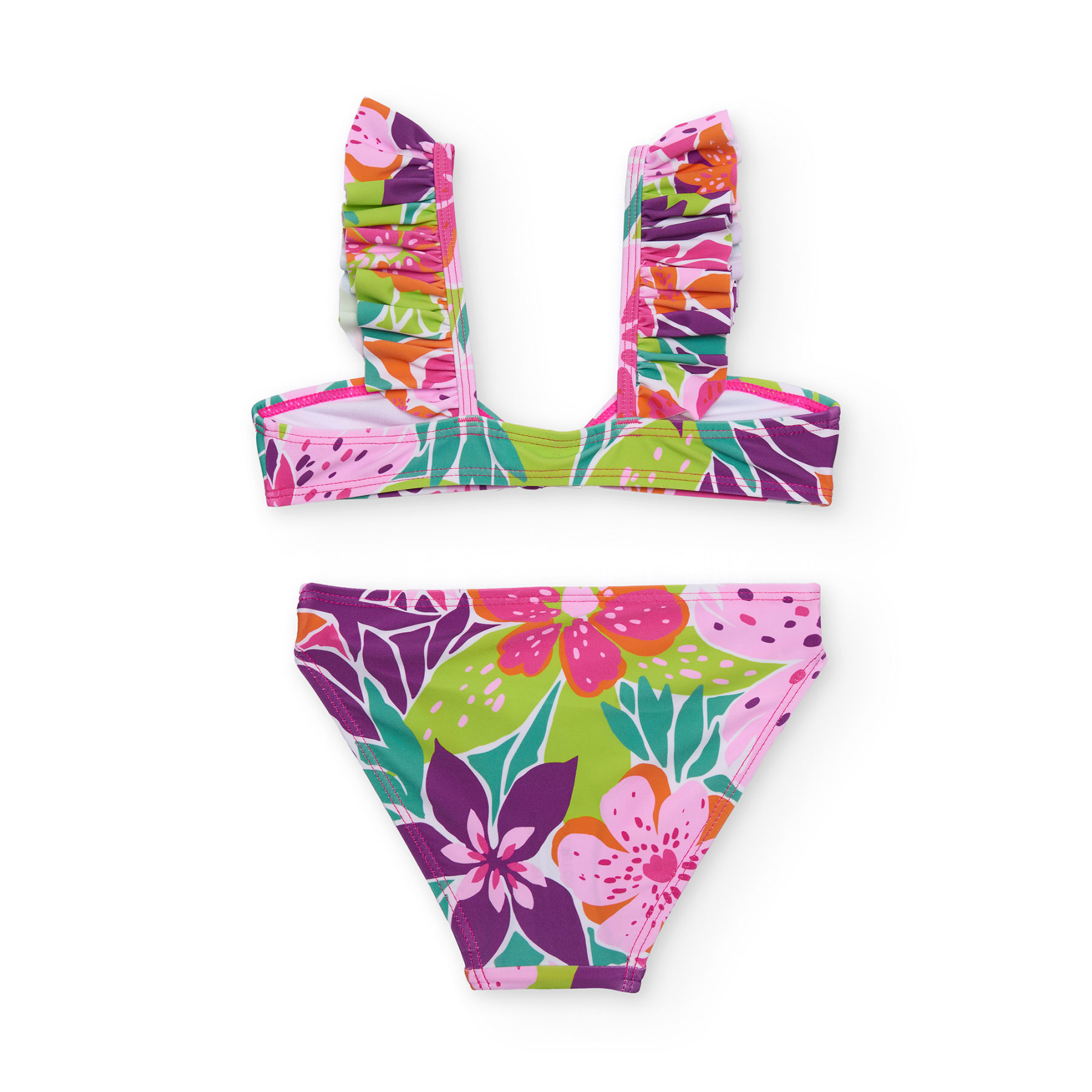 Το παιδικό μαγιό μπικίνι για κορίτσια Nathkids σε ροζ φλοράλ σχέδιο είναι η ιδανική επιλογή για χαρούμενες και στιλάτες καλοκαιρινές εμφανίσεις. Με εντυπωσιακό τροπικό μοτίβο σε αποχρώσεις ροζ, φούξια, πράσινου και πορτοκαλί, προσφέρει μια φρέσκια και ζωηρή αισθητική που ξεχωρίζει στην παραλία και την πισίνα.Το επάνω μέρος διαθέτει φαρδιές τιράντες με διακριτικό βολάν για extra girly χαρακτήρα, ενώ ο διακοσμητικός κόμπος στο μπροστινό μέρος προσθέτει μοντέρνα πινελιά. Το κάτω μέρος έχει άνετη γραμμή και ελαστική εφαρμογή που εξασφαλίζει σταθερότητα και ελευθερία κινήσεων, ιδανική για παιχνίδι μέσα και έξω από το νερό.Κατασκευασμένο από απαλό, ελαστικό και ανθεκτικό ύφασμα που στεγνώνει γρήγορα, το παιδικό μπικίνι Nathkids προσφέρει άνεση, σωστή εφαρμογή και αντοχή στη χρήση. Η εσωτερική επένδυση ενισχύει την κάλυψη και την αίσθηση ασφάλειας.Ιδανικό για διακοπές, θαλάσσιες εξορμήσεις και καλοκαιρινές δραστηριότητες, το παιδικό μαγιό μπικίνι ροζ φλοράλ συνδυάζει ποιότητα, άνεση και fashion design.Ένα κομψό και χαρούμενο παιδικό μπικίνι για κορίτσια που αγαπούν τα λουλουδάτα σχέδια και τις έντονες καλοκαιρινές αποχρώσεις.