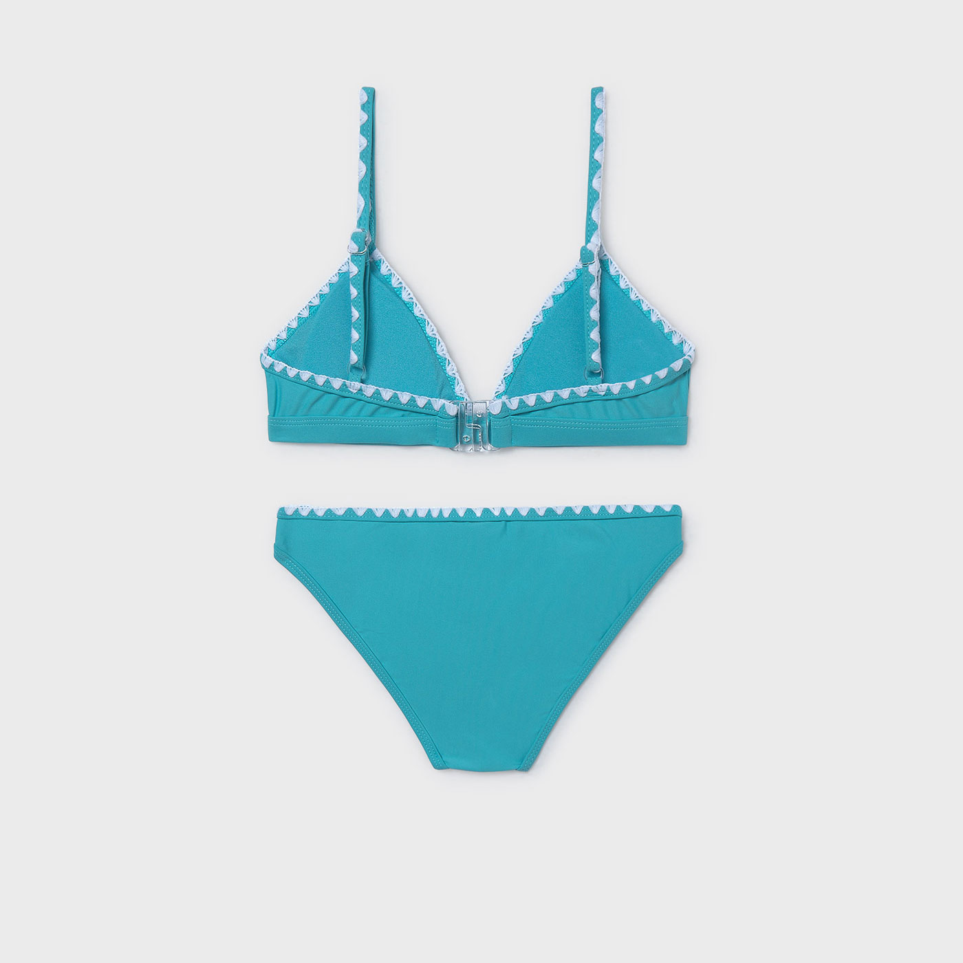 Το παιδικό μπικίνι Mayoral σε έντονη πετρόλ απόχρωση είναι η ιδανική επιλογή για καλοκαιρινές εμφανίσεις γεμάτες στυλ, άνεση και παιχνιδιάρικη διάθεση. Ένα κομψό και χαρούμενο σχέδιο, ιδανικό για τη θάλασσα και την πισίνα, που ξεχωρίζει με τις φλοράλ λεπτομέρειες και το προσεγμένο τελείωμα.Το σετ αποτελείται από μπουστάκι με λεπτές τιράντες και διακριτικό κούμπωμα στην πλάτη για σταθερή εφαρμογή, καθώς και σλιπ με άνετη γραμμή που αγκαλιάζει σωστά το σώμα. Οι κεντημένες λουλουδάτες λεπτομέρειες στο πάνω μέρος προσθέτουν μια girly και καλοκαιρινή πινελιά, ενώ το απαλό και ελαστικό ύφασμα εξασφαλίζει άνεση όλη μέρα.