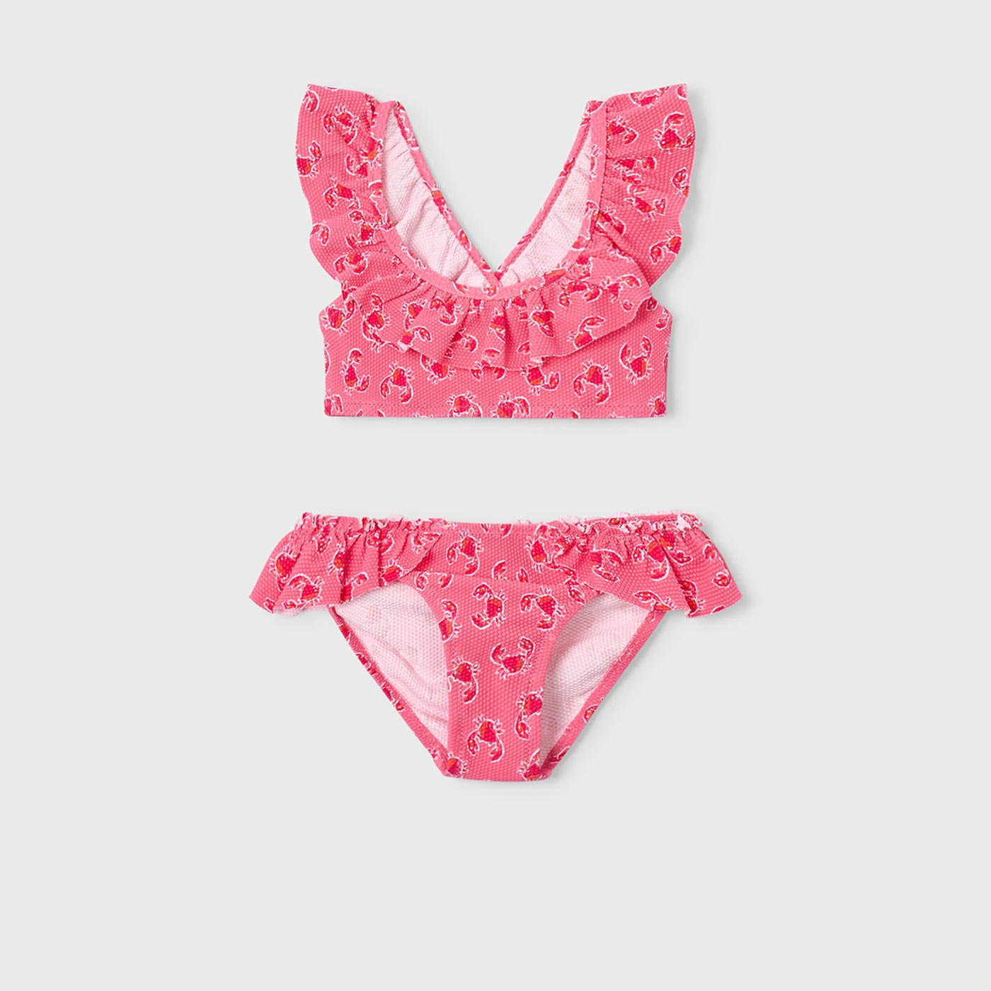Το παιδικό μπικίνι Mayoral για κορίτσια είναι μια χαρούμενη και καλοκαιρινή επιλογή που συνδυάζει άνεση, προστασία και παιχνιδιάρικο στυλ. Σε ζωηρό φούξια χρώμα με print καβουράκια, χαρίζει μοναδική εμφάνιση στις μικρές λάτρεις της θάλασσας.Το σετ περιλαμβάνει τοπ με βολάν και σλιπ με βολάν, προσφέροντας άνετη εφαρμογή και κομψή γραμμή. Το ελαστικό και μαλακό ύφασμα, με εσωτερική φόδρα, εξασφαλίζει άνεση και σταθερότητα στο παιχνίδι, το κολύμπι και τις καλοκαιρινές δραστηριότητες.Ιδανικό για παραλία και πισίνα, αποτελεί μια ασφαλή και στιλάτη επιλογή για τις καλοκαιρινές εξορμήσεις.