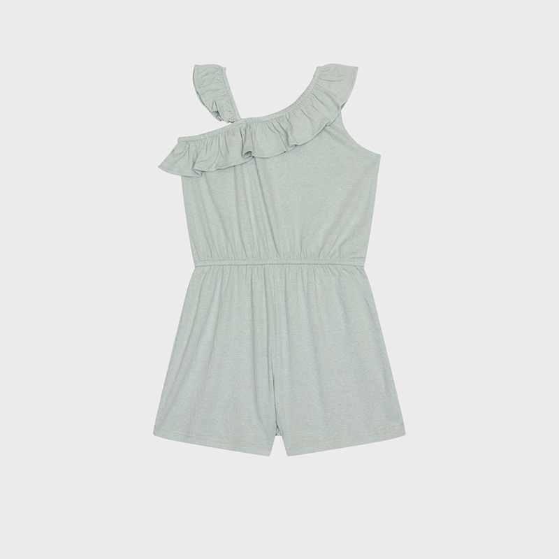 Το παιδικό ολόσωμο σορτς για κορίτσια Ativo σε δροσερή μέντα απόχρωση είναι η ιδανική επιλογή για καλοκαιρινές εμφανίσεις με στυλ και άνεση. Με ρομαντικές λεπτομέρειες όπως τα βολάν στους ώμους και ελαστική μέση, προσφέρει τέλεια εφαρμογή και ελευθερία κινήσεων.