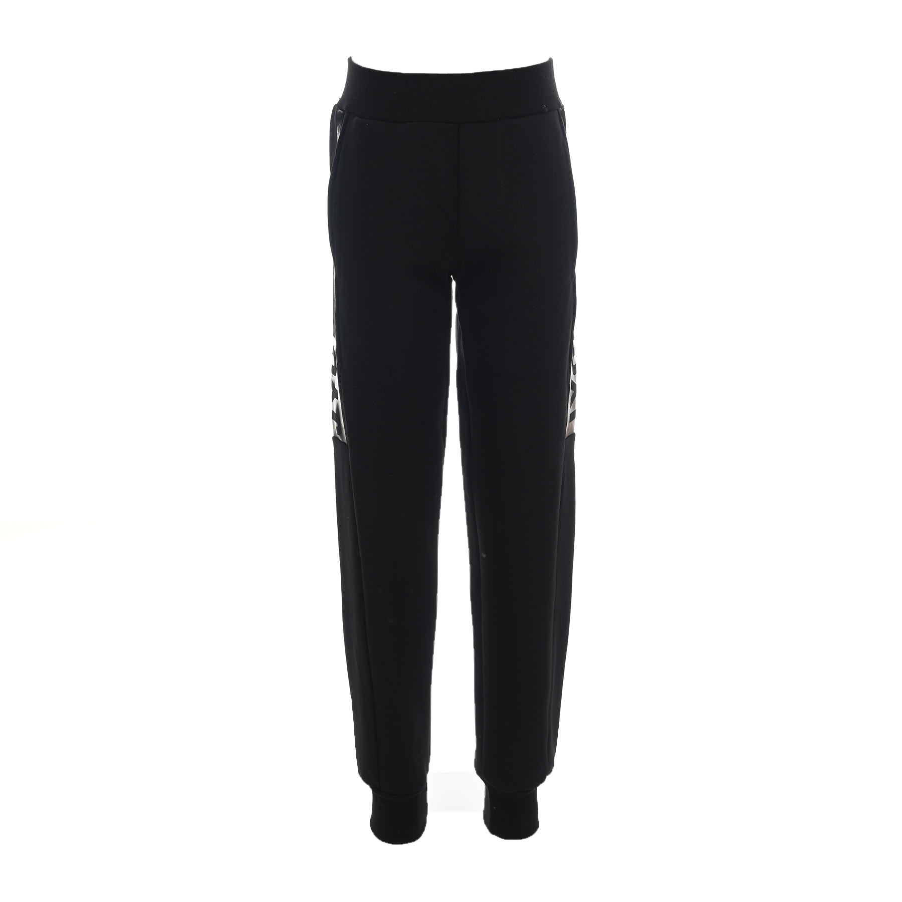 Αυτό το παιδικό παντελόνι φόρμας Joyce σε κλασικό μαύρο χρώμα συνδυάζει άνεση, πρακτικότητα και μοντέρνο look. Κατασκευασμένο από απαλό, ελαστικό βαμβακερό ύφασμα, προσφέρει ευχάριστη αίσθηση και ελευθερία κινήσεων για κάθε στιγμή της ημέρας. Οι πλαϊνές λεπτομέρειες με σατινέ λάμψη και το διακριτικό λογότυπο Joyce προσθέτουν μια fashionable πινελιά που το κάνει να ξεχωρίζει.