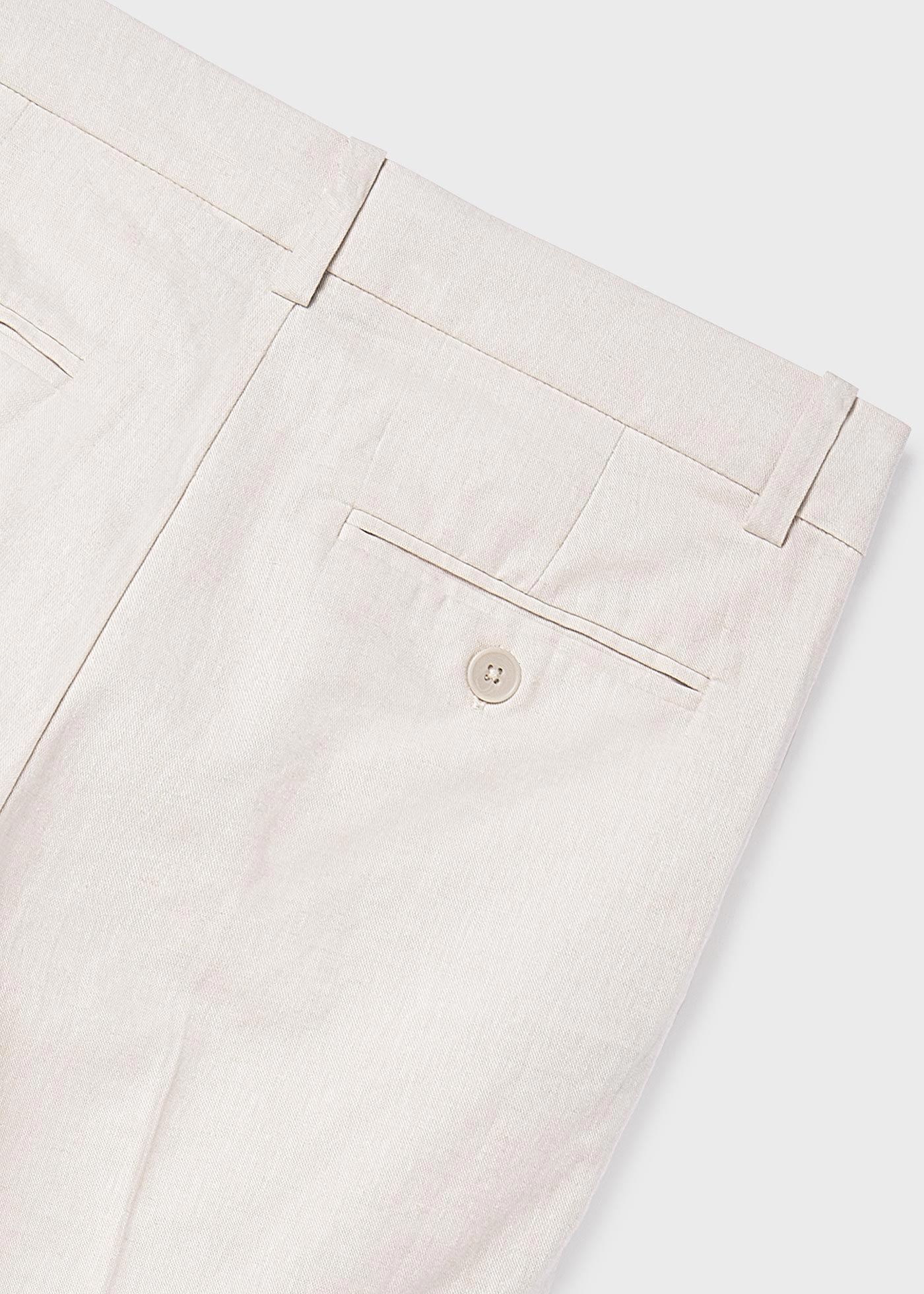 Το παιδικό λινό παντελόνι Mayoral για αγόρια σε διαχρονική μπεζ απόχρωση αποτελεί ιδανική επιλογή για κομψές και δροσερές καλοκαιρινές εμφανίσεις. Σχεδιασμένο με έμφαση στη λεπτομέρεια και την άνεση, προσφέρει ένα άψογο αποτέλεσμα τόσο σε επίσημες όσο και σε smart casual περιστάσεις.Κατασκευασμένο από ποιοτικό μείγμα λινού, το παντελόνι εξασφαλίζει εξαιρετική διαπνοή και ανάλαφρη αίσθηση, ιδανική για υψηλές θερμοκρασίες. Η κομψή, ίσια γραμμή με διακριτικές πιέτες χαρίζει μοντέρνα εφαρμογή, ενώ το κούμπωμα με κουμπί και φερμουάρ προσφέρει σταθερότητα και άνεση στην κίνηση. Διαθέτει πλαϊνές τσέπες και πίσω τσέπες με κουμπί, ενισχύοντας τη λειτουργικότητα και το στυλ.