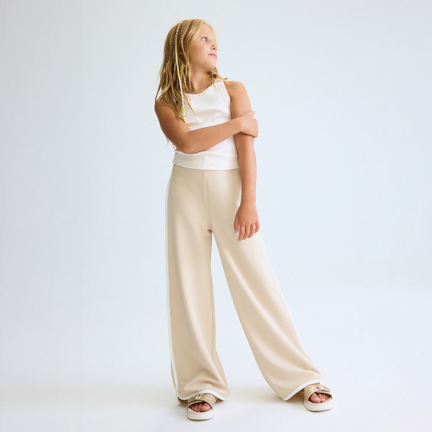 Το παιδικό μακρύ παντελόνι Mayoral για κορίτσια σε κομψή μπεζ απόχρωση αποτελεί μια μοντέρνα και άνετη επιλογή για καθημερινές αλλά και πιο προσεγμένες εμφανίσεις. Συνδυάζει minimal αισθητική, άνετη εφαρμογή και ποιοτική κατασκευή, όπως μόνο η Mayoral γνωρίζει.Κατασκευασμένο από μαλακό και ελαστικό μακό ύφασμα, προσφέρει ευχάριστη αίσθηση και ελευθερία κινήσεων καθ όλη τη διάρκεια της ημέρας. Η ίσια φαρδιά γραμμή (wide leg) χαρίζει μοντέρνο look, ενώ οι λευκές διακριτικές λεπτομέρειες στο τελείωμα και στο πλάι προσθέτουν στυλ και κομψότητα. Η μέση εφαρμόζει άνετα, χωρίς να πιέζει, κάνοντας το παντελόνι ιδανικό για πολύωρη χρήση.Ταιριάζει εξαιρετικά με μπλουζάκια, τοπ ή φούτερ και μπορεί να φορεθεί από το σχολείο έως τη βόλτα και τις διακοπές.