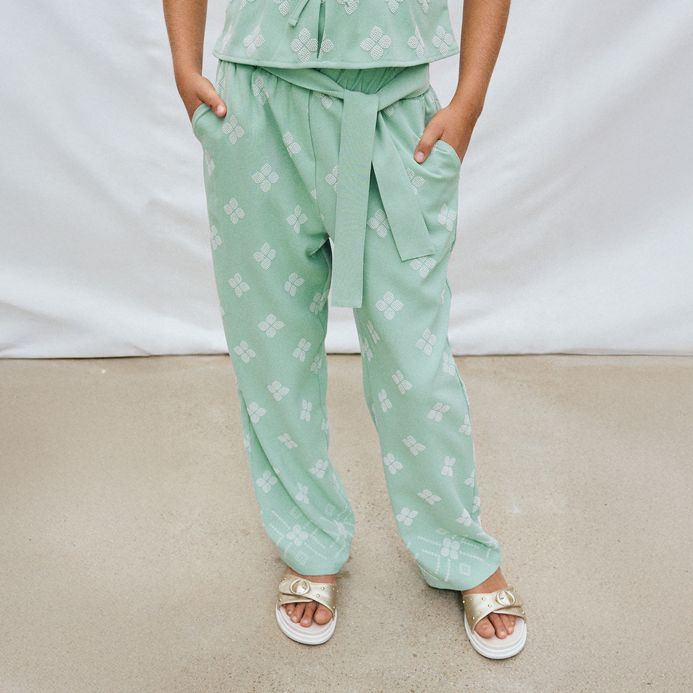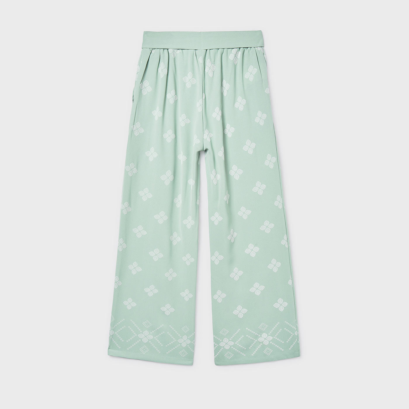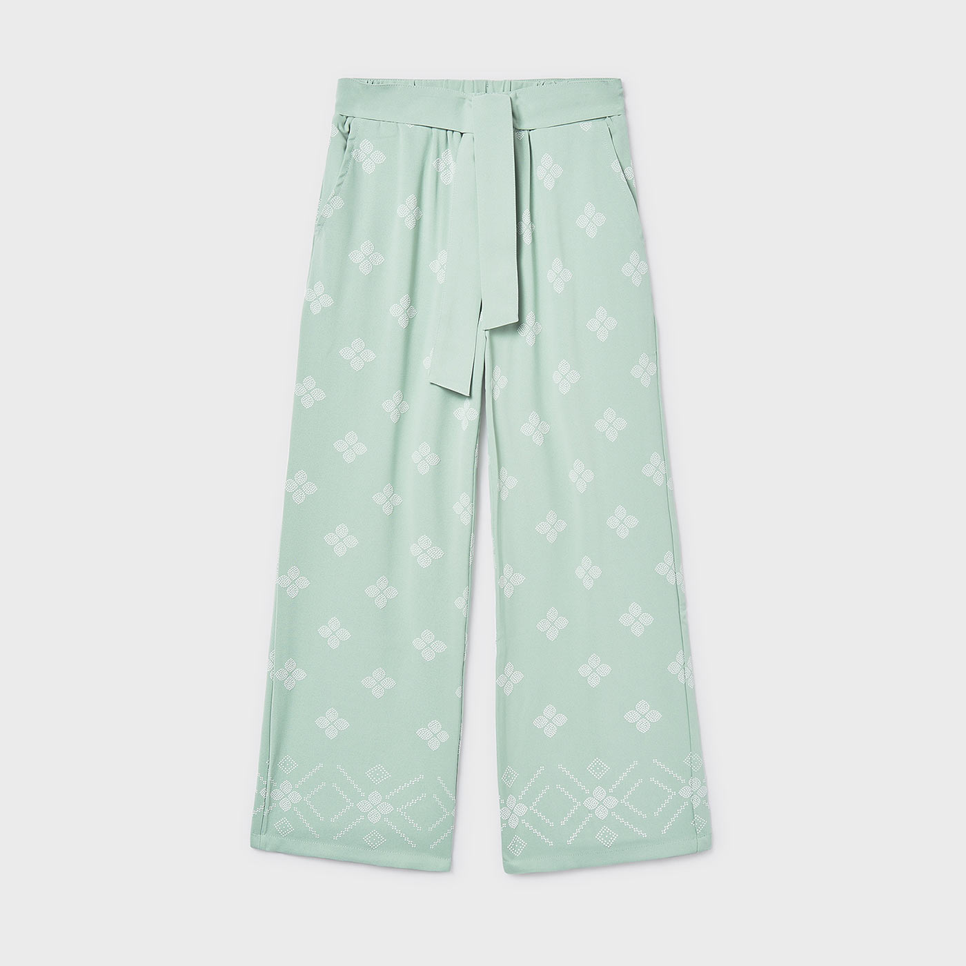 Ανανεώστε την καλοκαιρινή γκαρνταρόμπα με το παιδικό παντελόνι Mayoral σε χρώμα μέντα, μια κομψή και άνετη επιλογή για κορίτσια που αγαπούν το στυλ χωρίς περιορισμούς. Το διακριτικό σταμπωτό μοτίβο προσθέτει μια ρομαντική πινελιά, ενώ η δροσερή απόχρωση μέντας χαρίζει φρεσκάδα και ευκολία στους συνδυασμούς.Το παντελόνι διαθέτει άνετη, ίσια γραμμή και ελαστική μέση με υφασμάτινη ζώνη που δένει μπροστά, εξασφαλίζοντας τέλεια εφαρμογή και άνεση όλη μέρα. Το ελαφρύ και απαλό ύφασμα το καθιστά ιδανικό για ανοιξιάτικες και καλοκαιρινές εμφανίσεις, είτε για βόλτες είτε για πιο ιδιαίτερες περιστάσεις.Συνδυάζεται υπέροχα με μπλούζες, τοπ ή το αντίστοιχο σετ Mayoral, δημιουργώντας ένα ολοκληρωμένο και προσεγμένο σύνολο.