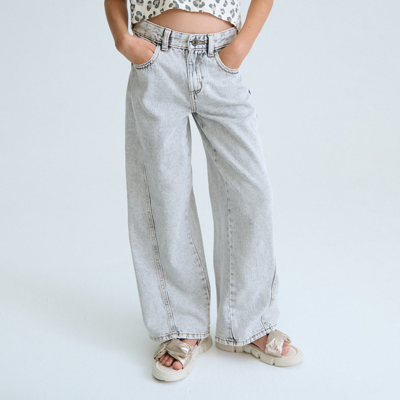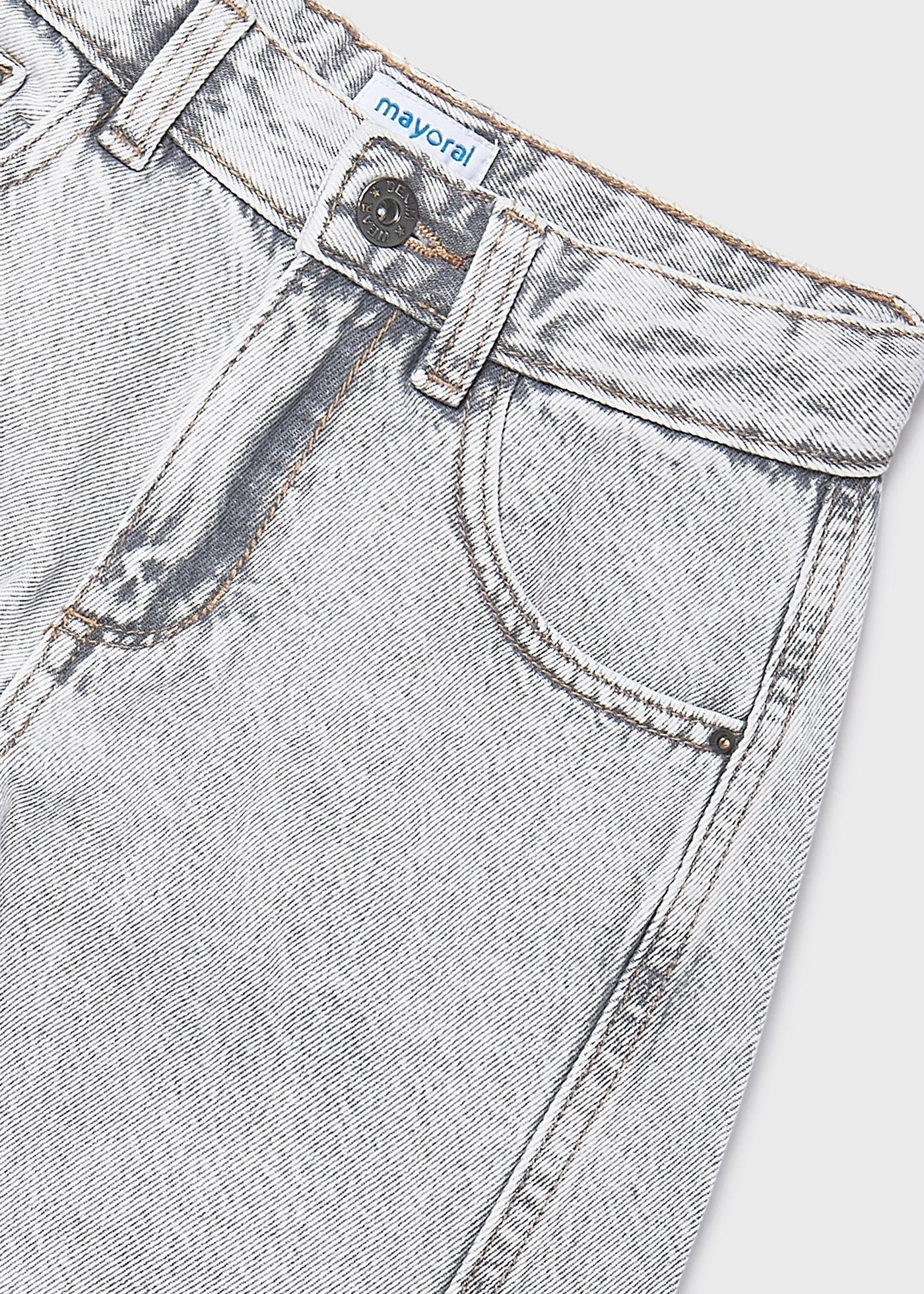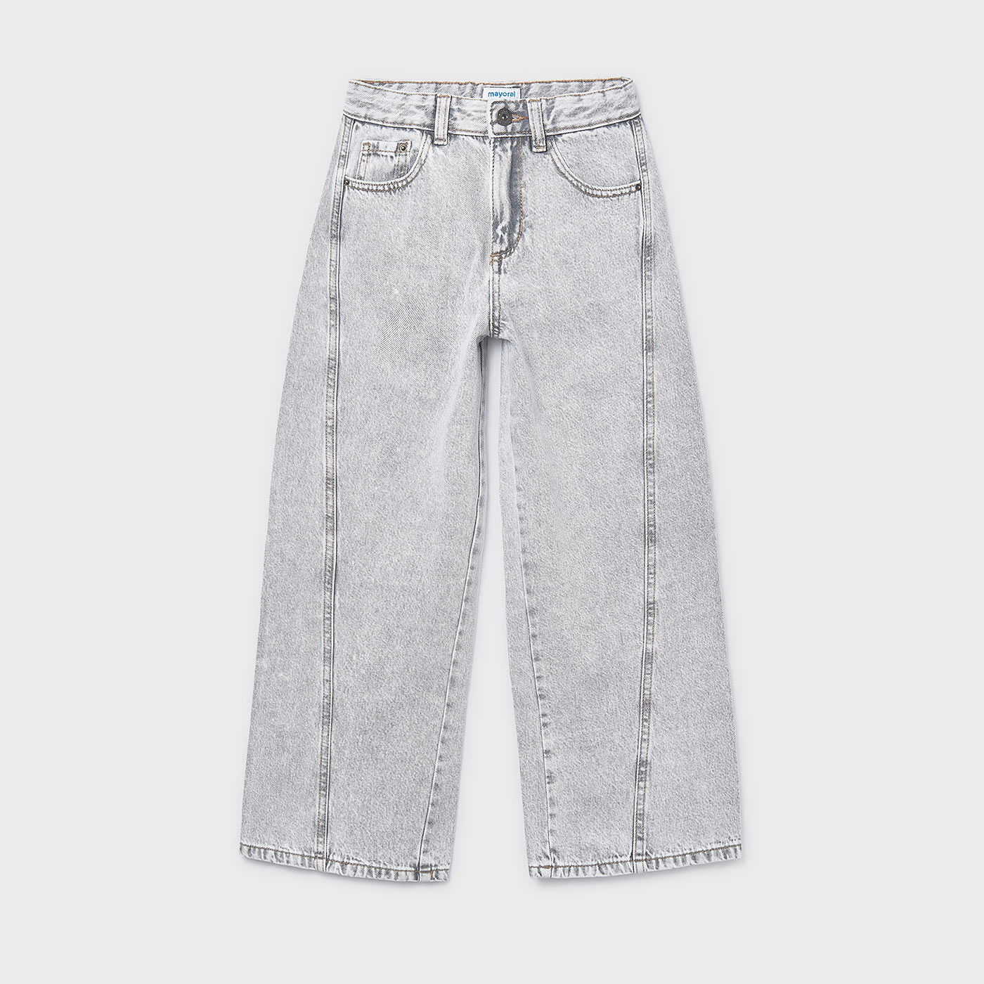 Το παιδικό τζιν παντελόνι wide leg Mayoral σε μοντέρνα γκρι απόχρωση είναι η ιδανική επιλογή για κορίτσια που αγαπούν το σύγχρονο street style με άνεση. Η φαρδιά γραμμή (wide leg) προσφέρει ελευθερία κινήσεων και χαλαρή εφαρμογή, ακολουθώντας τις τελευταίες τάσεις της παιδικής μόδας.Κατασκευασμένο από ποιοτικό βαμβακερό denim, είναι ανθεκτικό και ευχάριστο στην καθημερινή χρήση. Διαθέτει κλασικό κούμπωμα με φερμουάρ, θηλιές για ζώνη και πρακτικές τσέπες μπροστά και πίσω, συνδυάζοντας λειτουργικότητα και στυλ. Το γκρι washed χρώμα του το καθιστά εξαιρετικά ευκολοσυνδύαστο με t-shirt, crop tops ή φούτερ για όλες τις ώρες.Ιδανικό για σχολείο, βόλτες ή casual εμφανίσεις, αυτό το τζιν Mayoral αποτελεί βασικό κομμάτι για μια μοντέρνα παιδική γκαρνταρόμπα.