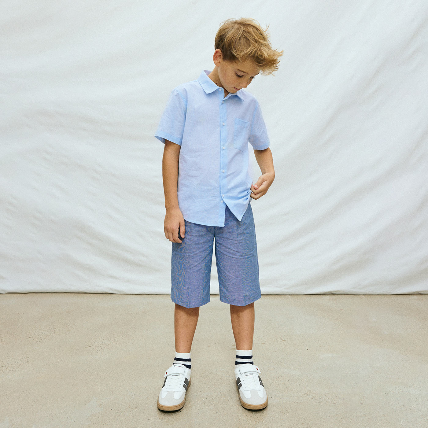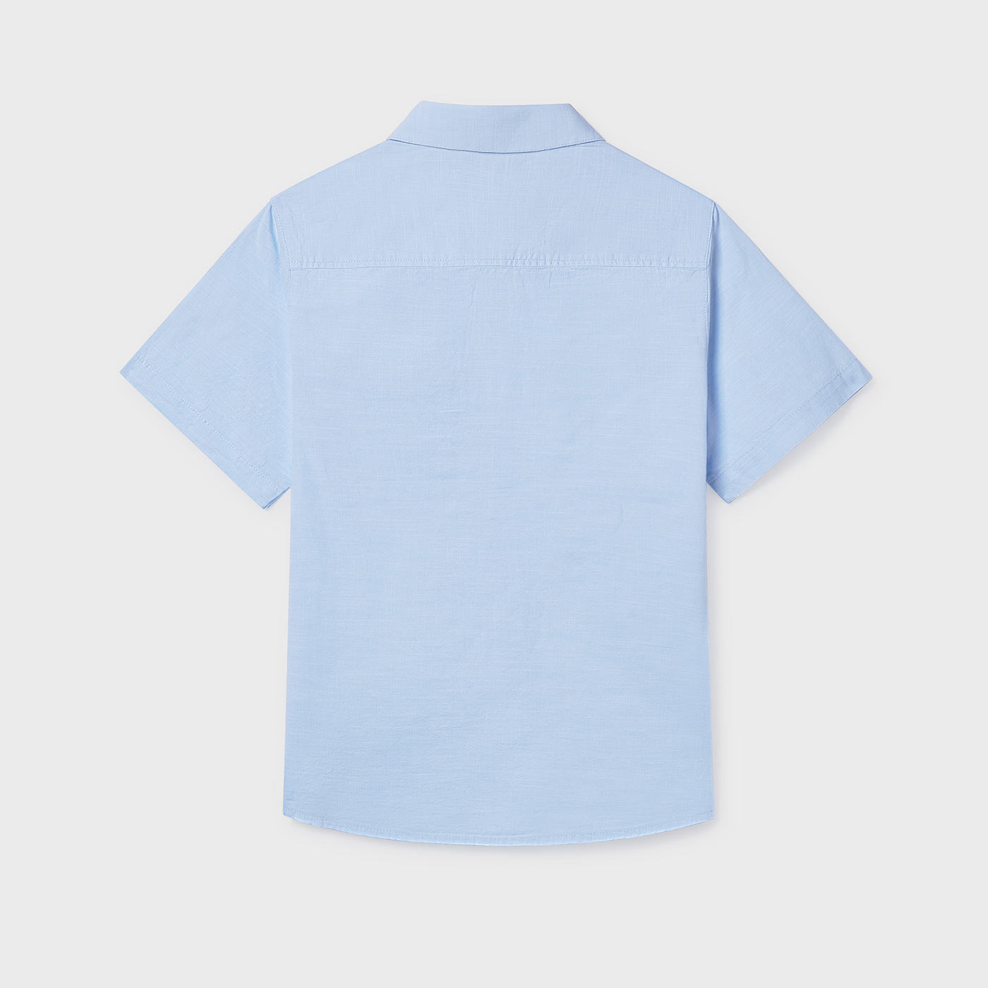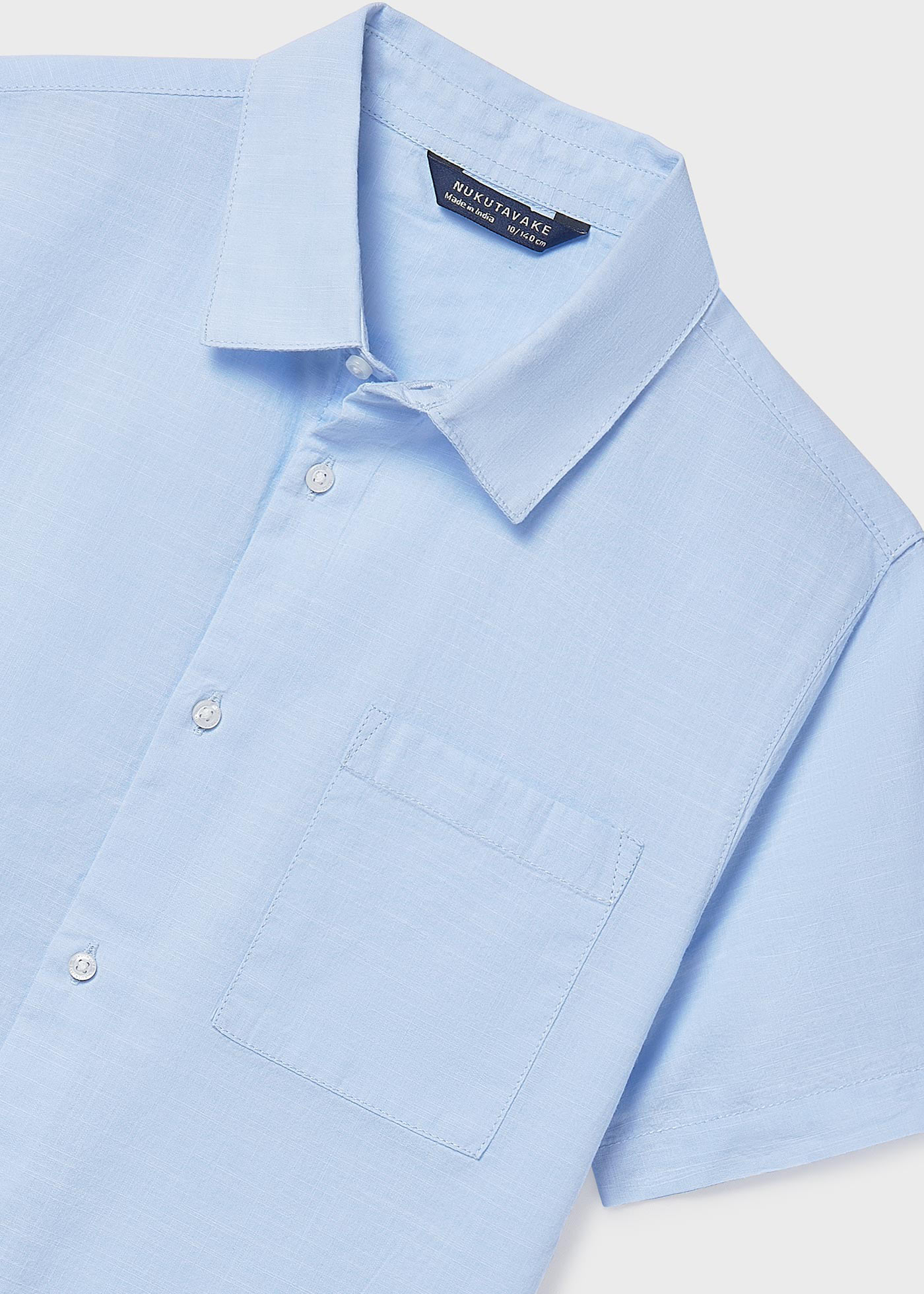 Το παιδικό πουκάμισο για αγόρια Mayoral (Nukutavake) σε γαλάζια απόχρωση αποτελεί μια κομψή και διαχρονική επιλογή για καλοκαιρινές εμφανίσεις. Ο απλός και καθαρός σχεδιασμός του το καθιστά ιδανικό τόσο για καθημερινή χρήση όσο και για πιο επίσημες περιστάσεις.Είναι κατασκευασμένο από ελαφρύ και δροσερό βαμβακερό ύφασμα, που προσφέρει άνεση και σωστή διαπνοή τις ζεστές ημέρες. Διαθέτει κοντό μανίκι, κλασικό γιακά, κούμπωμα με κουμπιά και διακριτική τσέπη στο στήθος, προσθέτοντας πρακτικότητα και στυλ.Συνδυάζεται εύκολα με βερμούδες, chinos ή τζιν παντελόνια και αποτελεί ιδανική επιλογή για σχολικές γιορτές, οικογενειακές εκδηλώσεις, βόλτες και καλοκαιρινές εξόδους.