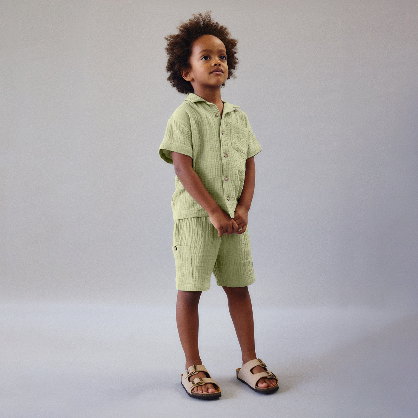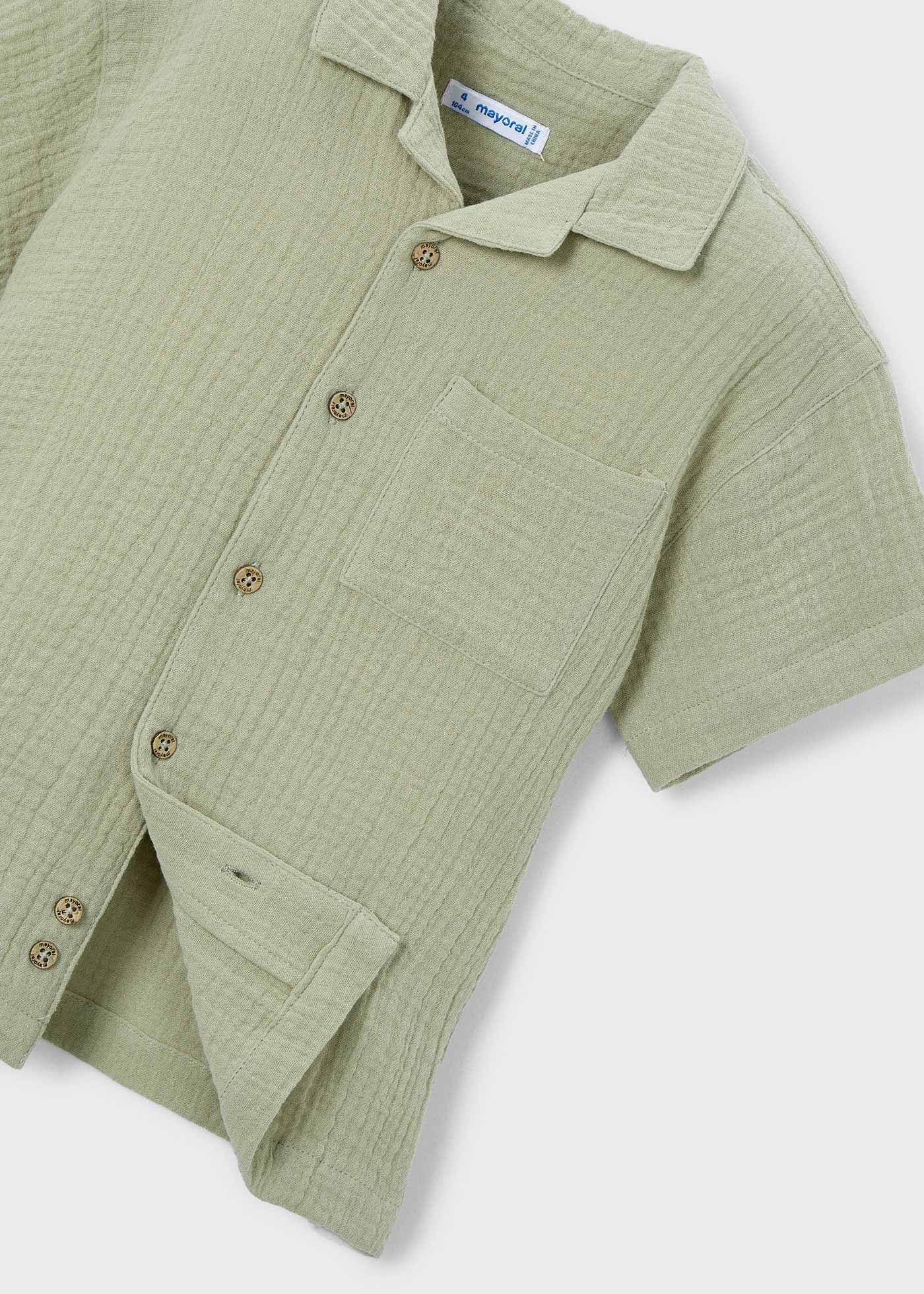 Ανανεώστε την καλοκαιρινή γκαρνταρόμπα με το κομψό και δροσερό παιδικό πουκάμισο Mayoral σε λαδί απόχρωση. Κατασκευασμένο από γκοφρέ βαμβακερό ύφασμα, προσφέρει εξαιρετική διαπνοή και ανάλαφρη αίσθηση, ιδανική για τις ζεστές ημέρες. Ο διαχρονικός γιακάς, τα κουμπιά σε φυσικό τόνο και η μπροστινή τσέπη ολοκληρώνουν ένα σύνολο που συνδυάζει άνεση και στυλ για κάθε περίσταση.