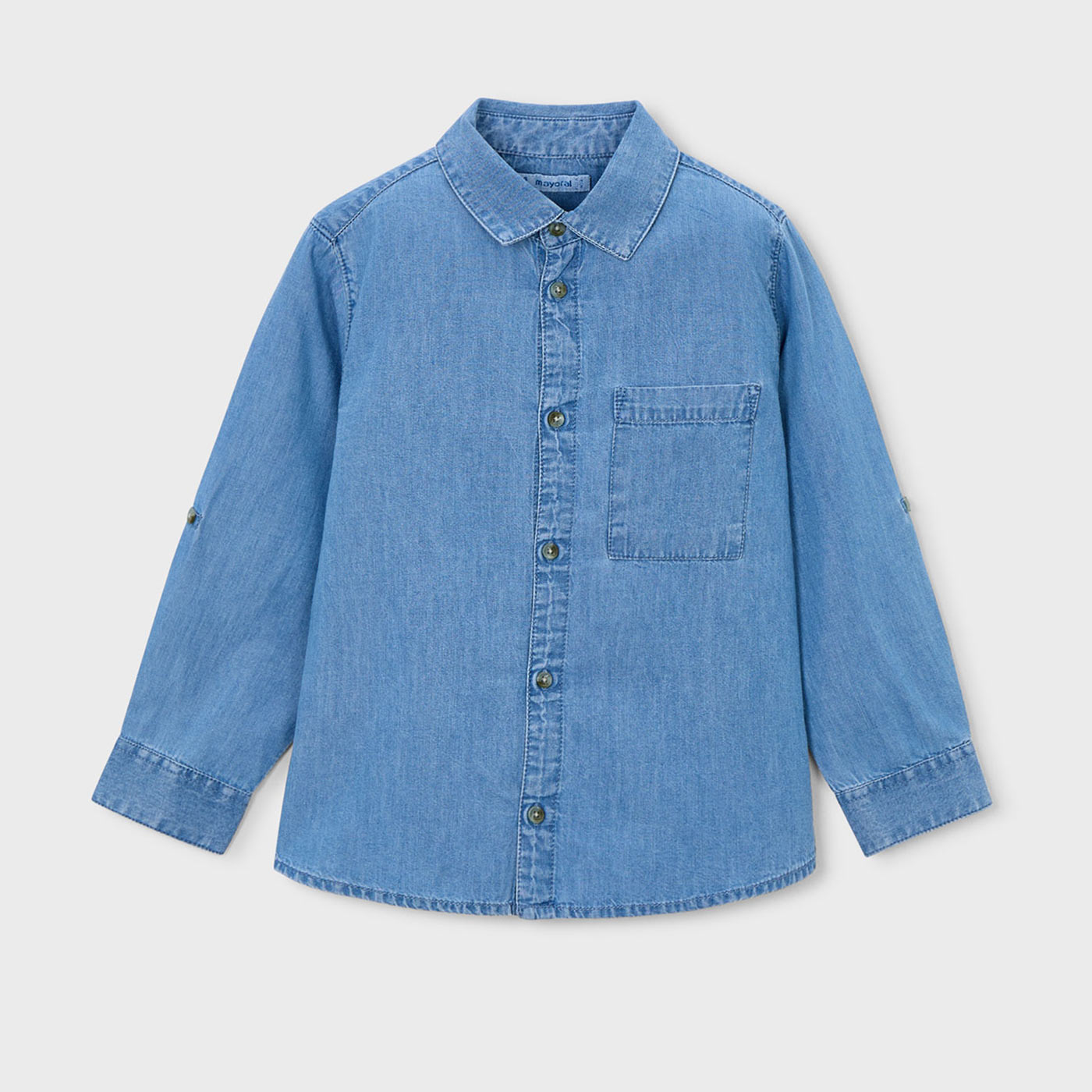 Το παιδικό πουκάμισο Mayoral για αγόρια σε μπλε τζιν απόχρωση αποτελεί ένα διαχρονικό και ευκολοφόρετο κομμάτι, ιδανικό για κάθε εποχή και περίσταση. Με κλασικό σχεδιασμό και σύγχρονες λεπτομέρειες, προσφέρει άνεση, στυλ και πρακτικότητα στην καθημερινή εμφάνιση του παιδιού.Κατασκευασμένο από μαλακό, ελαφρύ denim ύφασμα, είναι ευχάριστο στην αφή και φιλικό προς το παιδικό δέρμα. Διαθέτει κλασικό γιακά, κουμπιά σε όλο το μήκος και τσέπη στο στήθος, που προσθέτει casual χαρακτήρα. Τα μακριά μανίκια με κουμπί για ρεβέρ επιτρέπουν εύκολη προσαρμογή, καθιστώντας το ιδανικό τόσο για πιο δροσερές όσο και για ζεστές ημέρες.