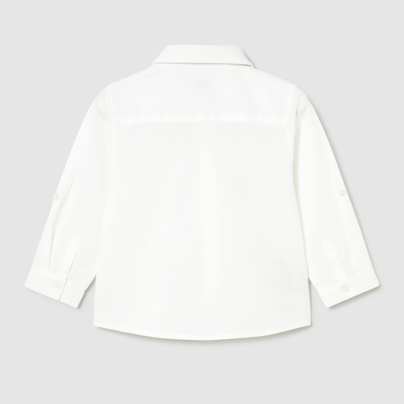 Το πουκάμισο ξεχωρίζει για τον κλασικό, διαχρονικό σχεδιασμό του, που προσφέρει καθαρή και κομψή εικόνα. Το λευκό χρώμα το καθιστά εξαιρετικά ευέλικτο, καθώς συνδυάζεται εύκολα με παντελόνια, chinos, τζιν ή κοστούμια.Διαθέτει κλασικό γιακά, μπροστινό κούμπωμα με κουμπιά και προσεγμένες ραφές που αναδεικνύουν την ποιοτική κατασκευή. Η γραμμή του είναι άνετη, επιτρέποντας ελευθερία κινήσεων χωρίς να χάνει τη φόρμα του.Το ύφασμα είναι απαλό και φιλικό προς το παιδικό δέρμα, ιδανικό για πολύωρη χρήση σε εκδηλώσεις ή στο σχολείο.