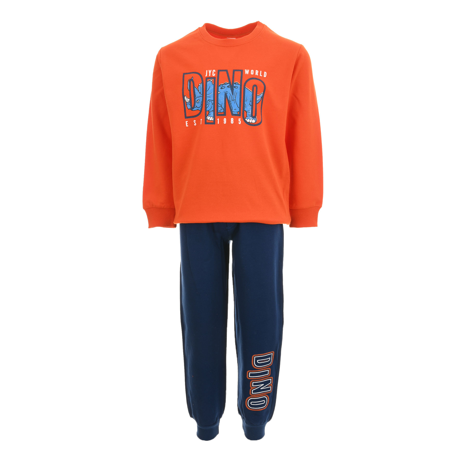 ʼνετο, ζεστό και γεμάτο στυλ, το παιδικό σετ φόρμας Joyce σε αποχρώσεις πορτοκαλί- μπλε είναι ιδανικό για τις καθημερινές δραστηριότητες των αγοριών. Ένα μοντέρνο σετ που συνδυάζει πρακτικότητα και παιχνιδιάρικο design.Το μπλουζάκι ξεχωρίζει με το εντυπωσιακό τύπωμα DINO στο στήθος, δίνοντας fun χαρακτήρα στο outfit. Διαθέτει ριμπ μανσέτες και τελείωμα για καλύτερη εφαρμογή και προστασία από το κρύο.Το παντελόνι φόρμας έχει ελαστική μέση και λάστιχο στα μπατζάκια για σταθερό κράτημα και άνεση στο παιχνίδι.Η απαλή, αχνούδιαστη εσωτερική επένδυση κρατά το παιδί ζεστό χωρίς να βαραίνει.