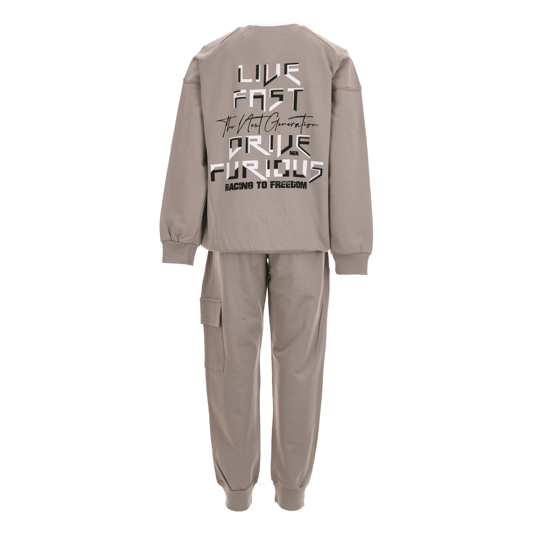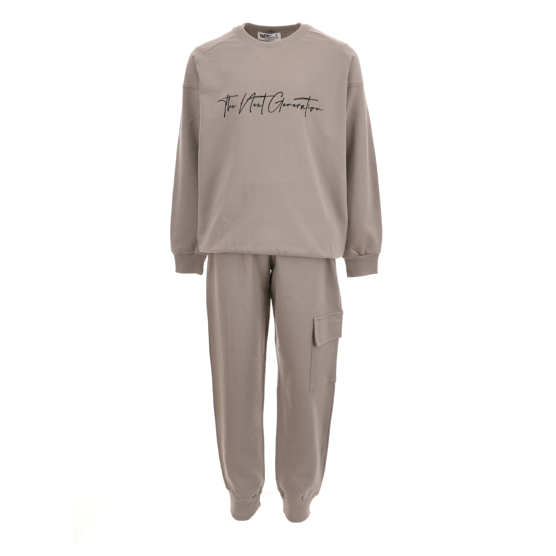 Επιλέξτε άνεση και διαχρονικό στυλ με το παιδικό σετ φόρμας Nekidswear σε έλεφαντ απόχρωση. Ένα minimal και πρακτικό σύνολο που αποτελεί ιδανική επιλογή για σχολείο, δραστηριότητες και καθημερινές εμφανίσεις.Το σετ αποτελείται από μακρυμάνικη μπλούζα φούτερ με διακριτικό τύπωμα στο στήθος και παντελόνι φόρμας σε άνετη γραμμή με λάστιχο στο τελείωμα και πρακτική πλαϊνή τσέπη cargo. Το ύφασμα είναι αχνούδιαστο, ιδανικό για άνοιξη και φθινόπωρο, προσφέροντας άνεση και ευκολία κινήσεων όλη την ημέρα.