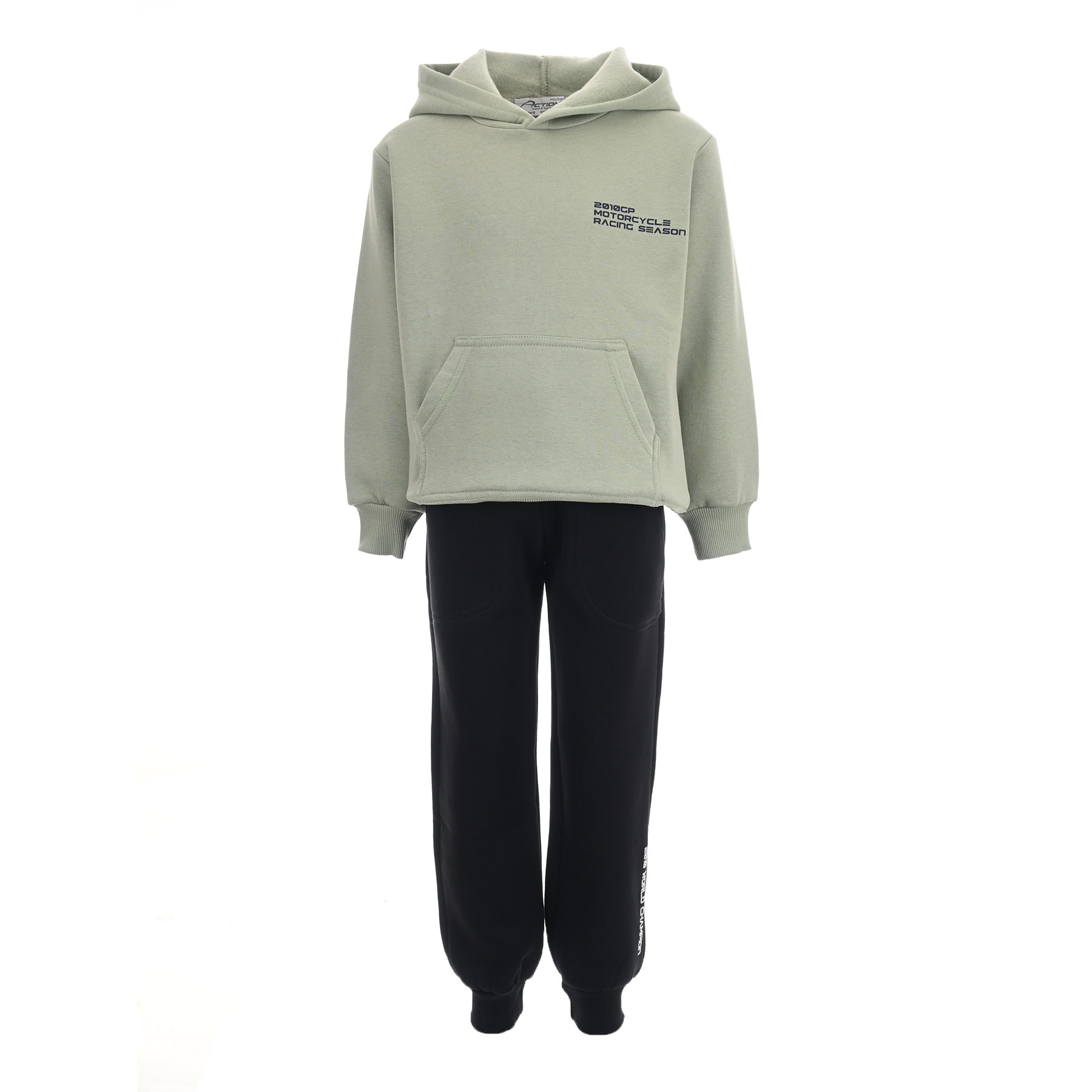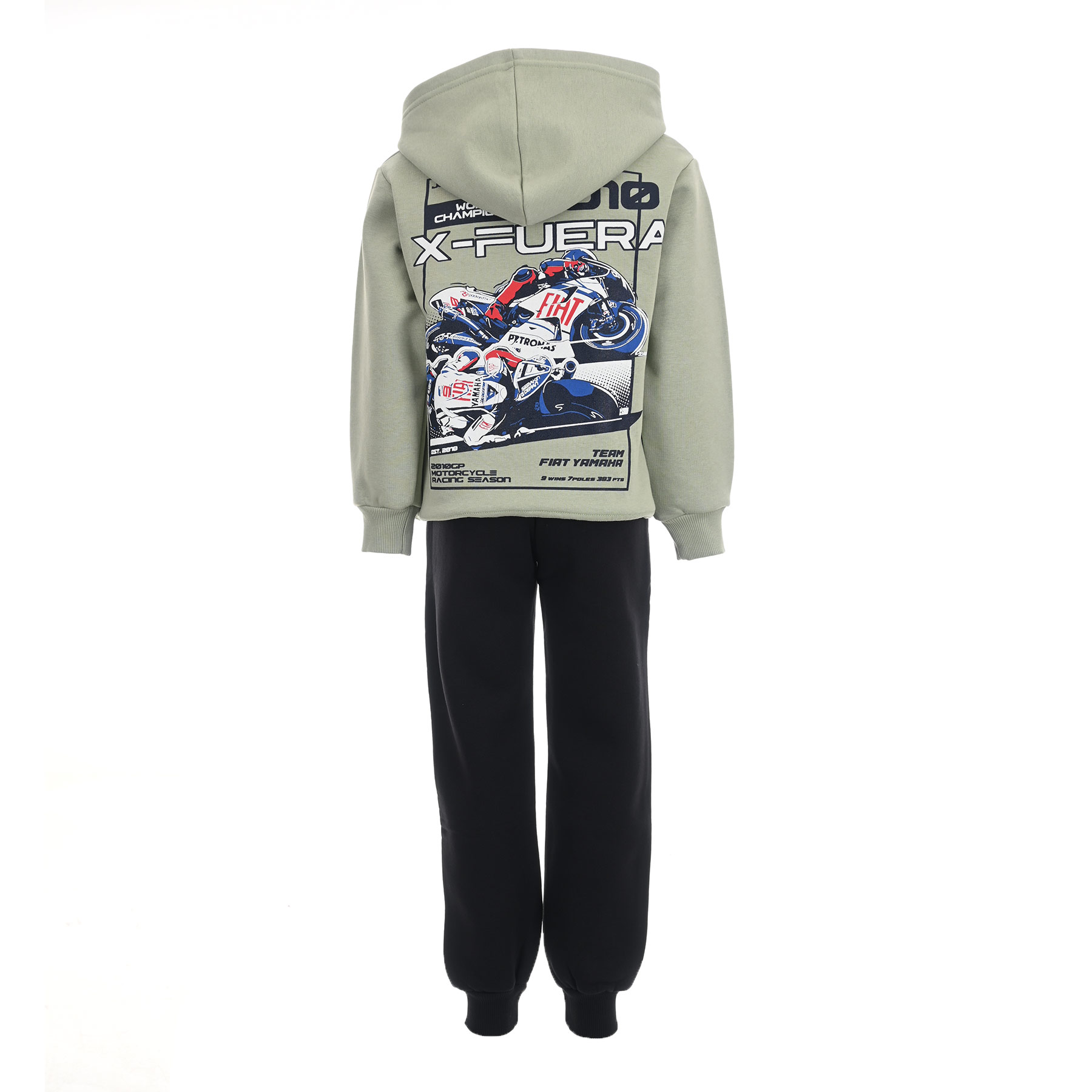 Ανανεώστε την καθημερινή γκαρνταρόμπα του μικρού σας με το παιδικό σετ φόρμας Action Sportswear σε φυστικί και μαύρο χρώμα. Το σετ περιλαμβάνει φούτερ με κουκούλα και εντυπωσιακό print με μοτοσυκλέτες στην πλάτη, καθώς και παντελόνι φόρμας σε ίσια γραμμή με λάστιχο στη μέση και στα μπατζάκια για άνετη εφαρμογή.