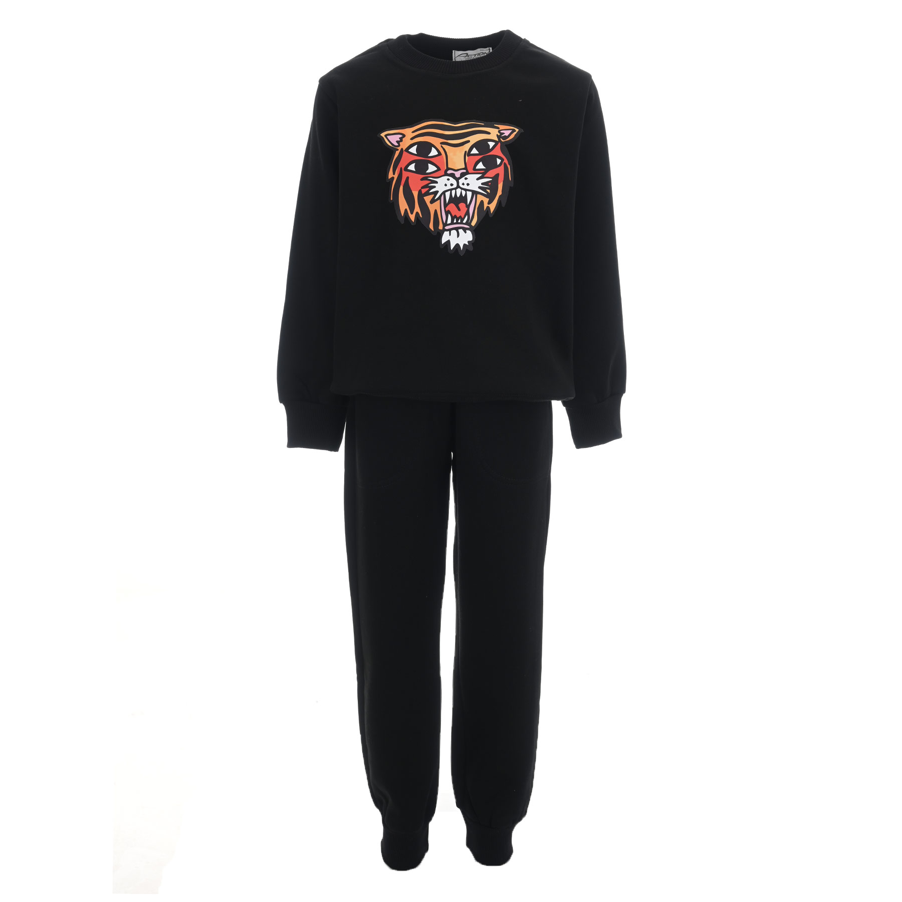 Ανανεώστε την καθημερινή εμφάνιση του μικρού σας με αυτό το παιδικό σετ φόρμας για αγόρια Action Sportswear σε κλασικό μαύρο χρώμα. Το σετ περιλαμβάνει φούτερ με εντυπωσιακό τύπωμα τίγρης στο στήθος και παντελόνι φούτερ με λάστιχο στη μέση και στους αστραγάλους για άνετη εφαρμογή.