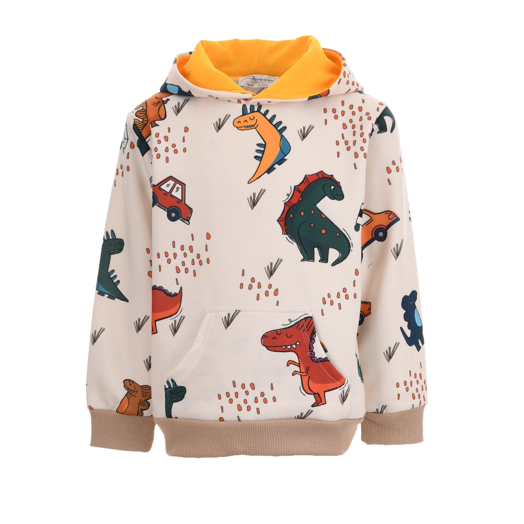 Κάντε το καθημερινό ντύσιμο του μικρού σας ακόμα πιο διασκεδαστικό με αυτό το παιδικό σετ φόρμα φούτερ για αγόρι Action Sportswear, σε μπεζ allover print με δεινόσαυρους και πράσινο σκούρο παντελόνι. Ένα άνετο και παιχνιδιάρικο σετ που συνδυάζει στυλ, χρώμα και πρακτικότητα ιδανικό για τις καθημερινές δραστηριότητες, το σχολείο ή το παιχνίδι!