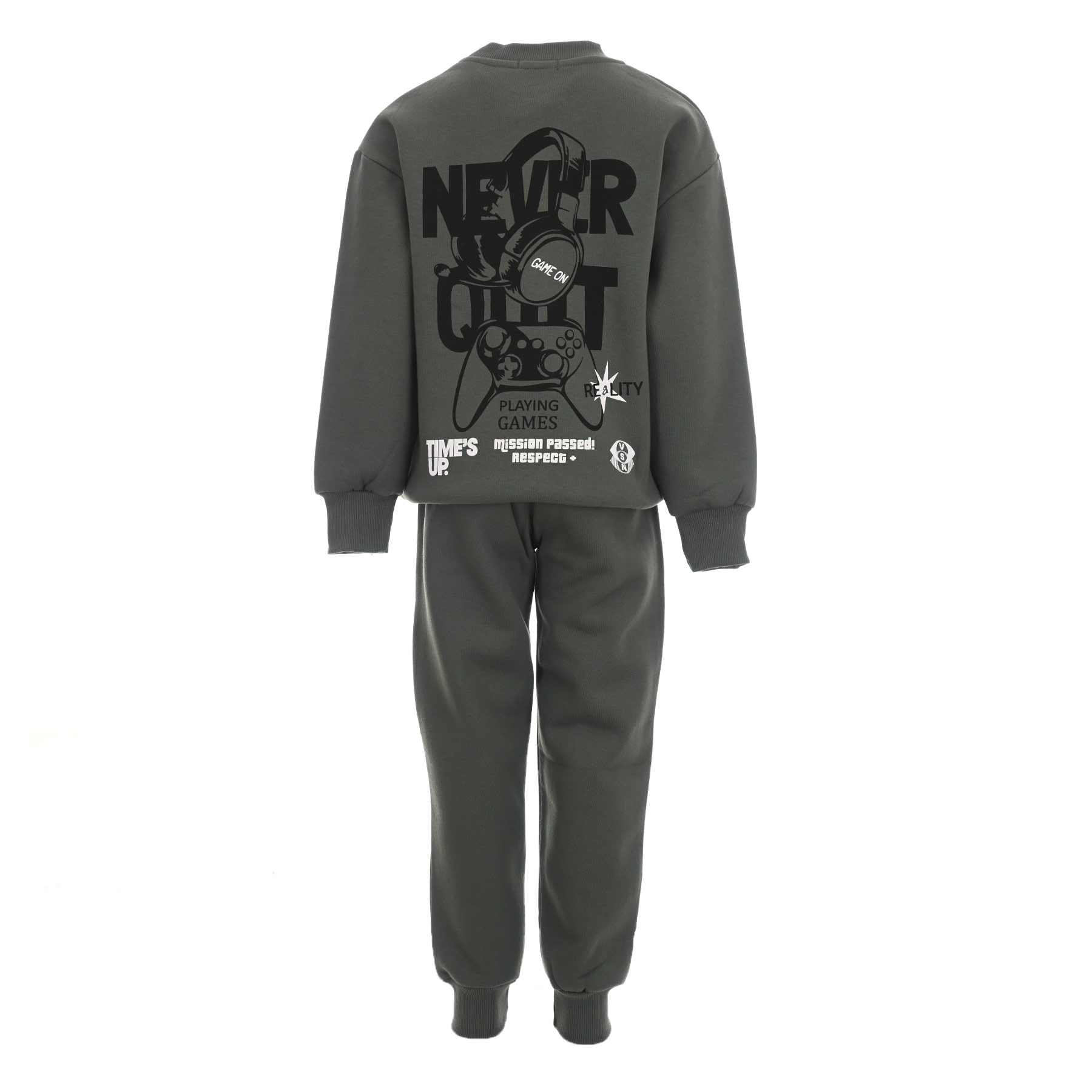 Ανανεώστε την καθημερινή γκαρνταρόμπα του μικρού σας με αυτό το άνετο και στυλάτο παιδικό σετ φόρμα φούτερ Domer σε χακί χρώμα. Το σετ αποτελείται από μπλούζα φούτερ με στρογγυλή λαιμόκοψη και εντυπωσιακά prints με gaming θεματολογία μπροστά και πίσω, καθώς και παντελόνι φόρμας με λάστιχο στη μέση και στους αστραγάλους για τέλεια εφαρμογή.