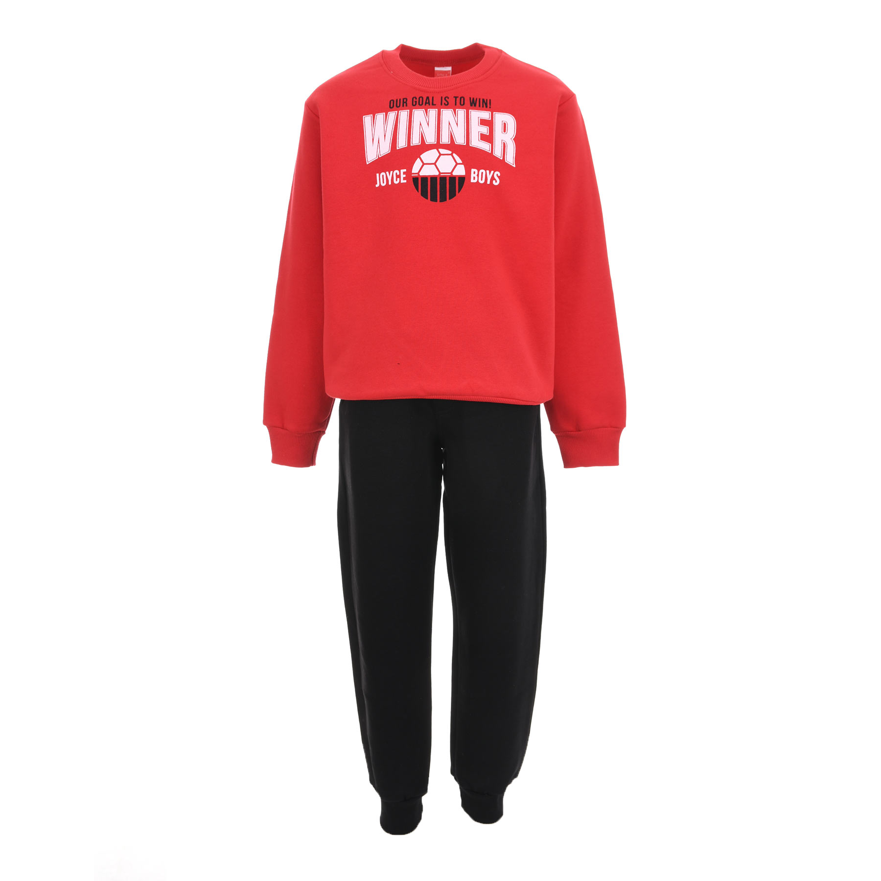 Παιδικά ρούχα Joyce. Παιδικό σετ φόρμα για αγόρια Joyce. Παιδικό σετ φόρμα φούτερ για αγόρια Joyce κόκκινο- μαύρο.