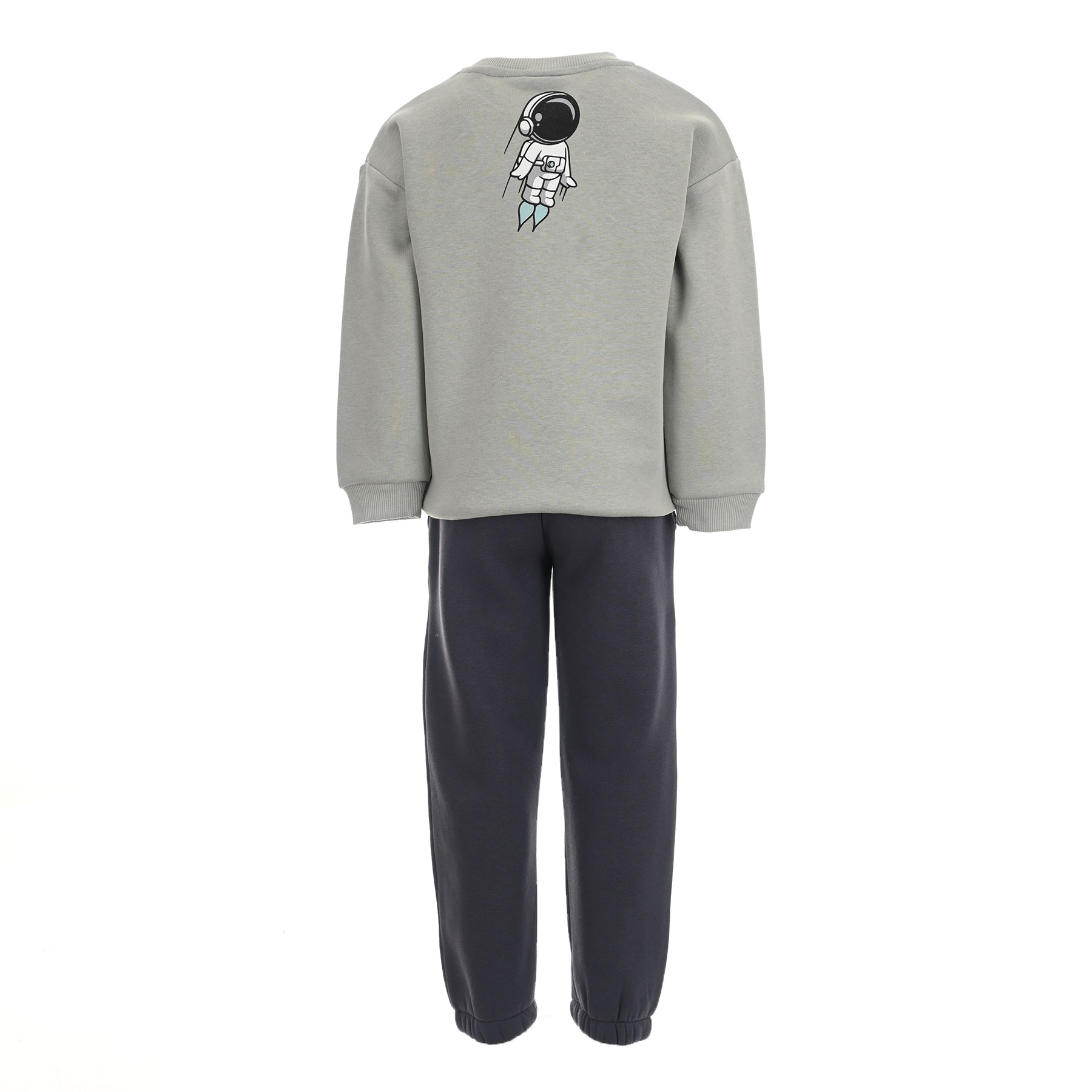 Ανανεώστε την παιδική ντουλάπα με το μοναδικό σετ φόρμα φούτερ για αγόρια Trax "Space", σε αποχρώσεις μέντας και ανθρακί. Το σετ περιλαμβάνει μπλούζα φούτερ με εντυπωσιακό διαστημικό σχέδιο με αστροναύτη, πλανήτες και διαστημόπλοιο, που μαγνητίζει τα βλέμματα και εμπνέει φαντασία και περιπέτεια. Το παντελόνι σε ανθρακί απόχρωση διαθέτει τύπωμα με διαστημικά μοτίβα για ολοκληρωμένο look.