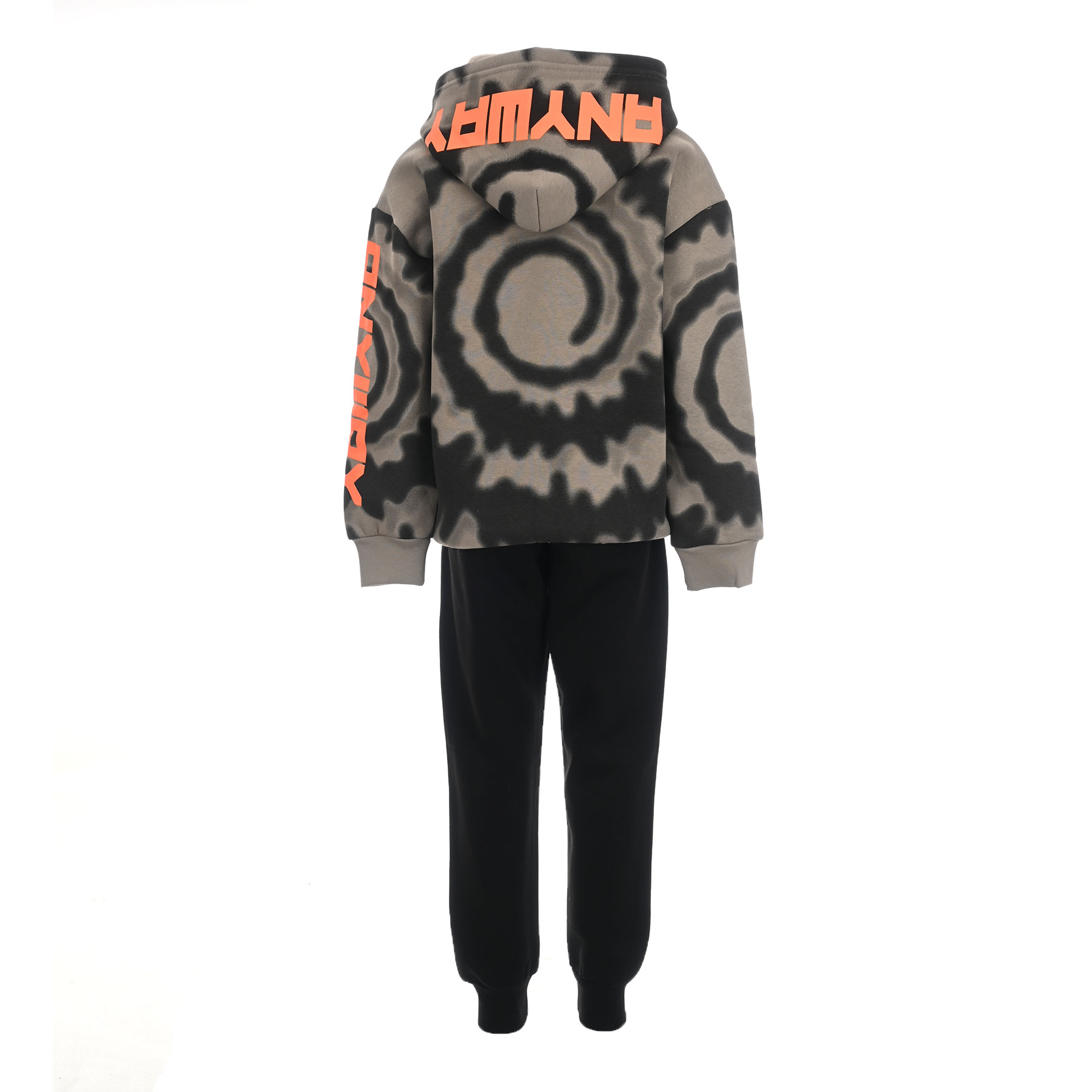 Το παιδικό σετ φόρμα φούτερ για αγόρια Trax σε ελεφαντί μαύρο χρώμα συνδυάζει στυλ, άνεση και ζεστασιά για όλες τις καθημερινές δραστηριότητες. Το σετ περιλαμβάνει φούτερ με κουκούλα σε μοντέρνο tie-dye σχέδιο και έντονα neon γράμματα στο πίσω μέρος, καθώς και παντελόνι φόρμας σε ανθρακί χρώμα με λάστιχο στη μέση και στους αστραγάλους για άψογη εφαρμογή.