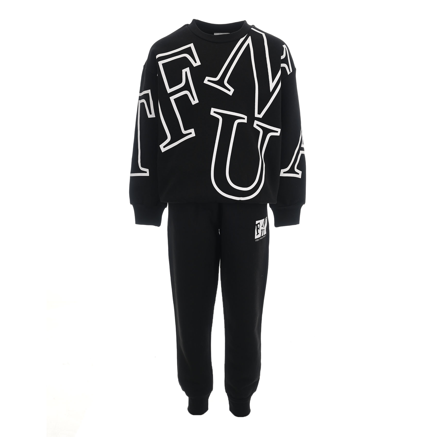 Ανανεώστε την καθημερινή γκαρνταρόμπα του παιδιού σας με το παιδικό σετ φόρμα φούτερ για αγόρια Trax σε μαύρο χρώμα. Το σετ αποτελείται από άνετο φούτερ με εντυπωσιακό σχέδιο με μεγάλα γράμματα σε λευκή απόχρωση και παντελόνι φόρμας με λάστιχο στη μέση και στα μπατζάκια για σταθερή εφαρμογή.