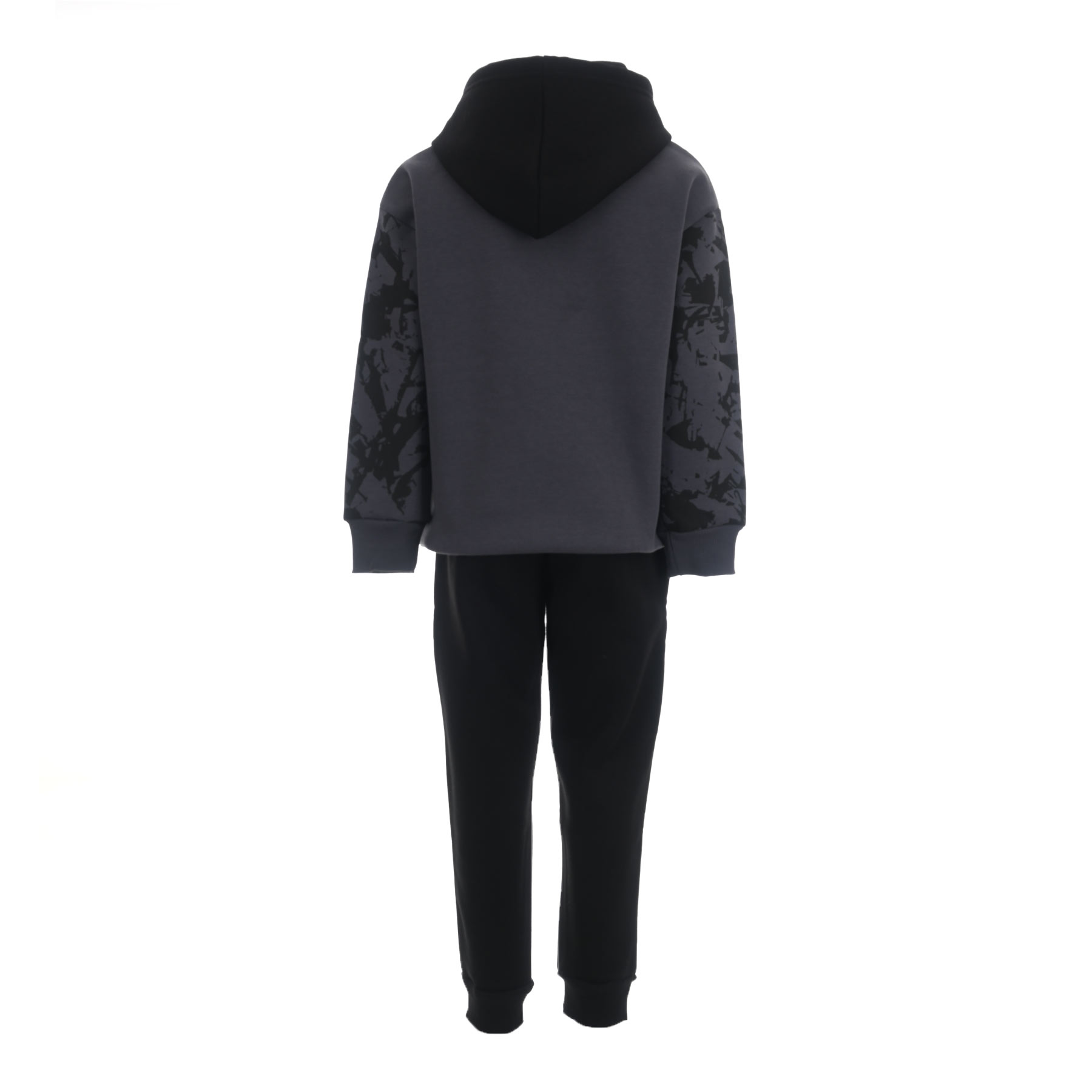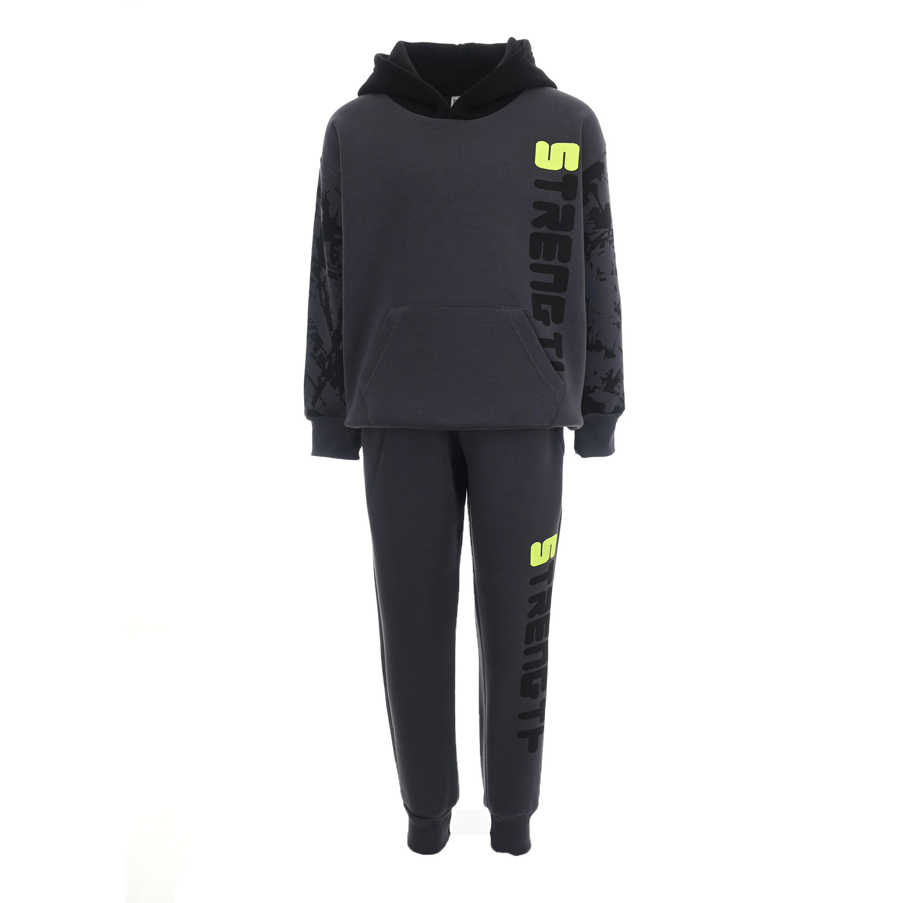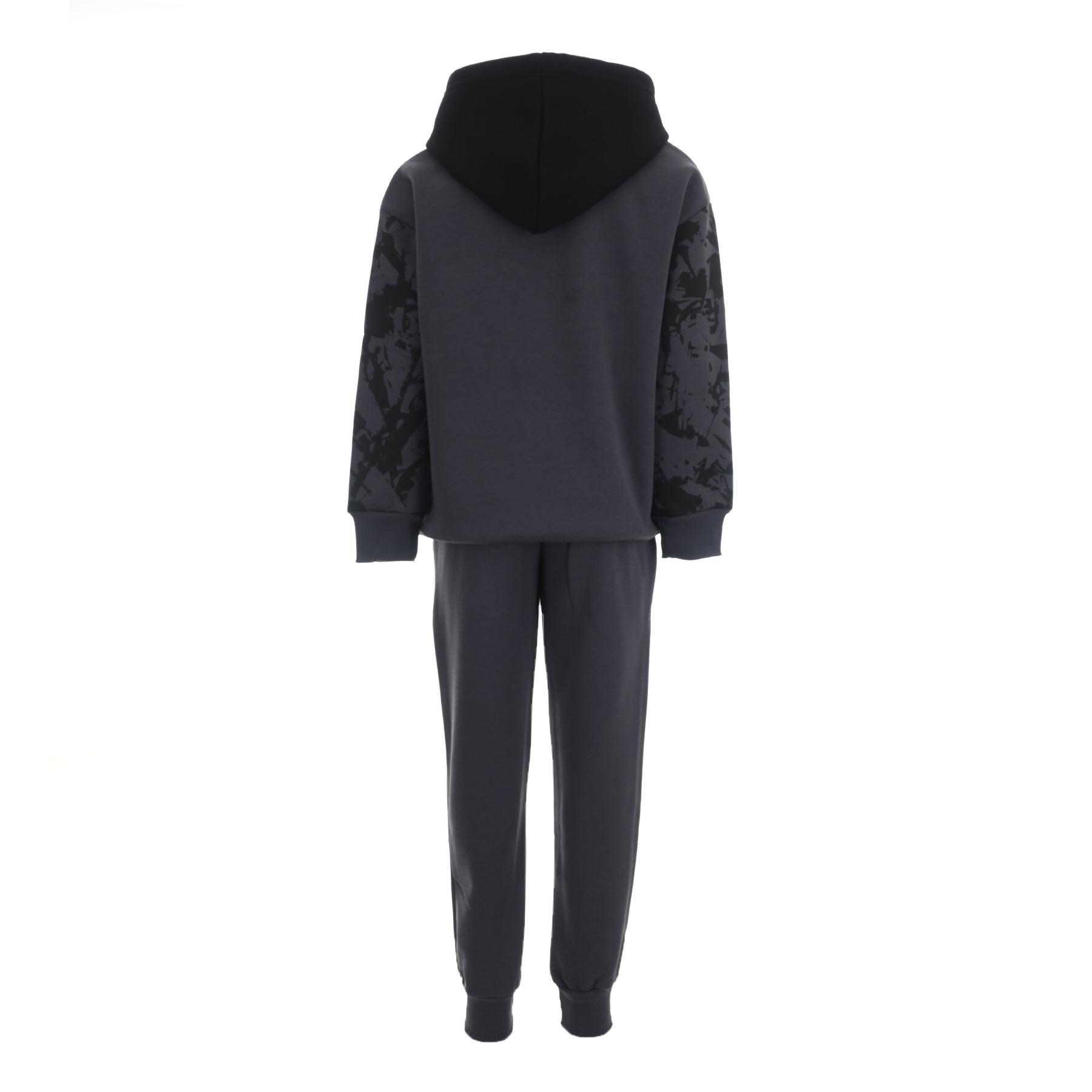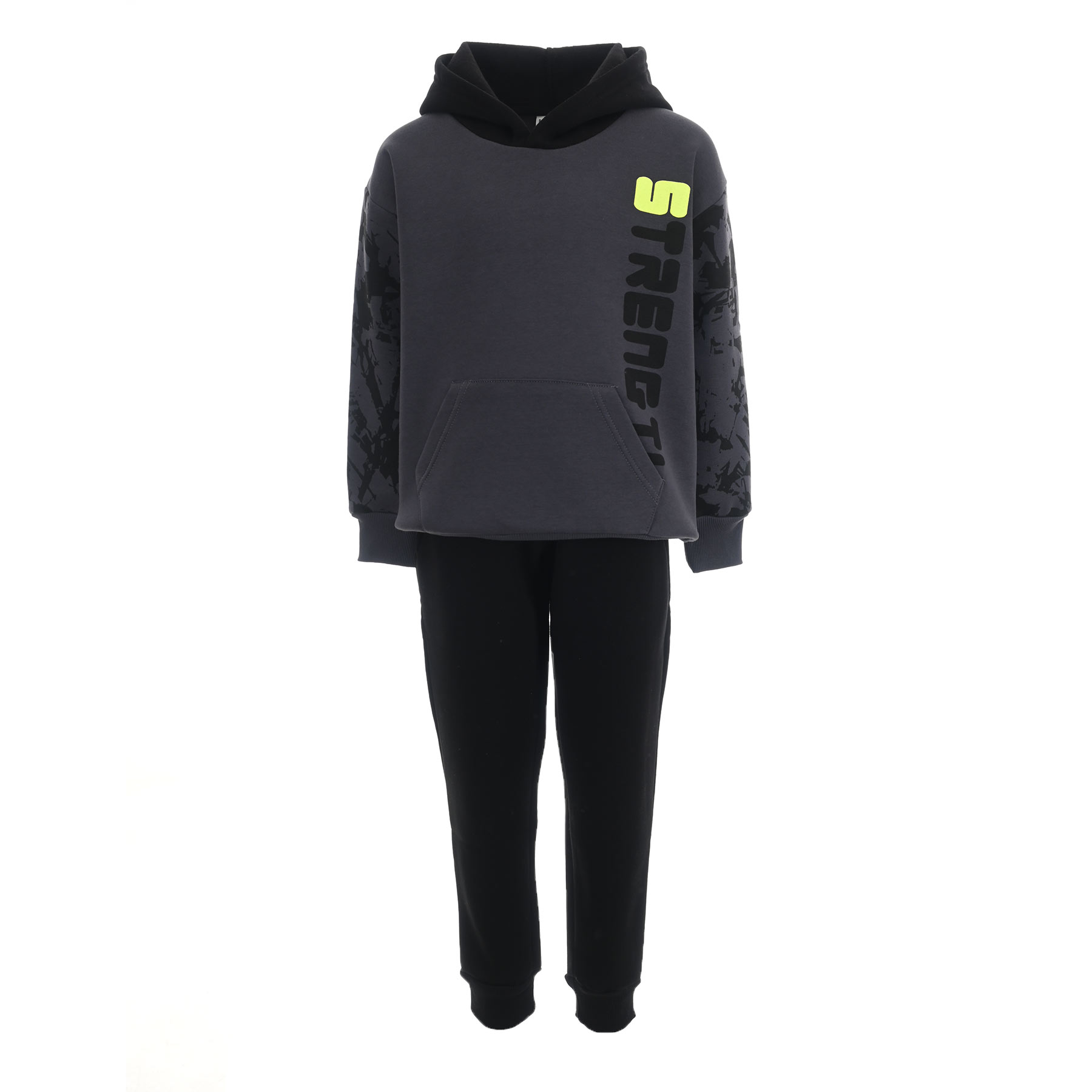 Το παιδικό σετ φόρμας Trax σε ανθρακί απόχρωση είναι η ιδανική επιλογή για αγόρια που αγαπούν το άνετο και μοντέρνο ντύσιμο. Αποτελείται από μπλούζα φούτερ με κουκούλα και δύο παντελόνια, προσφέροντας πρακτικότητα και ευελιξία για κάθε μέρα.