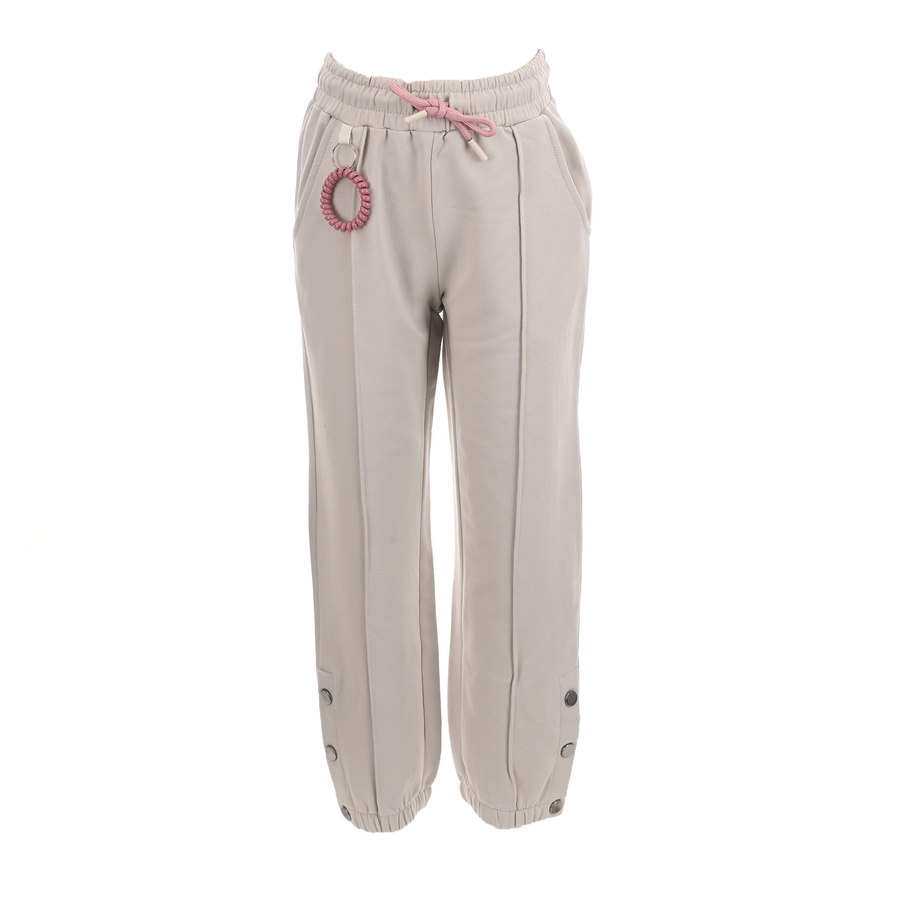Μπεζ παντελόνι φόρμας με λάστιχο στη μέση και στους αστραγάλους, διακοσμητικά κουμπιά στο τελείωμα και πρακτική ελαστικότητα για άνετη εφαρμογή.