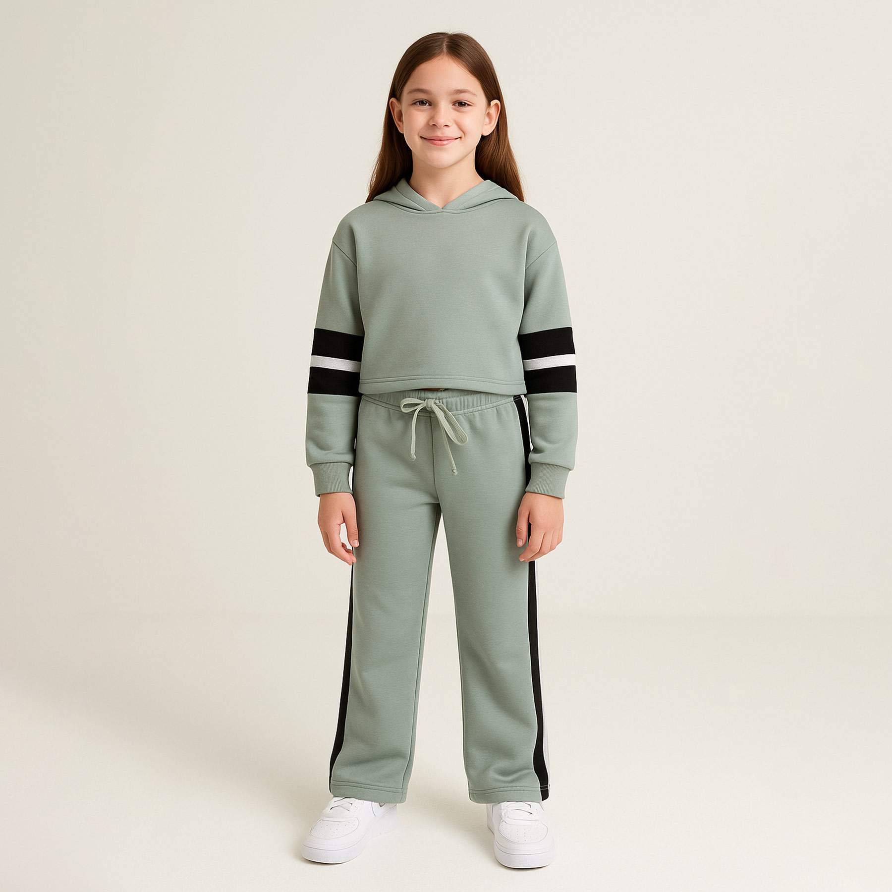 Το παιδικό σετ φόρμα φούτερ για κορίτσια σε φυστικί χρώμα από την Action Sportswear συνδυάζει άνεση και αθλητικό στυλ, ιδανικό για καθημερινές δραστηριότητες και casual εμφανίσεις. Το σετ περιλαμβάνει: