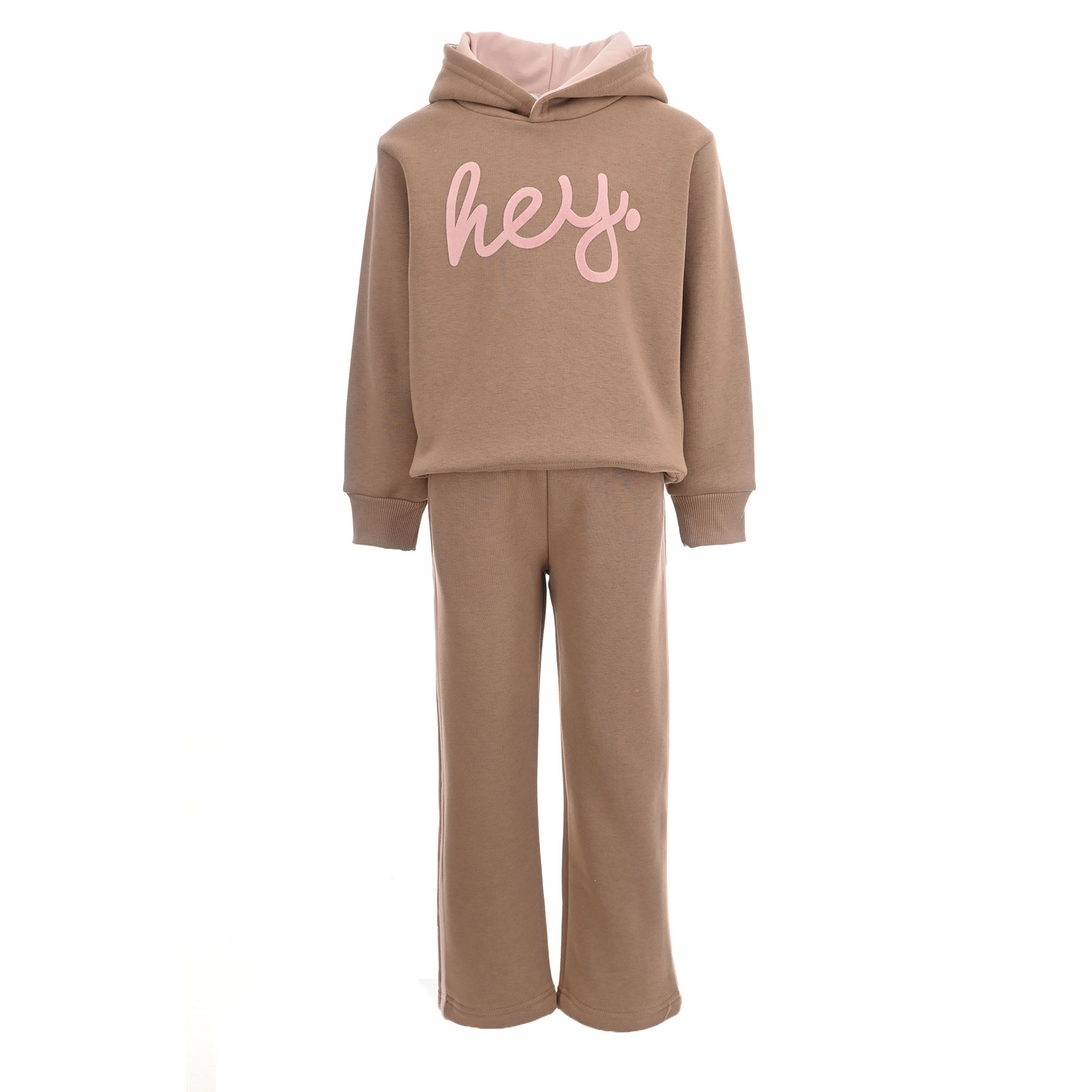 Χαρίστε στυλ και άνεση στη μικρή σας με το παιδικό σετ φόρμα φούτερ για κορίτσια Action Sportswear σε μόκα απόχρωση. Το σετ περιλαμβάνει ζεστή μπλούζα φούτερ με κουκούλα και διακριτική ροζ στάμπα "hey." στο μπροστινό μέρος, καθώς και παντελόνι σε ίσια γραμμή με άνετη εφαρμογή. Το μαλακό και ανθεκτικό ύφασμα προσφέρει ελευθερία κινήσεων, ιδανικό για το σχολείο, τις βόλτες ή την καθημερινή χαλάρωση.