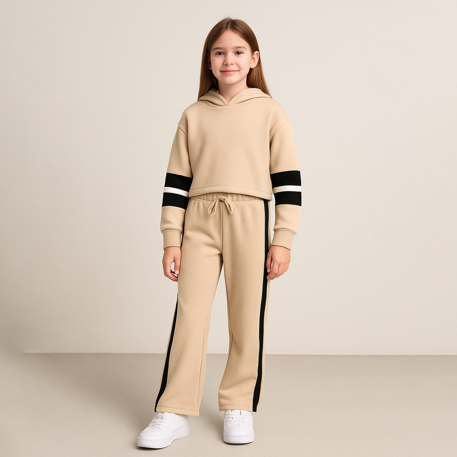 Το παιδικό σετ φόρμα φούτερ για κορίτσια σε μπεζ χρώμα από την Action Sportswear συνδυάζει άνεση και αθλητικό στυλ, ιδανικό για καθημερινές δραστηριότητες και casual εμφανίσεις. Το σετ περιλαμβάνει: