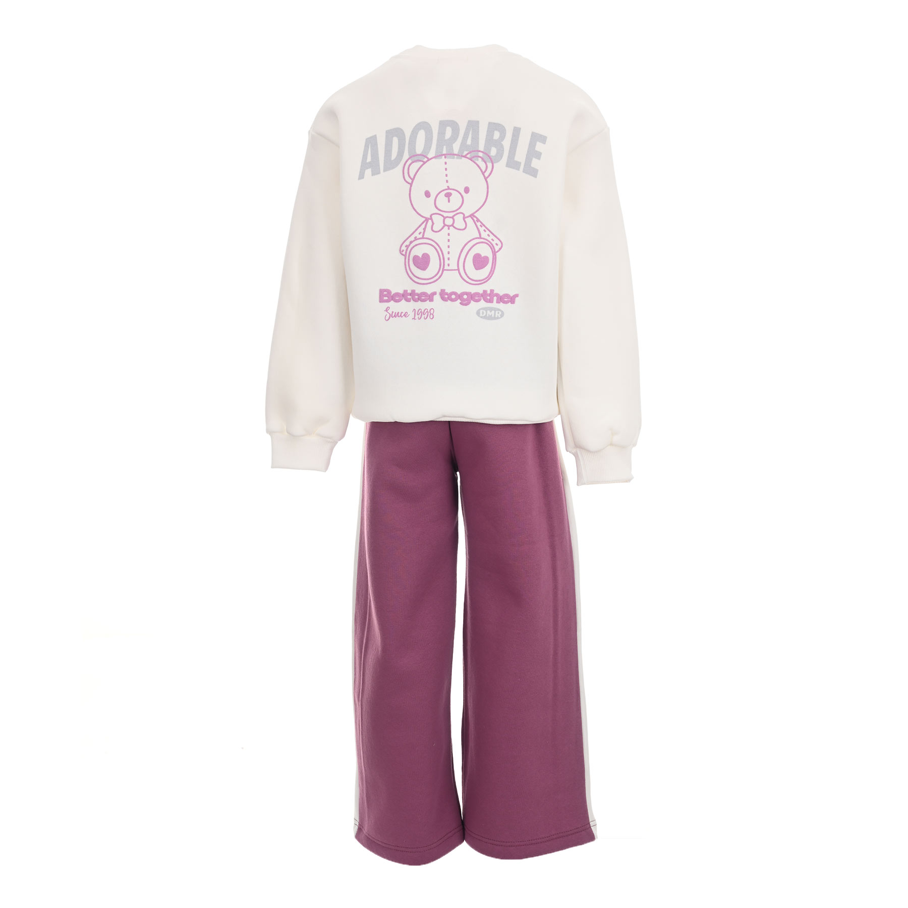 Χαρίστε στη μικρή σας κομψότητα και άνεση με το παιδικό σετ φόρμα Domer σε λευκό και ματζέντα. Το σετ αποτελείται από μπλούζα με στρογγυλή λαιμόκοψη και μακρύ μανίκι σε λευκό χρώμα με χαριτωμένο αρκουδάκι και στάμπες σε ροζ-μοβ αποχρώσεις που δίνουν παιχνιδιάρικη διάθεση. Το παντελόνι σε φαρδιά γραμμή σε απόχρωση ματζέντα, με πλαϊνές λευκές λωρίδες, προσφέρει μοντέρνο αθλητικό στυλ και άνεση σε κάθε δραστηριότητα.