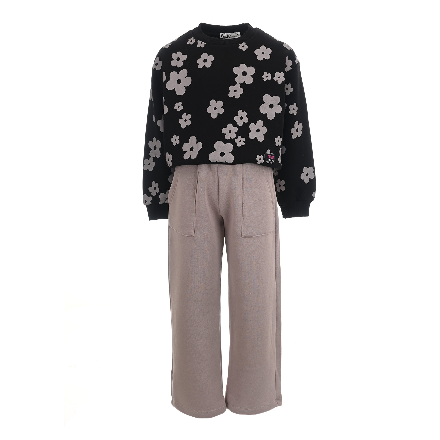 Ανανεώστε τη γκαρνταρόμπα της μικρής σας με το παιδικό σετ φόρμα για κορίτσια Nekidswear σε μαύρο- μπεζ με λουλούδια. Ένα κομψό και άνετο σετ που συνδυάζει στιλ και πρακτικότητα, ιδανικό για το σχολείο, τη βόλτα ή τις δραστηριότητες.