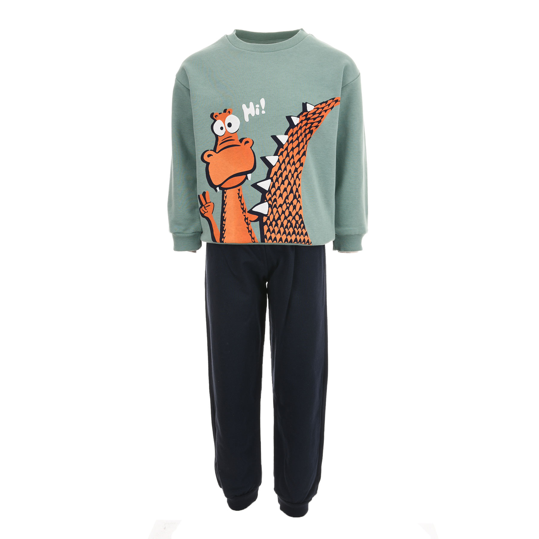 Παιδικό σετ φόρμας αχνούδιαστη για αγόρια Trax σε μοντέρνο συνδυασμό μέντα-μαρέν, ιδανικό για άνεση και ζεστασιά τις δροσερές ημέρες. Το σετ αποτελείται από μέντα φούτερ με εντυπωσιακό τύπωμα δεινόσαυρου και παιχνιδιάρικη διάθεση, που χαρίζει χαμόγελα και ξεχωριστό στυλ, καθώς και από μαρέν παντελόνι φόρμας με ελαστική μέση και μπατζάκια για σταθερή εφαρμογή και άνεση στην κίνηση. Η εσωτερική αχνούδιαστη επένδυση προσφέρει απαλή υφή και επιπλέον ζεστασιά, καθιστώντας το ιδανικό για σχολείο, βόλτες και καθημερινό παιχνίδι. Κατασκευασμένο από ποιοτικό βαμβακερό ύφασμα, εξασφαλίζει ανθεκτικότητα στη χρήση και ευχάριστη αίσθηση όλη μέρα. Ένα πρακτικό και stylish παιδικό σετ φόρμας Trax που συνδυάζει άνεση, ποιότητα και fun χαρακτήρα για μικρούς λάτρεις των δεινοσαύρων.