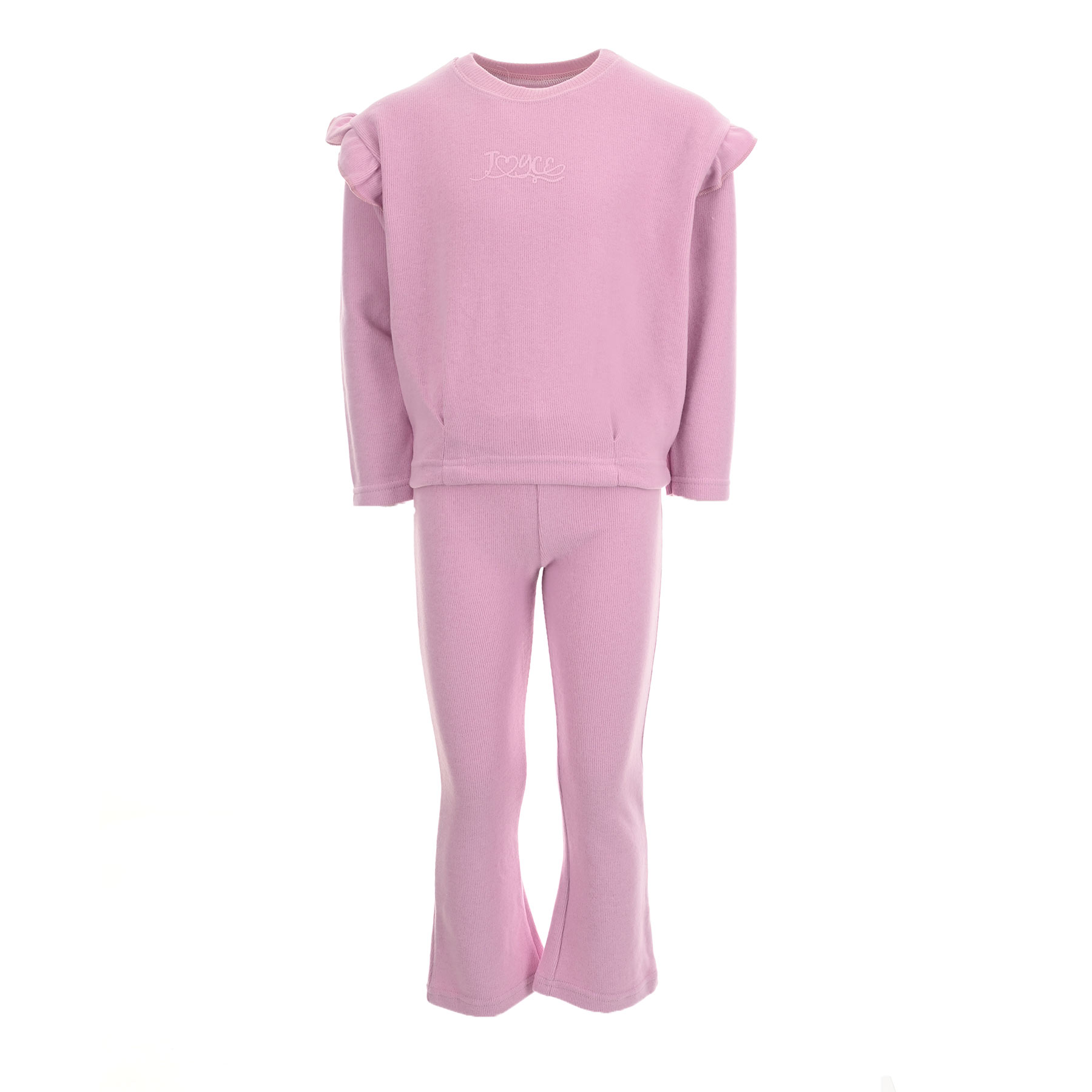 Χαρίστε στυλ και άνεση στην καθημερινότητα της μικρής σας με αυτό το υπέροχο παιδικό σετ ριπ Joyce για κορίτσια σε λιλά απόχρωση. Το σετ περιλαμβάνει μπλούζα με μακριά μανίκια και ιδιαίτερα βολάν στους ώμους, που προσθέτουν μια κοριτσίστικη και ρομαντική πινελιά, καθώς και παντελόνι τύπου κολάν με ελαφριά καμπάνα στο τελείωμα για μοντέρνο look.