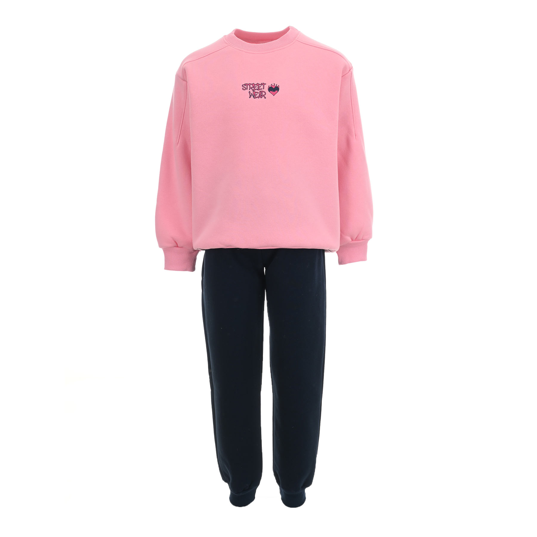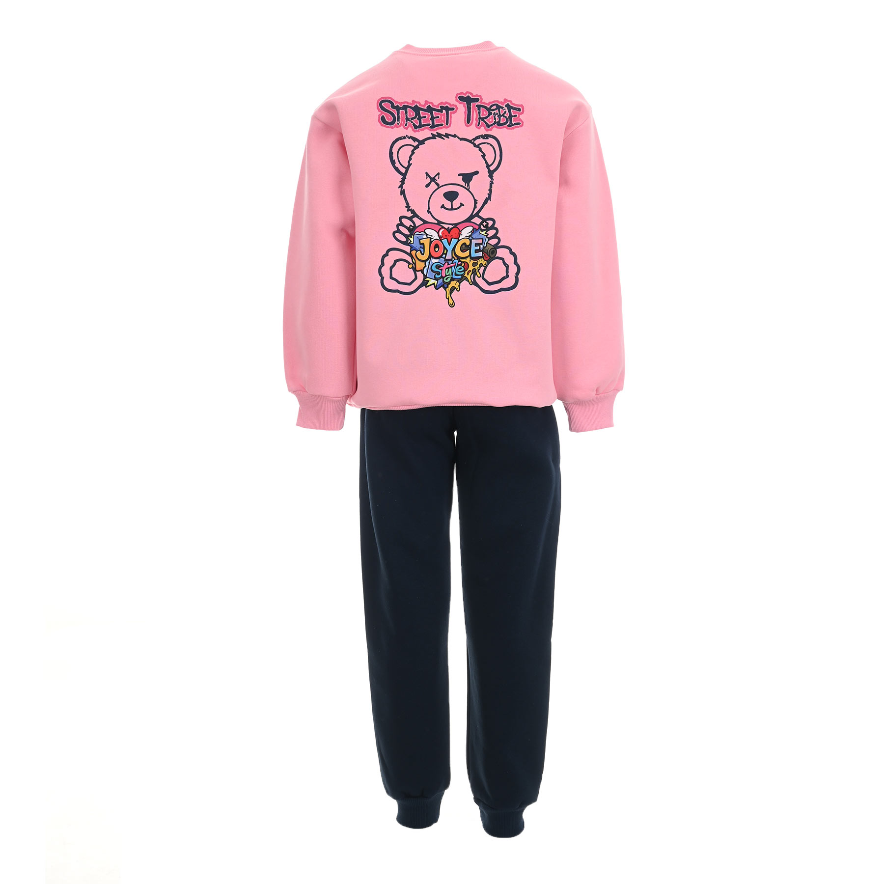 Ανανεώστε τη συλλογή της μικρής σας με αυτό το κομψό και άνετο σετ φόρμας Joyce σε ροζ- μαρέν . Το σετ αποτελείται από μπλούζα φούτερ με στρογγυλή λαιμόκοψη και ιδιαίτερο print μπροστά με το λογότυπο Street Wear και μικρή καρδιά, ενώ στο πίσω μέρος ξεχωρίζει το μεγάλο σχέδιο με αρκουδάκι και graffiti λεπτομέρειες που δίνουν urban street στυλ. Το παντελόνι σε μαρέν χρώμα διαθέτει λάστιχο στη μέση και στα τελειώματα για άνετη εφαρμογή και ζεστασιά.