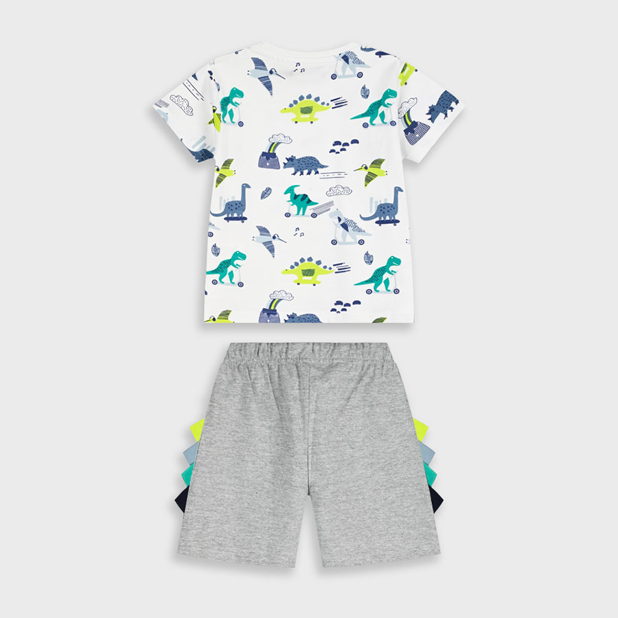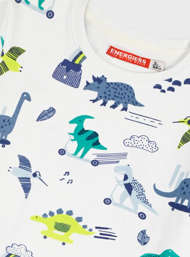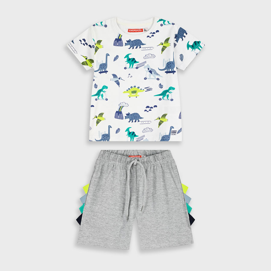 Το παιδικό σετ για αγόρια Energiers σε λευκό-γκρι αποχρώσεις είναι η τέλεια επιλογή για άνετες και παιχνιδιάρικες εμφανίσεις. Η μπλούζα με all-over print δεινόσαυρων χαρίζει fun χαρακτήρα, ενώ η γκρι βερμούδα με χρωματικές λεπτομέρειες στο πλάι ολοκληρώνει το outfit με μοντέρνο στυλ.