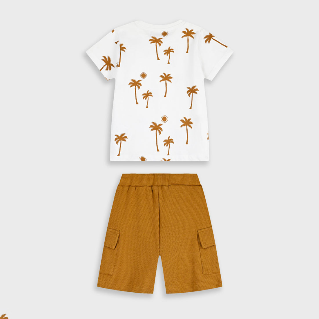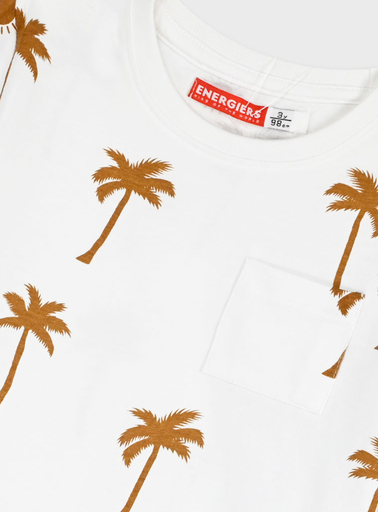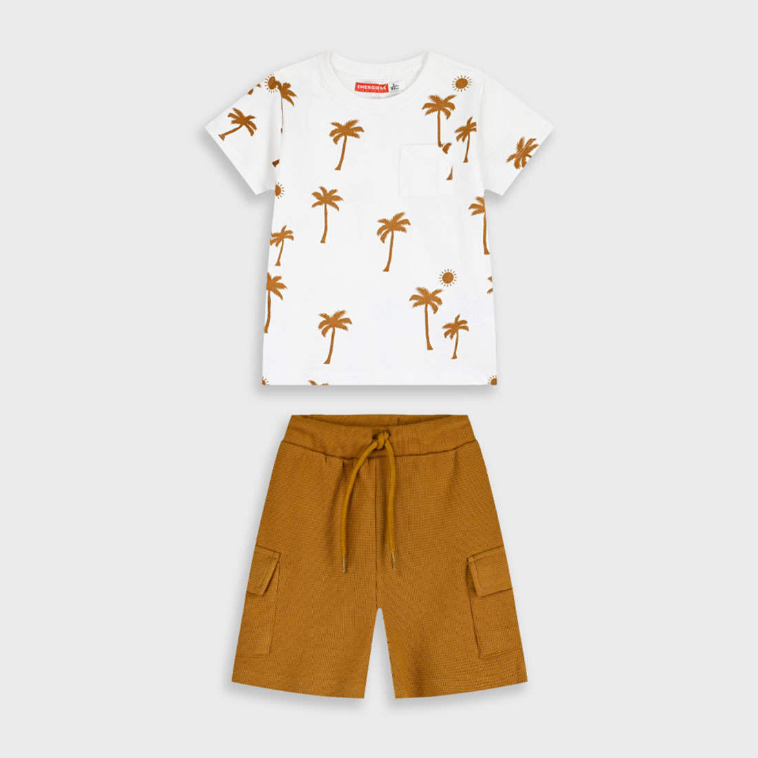 Το παιδικό σετ για αγόρια Energiers λευκό-καφέ είναι η απόλυτη επιλογή για καλοκαιρινό στυλ με tropical διάθεση. Η λευκή μπλούζα με all-over print φοίνικες αποπνέει καλοκαιρινή ανεμελιά, ενώ το καφέ σορτσάκι με cargo τσέπες προσθέτει πρακτικότητα και μοντέρνο χαρακτήρα.