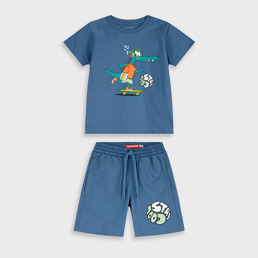 Το παιδικό σετ Energiers για αγόρια σε ραφ απόχρωση είναι η ιδανική επιλογή για άνετες και stylish καλοκαιρινές εμφανίσεις. Το σετ περιλαμβάνει κοντομάνικη μπλούζα με fun print δεινόσαυρου σε skateboard και ασορτί σορτσάκι, δημιουργώντας ένα παιχνιδιάρικο και μοντέρνο σύνολο που ξεχωρίζει.