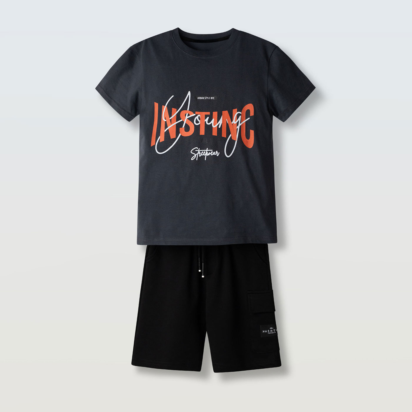 Το παιδικό σετ Hashtag σε ανθρακί και μαύρο είναι η ιδανική επιλογή για αγόρια που αγαπούν το μοντέρνο urban ντύσιμο. Αποτελείται από κοντομάνικη μπλούζα με δυναμικό print μπροστά και μαύρη βερμούδα cargo, δημιουργώντας ένα σύγχρονο street style look για καθημερινές εμφανίσεις με άποψη.Η μπλούζα διαθέτει άνετη γραμμή και μαλακή υφή για άνεση όλη μέρα, ενώ η βερμούδα με ελαστική μέση και ρυθμιζόμενο κορδόνι εξασφαλίζει τέλεια εφαρμογή και ελευθερία κινήσεων. Οι πρακτικές πλαϊνές τσέπες προσθέτουν λειτουργικότητα και σπορ χαρακτήρα.Ιδανικό για σχολείο, βόλτες και καλοκαιρινές δραστηριότητες, το σετ αυτό συνδυάζει στυλ, άνεση και αντοχή στην καθημερινή χρήση.