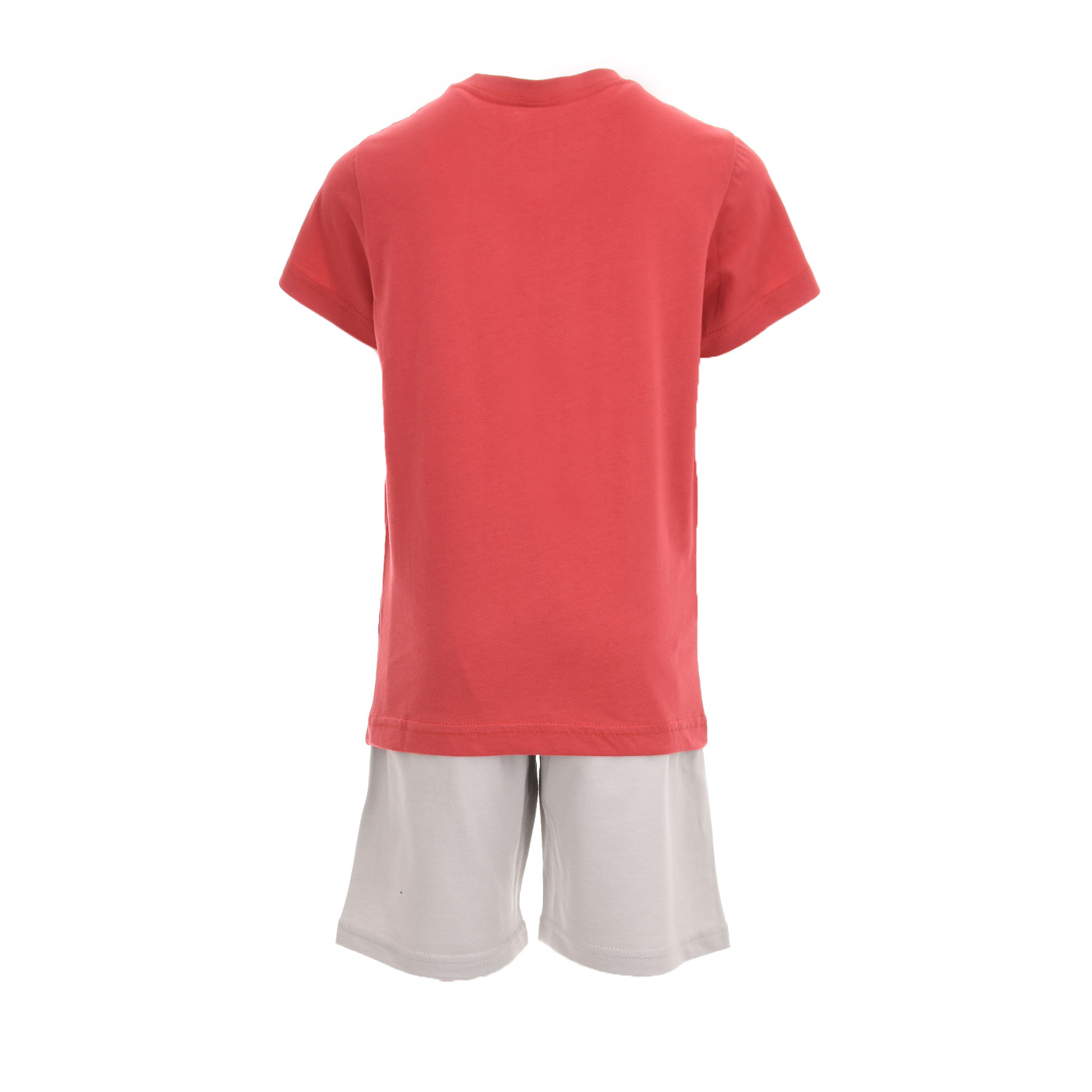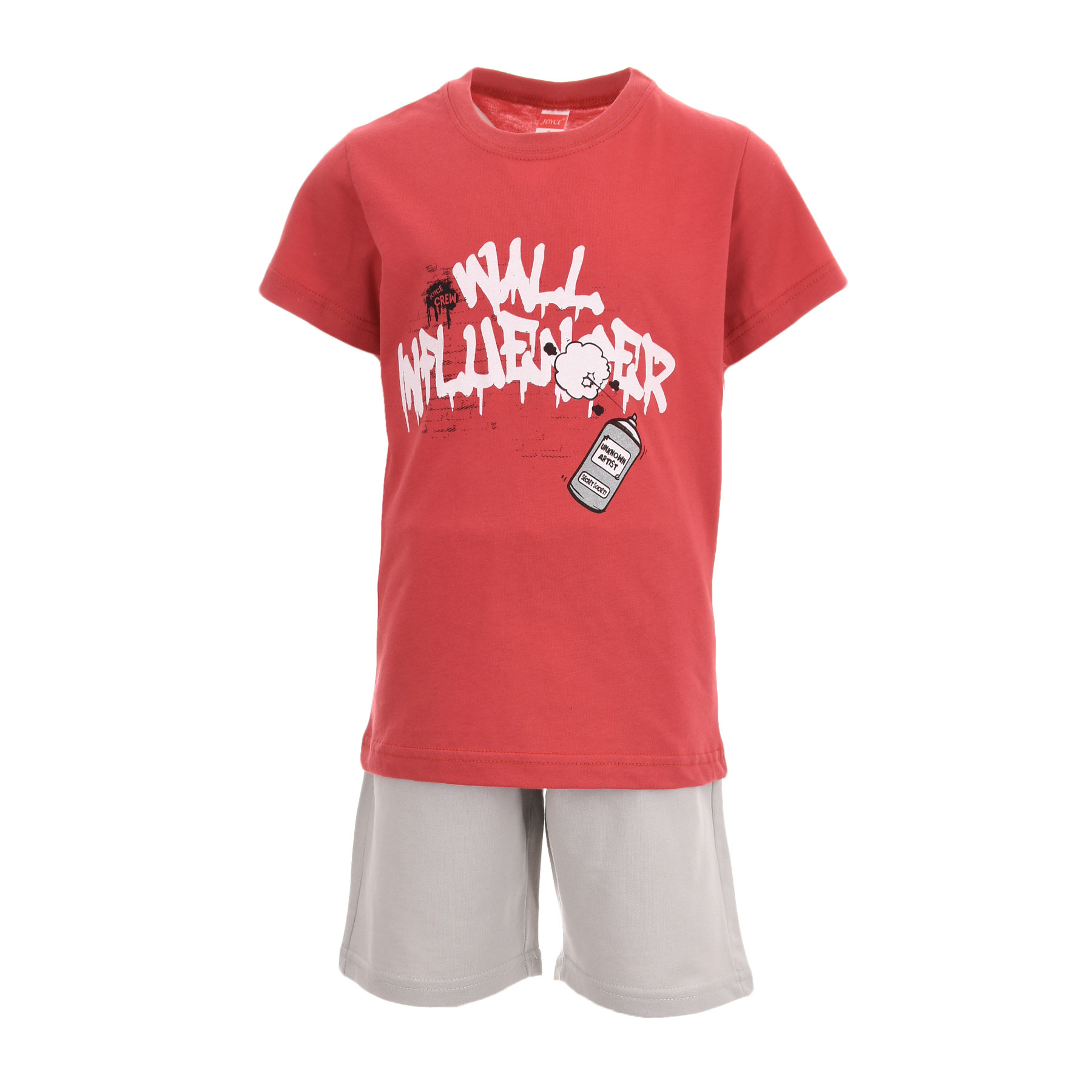 Το παιδικό σετ Joyce σε κόκκινοέλεφαντ (γκρι) είναι η ιδανική επιλογή για αγόρια που αγαπούν το μοντέρνο streetwear look. Η κόκκινη κοντομάνικη μπλούζα με graffiti-style τύπωμα WALL δίνει urban χαρακτήρα, ενώ η βερμούδα σε απόχρωση έλεφαντ προσφέρει άνεση και ευκολία στην κίνηση.Ένα ευκολοφόρετο σετ που συνδυάζει στυλ και πρακτικότητα για κάθε καλοκαιρινή δραστηριότητα.