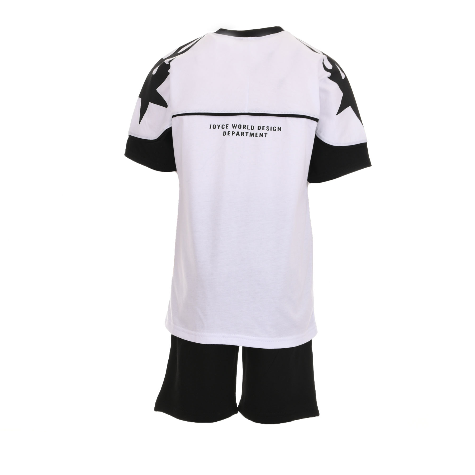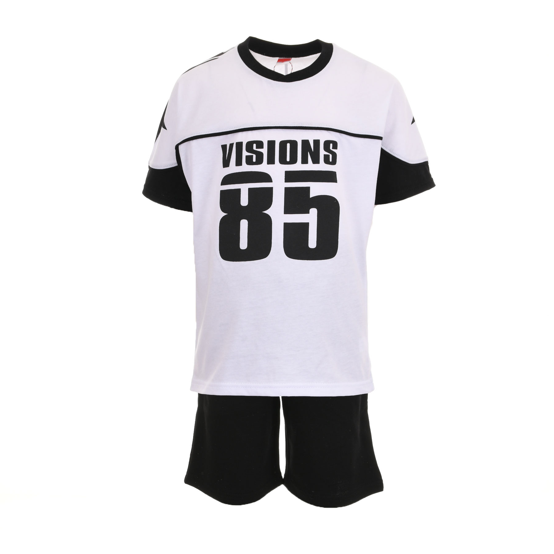 Το παιδικό σετ Joyce για αγόρια σε λευκό-μαύρο είναι η ιδανική επιλογή για μοντέρνες και άνετες καλοκαιρινές εμφανίσεις. Με δυναμικό σχεδιασμό και sport αισθητική, το σετ ξεχωρίζει χάρη στο εντυπωσιακό print VISIONS 85 στη μπλούζα, που προσδίδει urban χαρακτήρα και στιλ.