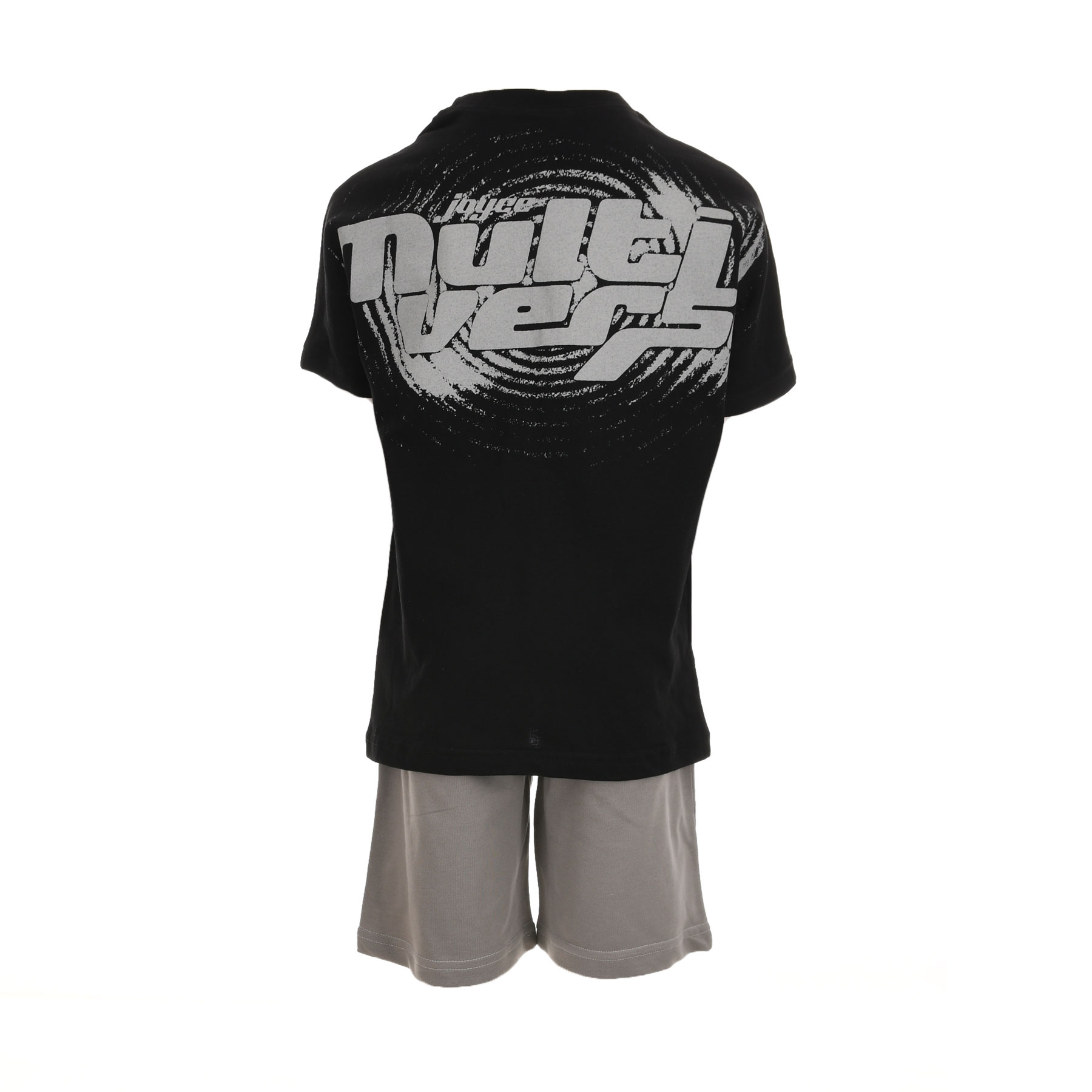 Η μπλούζα σε μαύρο χρώμα διαθέτει διακριτικό τύπωμα στο στήθος και έντονο graphic στην πλάτη με urban αισθητική, ενώ το γκρι σορτς ισορροπεί το σύνολο προσφέροντας άνεση και ευκολία στην κίνηση. Ένα outfit που καλύπτει κάθε στιγμή της ημέρας, από το παιχνίδι μέχρι τη βόλτα.