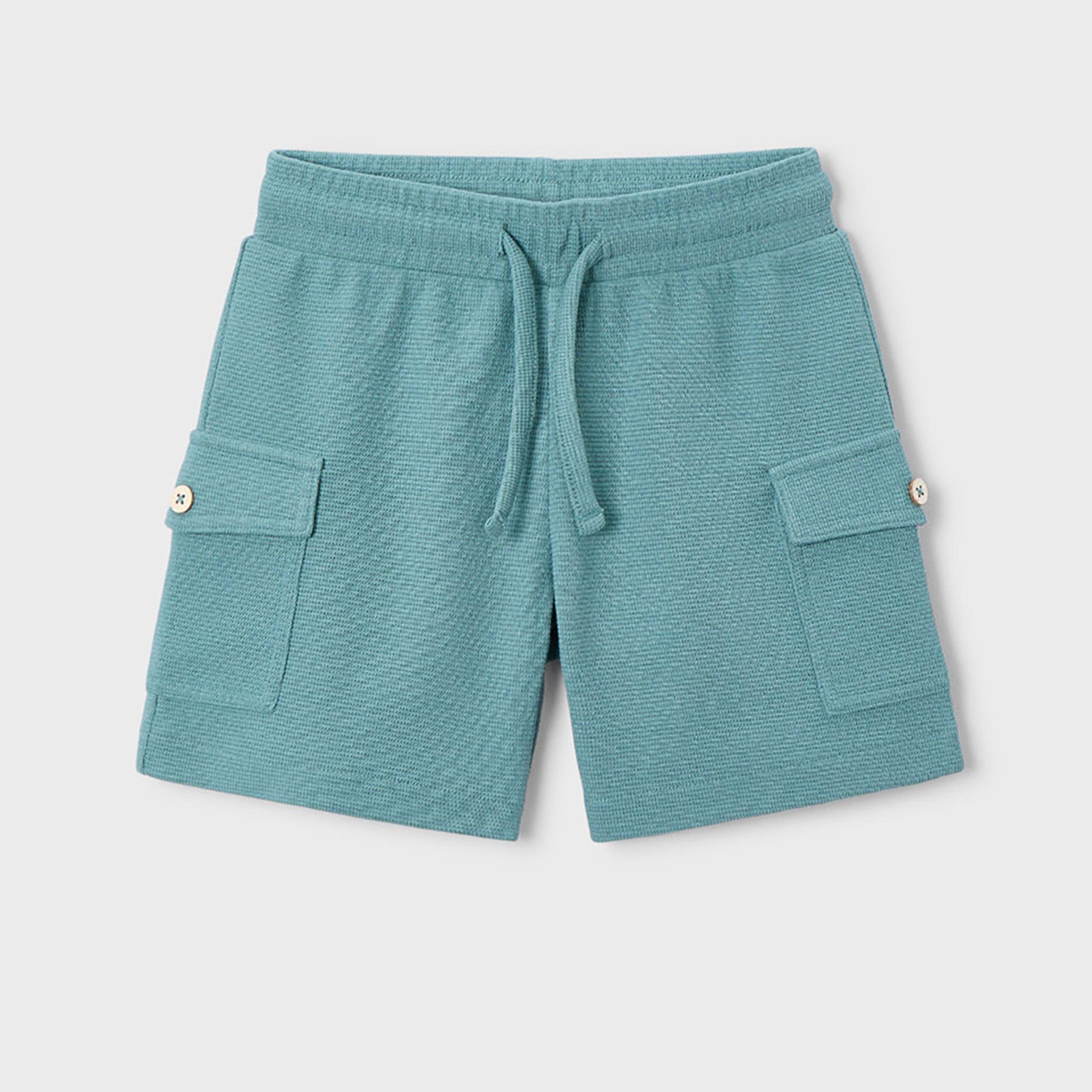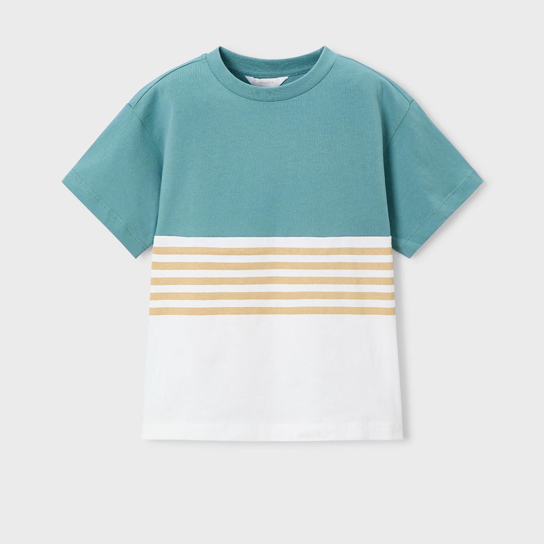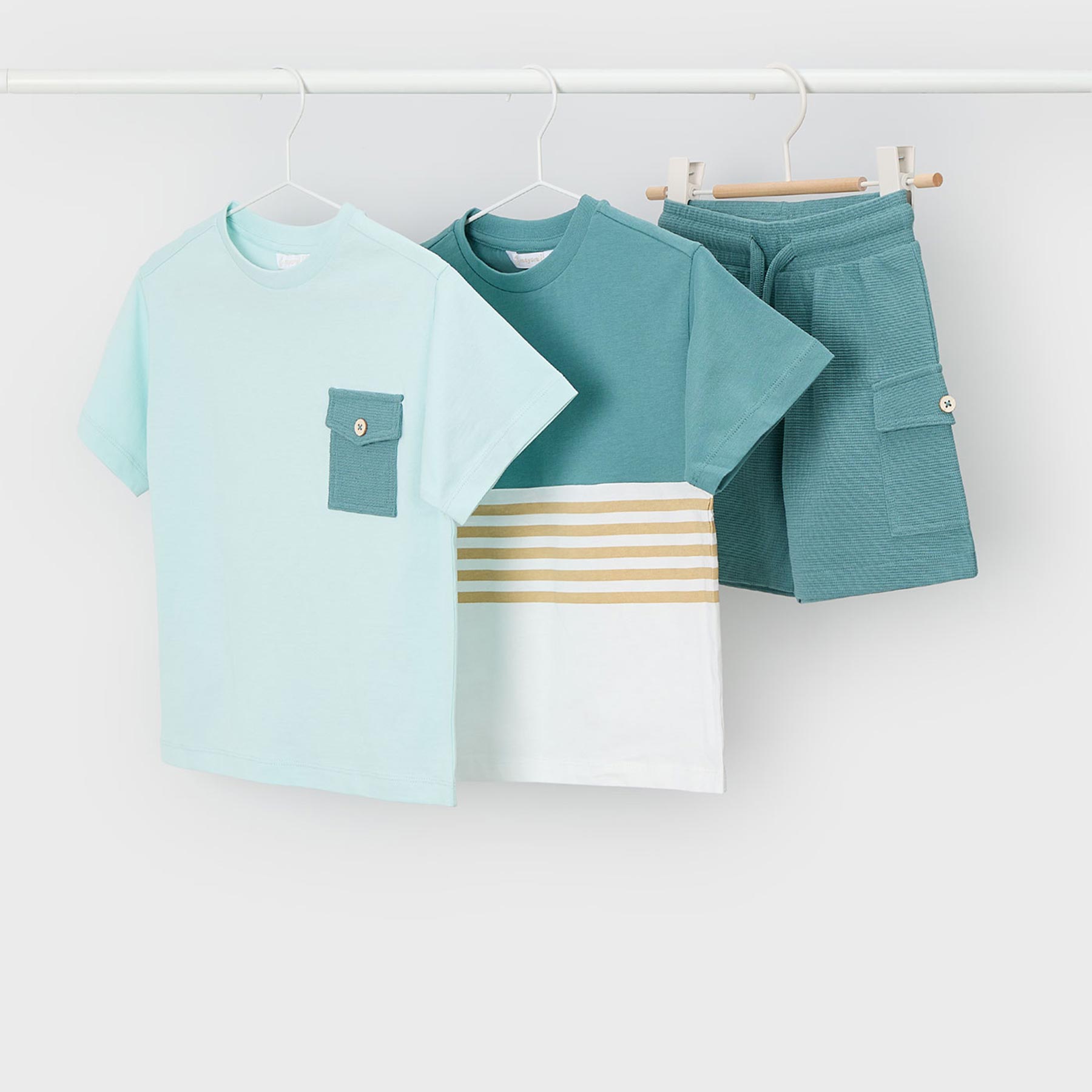 Ανανεώστε την καλοκαιρινή γκαρνταρόμπα του μικρού σας με το παιδικό σετ 3 τεμαχίων Mayoral σε κομψούς τόνους πράσινου και εκρού, ιδανικό για άνετες και στιλάτες εμφανίσεις από το πρωί έως το παιχνίδι.Το σετ περιλαμβάνει δύο κοντομάνικα μπλουζάκια μακό και ένα σορτς, προσφέροντας πρακτικότητα και ευελιξία στους συνδυασμούς. Το ένα t-shirt διαθέτει μοντέρνο χρωματικό μπλοκ με ρίγες, ενώ το δεύτερο ξεχωρίζει με τσέπη στο στήθος για ένα casual, σύγχρονο look. Το σορτς με ελαστική μέση και κορδόνι εξασφαλίζει άνετη εφαρμογή και ελευθερία κινήσεων.