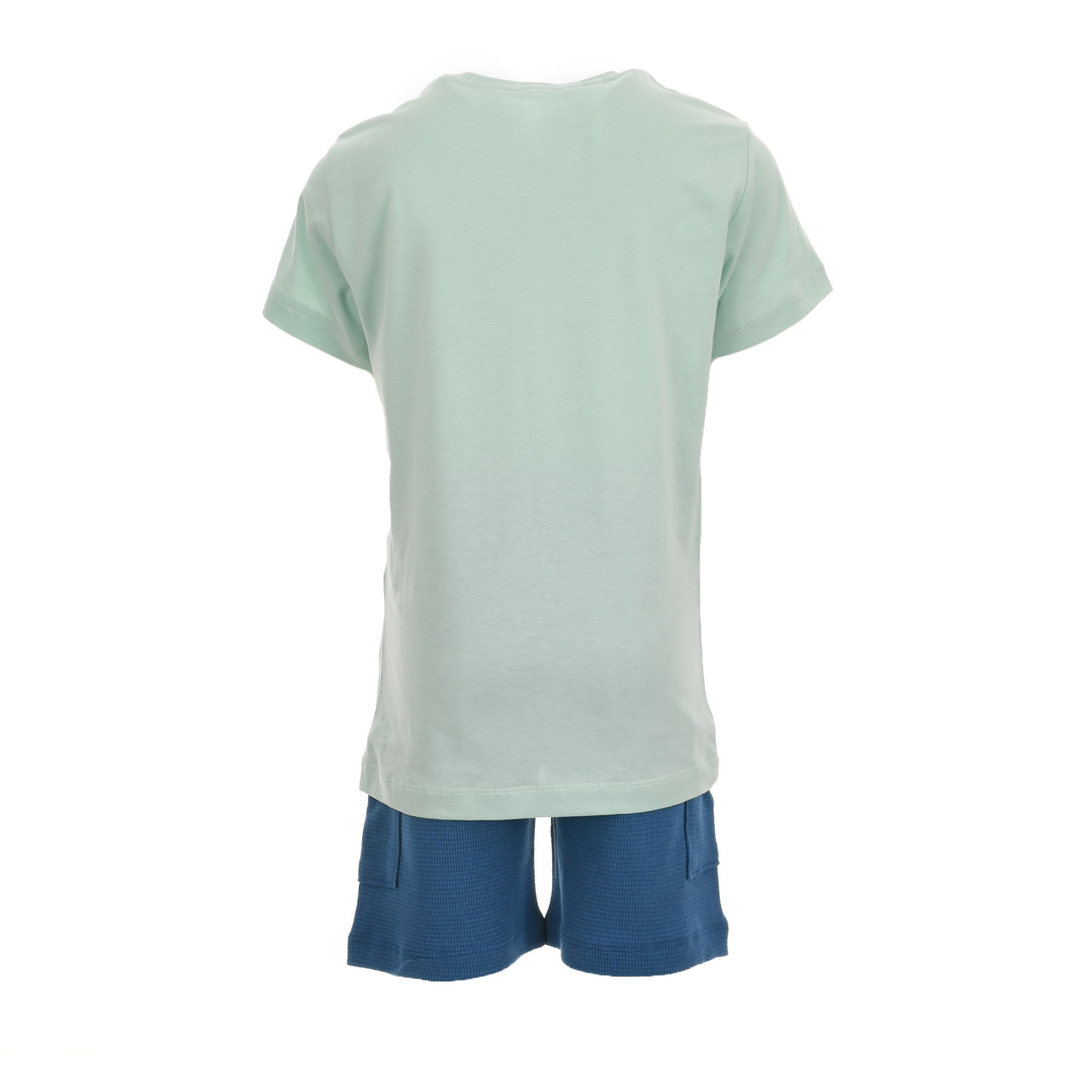 Το παιδικό σετ για αγόρια Nekidswear σε λαχανί και ραφ αποχρώσεις είναι η ιδανική επιλογή για δροσερά και άνετα καλοκαιρινά looks. Η μπλούζα διαθέτει καλοκαιρινό print marine breeze εμπνευσμένο από τη θάλασσα, ενώ το σορτσάκι σε ραφ απόχρωση ολοκληρώνει ένα μοντέρνο και ευκολοφόρετο σύνολο.