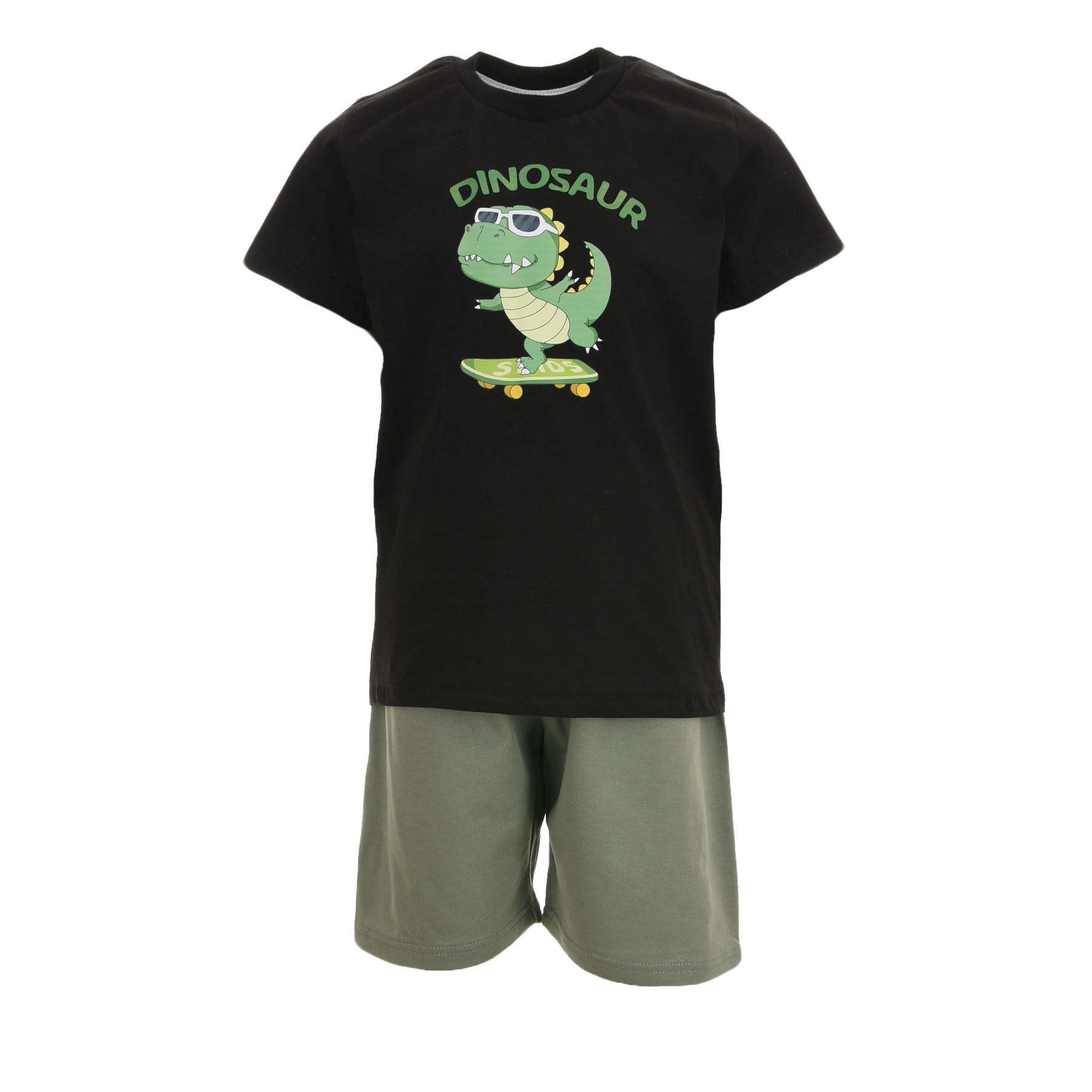 Το παιδικό σετ για αγόρια Piccino σε μαύρο-χακί με τύπωμα δεινόσαυρο είναι η ιδανική επιλογή για μικρούς εξερευνητές που αγαπούν την περιπέτεια και το παιχνίδι. Το σετ αποτελείται από κοντομάνικη μπλούζα με εντυπωσιακό σχέδιο δεινόσαυρου και άνετο σορτς σε χακί απόχρωση, δημιουργώντας ένα cool και παιχνιδιάρικο σύνολο.