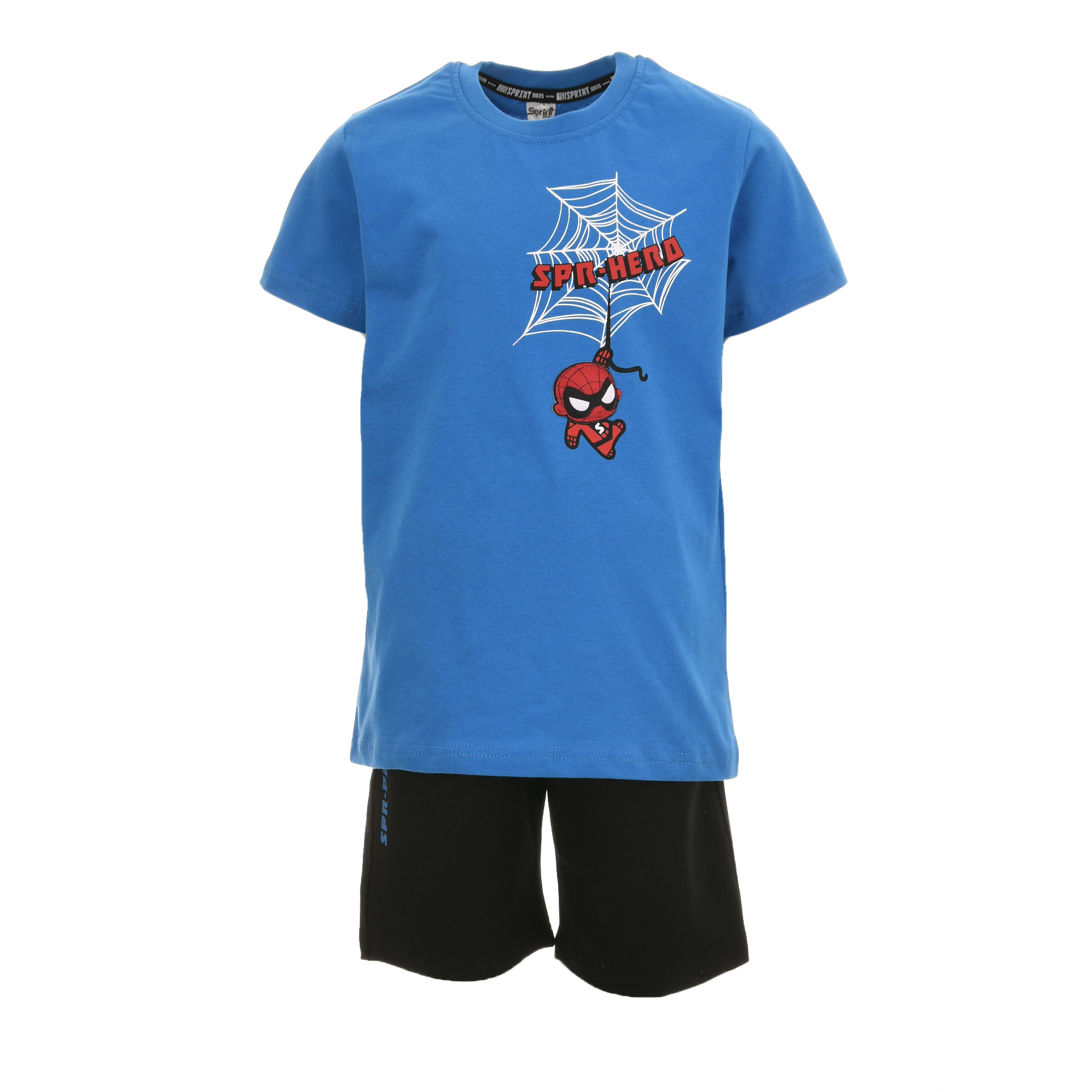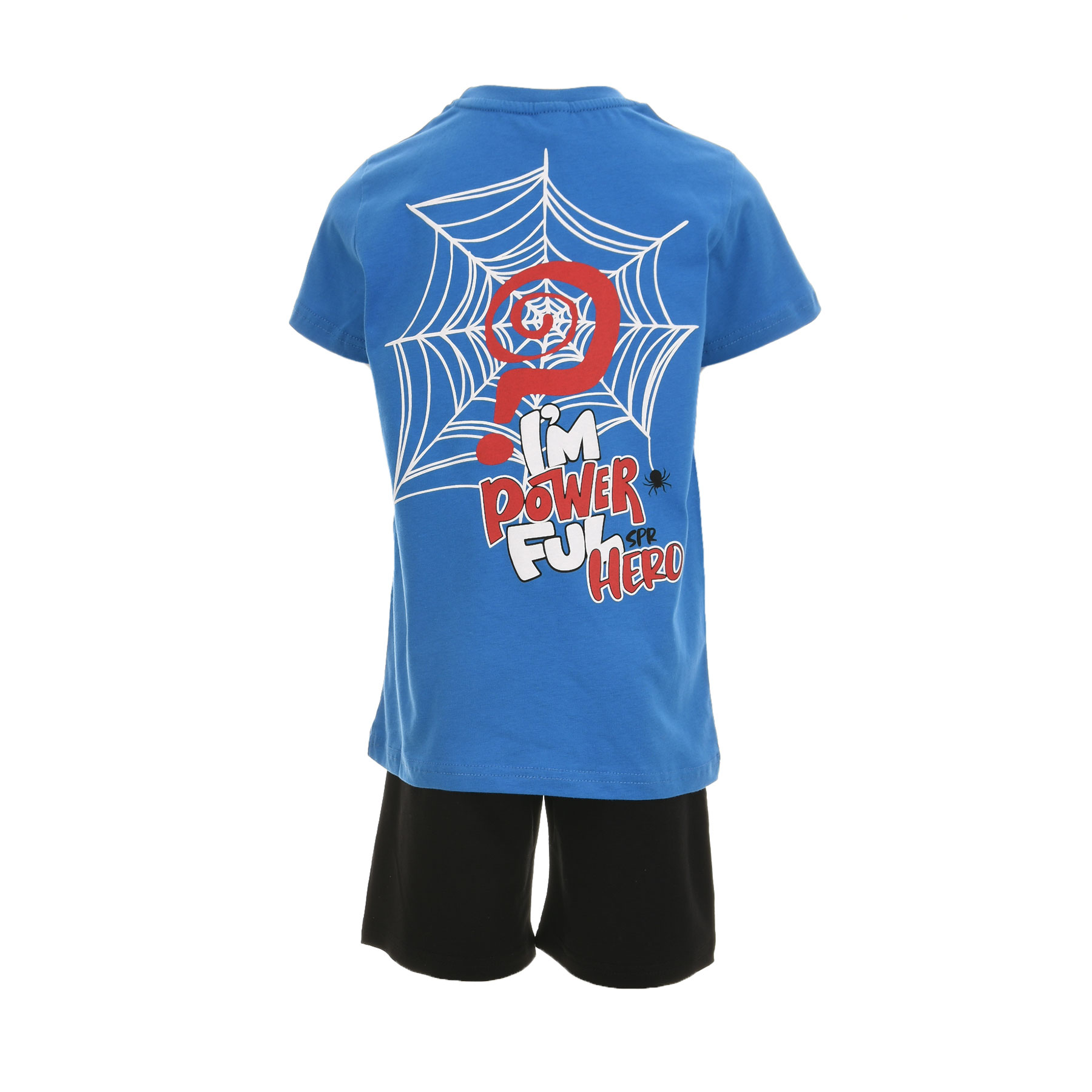 Παιδικό σετ αγοριού Sprint 3 τεμαχίων σε μπλε ρουά και μαύρο, με δυναμικό super hero print που τραβά τα βλέμματα. Περιλαμβάνει κοντομάνικη μπλούζα και άνετη βερμούδα με ελαστική μέση για σταθερή εφαρμογή και ελευθερία κινήσεων. Κατασκευασμένο από μαλακό ύφασμα φιλικό προς το παιδικό δέρμα, ιδανικό για καθημερινή χρήση, σχολείο και παιχνίδι. Μια πρακτική και στιλάτη επιλογή για αγόρια που αγαπούν τη δράση και την άνεση.