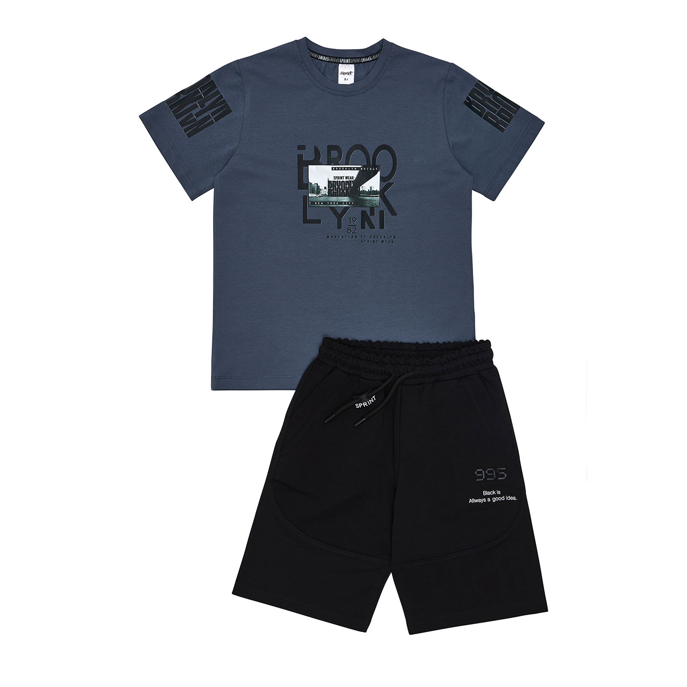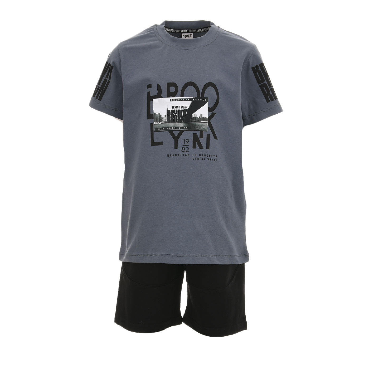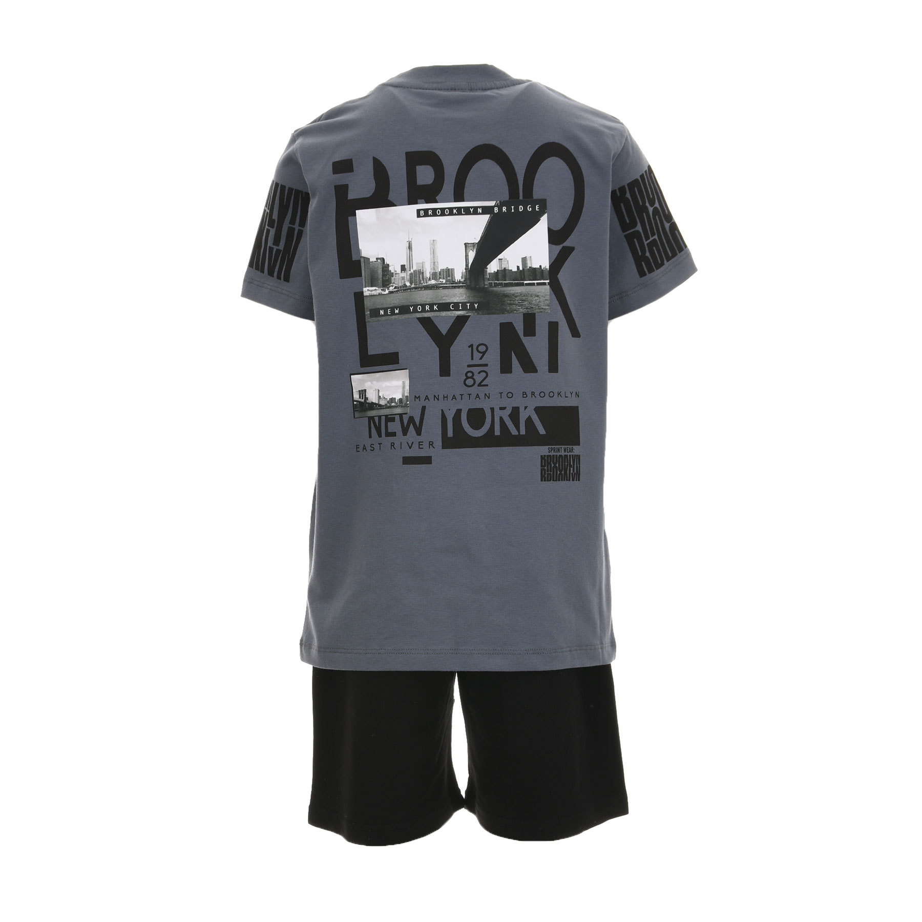 Το παιδικό σετ αγοριού Sprint σε γκρι ραφ και μαύρο είναι η ιδανική επιλογή για μοντέρνες, άνετες εμφανίσεις με urban χαρακτήρα. Η μπλούζα με εντυπωσιακά city prints εμπνευσμένα από New York & Brooklyn χαρίζει ξεχωριστό street style, ενώ η μαύρη βερμούδα ισορροπεί το look με minimal αισθητική.Φτιαγμένο από μαλακό και διαπνέον ύφασμα, το σετ προσφέρει άνεση όλη μέρα και αντοχή στη χρήση τέλειο για δραστήρια αγόρια.