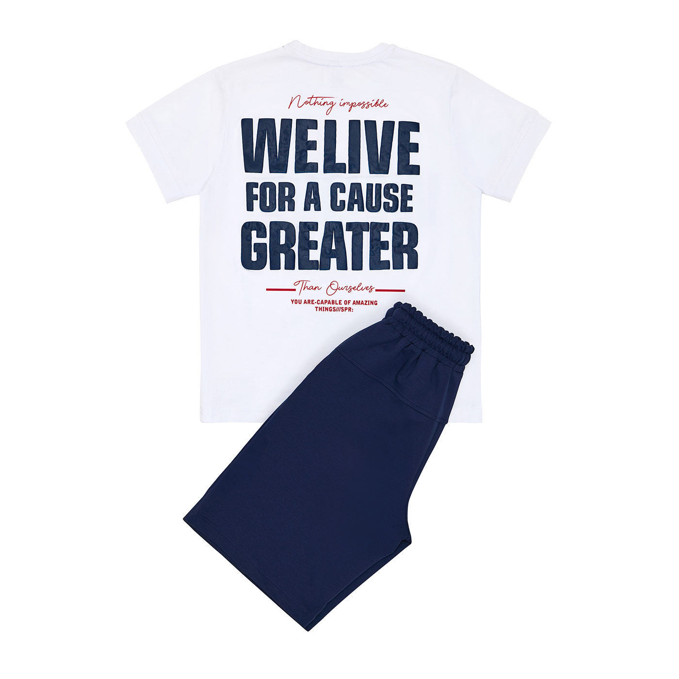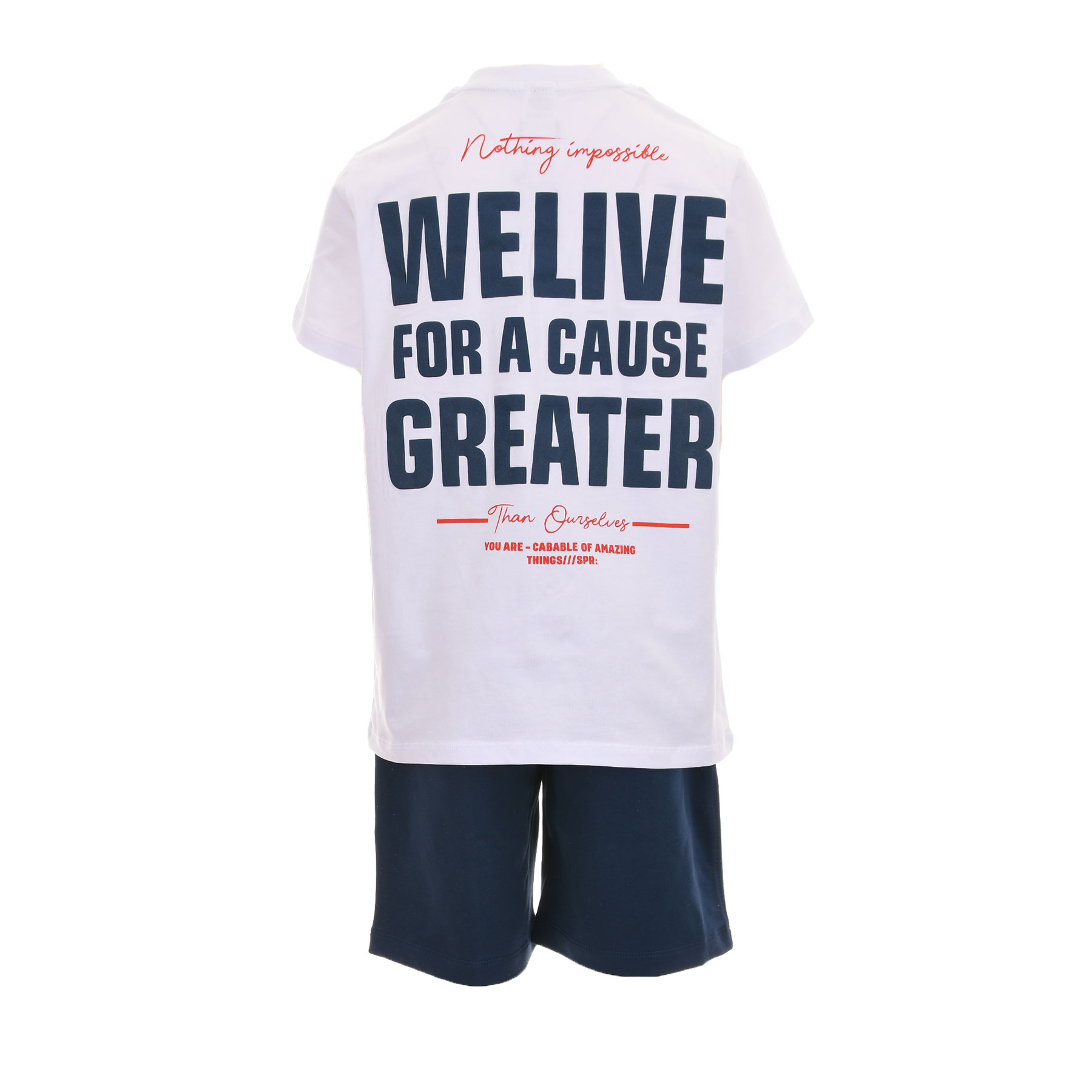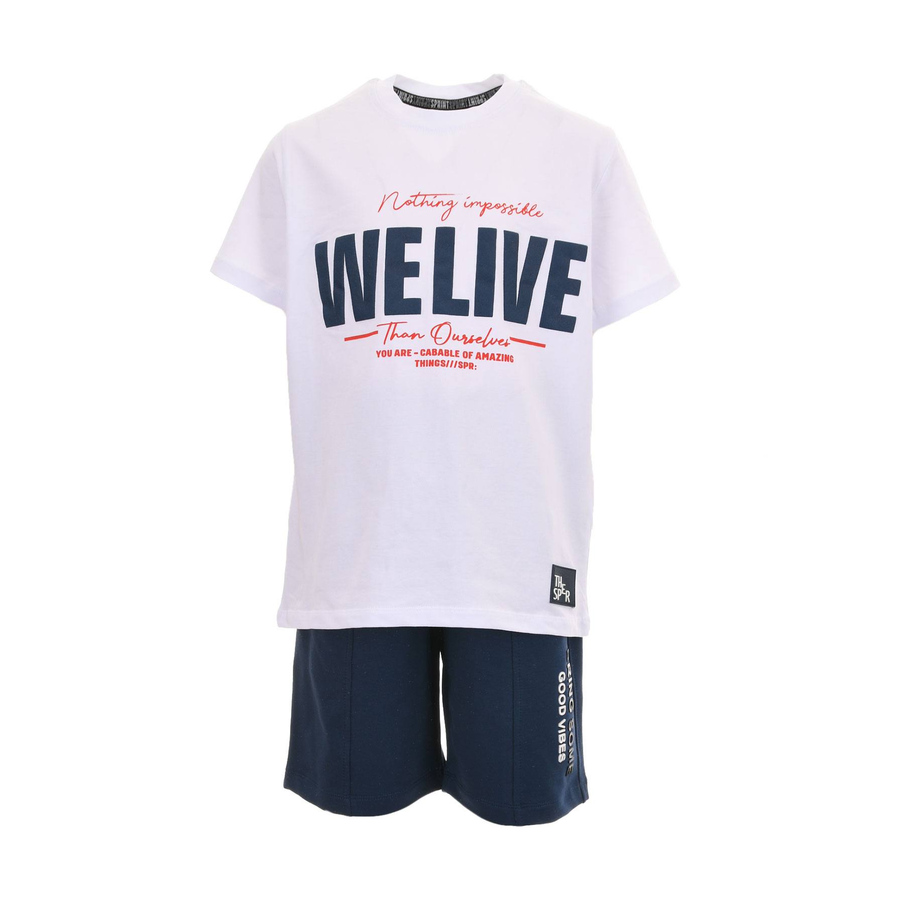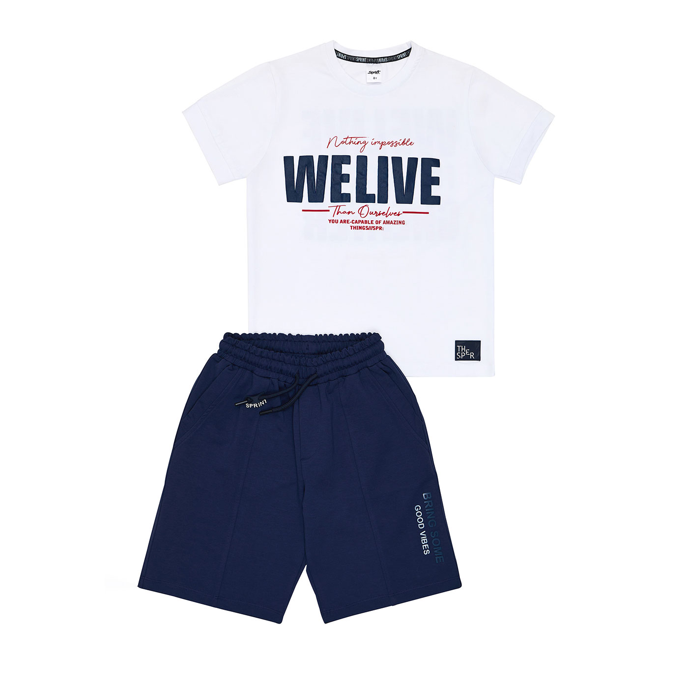 Παιδικό σετ για αγόρια Sprint σε λευκό-μαρέν, ιδανικό για άνετες και στιλάτες εμφανίσεις όλη μέρα. Το σετ περιλαμβάνει κοντομάνικη μπλούζα με μοντέρνο print και βερμούδα σε μαρέν απόχρωση που συνδυάζεται εύκολα με κάθε look.Κατασκευασμένο από μαλακό, ποιοτικό ύφασμα που επιτρέπει στο δέρμα να αναπνέει, προσφέρει άνεση και ελευθερία κινήσεων στο σχολείο, τη βόλτα και το παιχνίδι. Η βερμούδα διαθέτει ελαστική μέση για σταθερή και πρακτική εφαρμογή.Μια εξαιρετική επιλογή για καλοκαιρινό παιδικό ντύσιμο, που συνδυάζει σπορ στυλ, άνεση και αντοχή. Ιδανικό για αγόρια που θέλουν να ντύνονται μοντέρνα και άνετα κάθε μέρα.